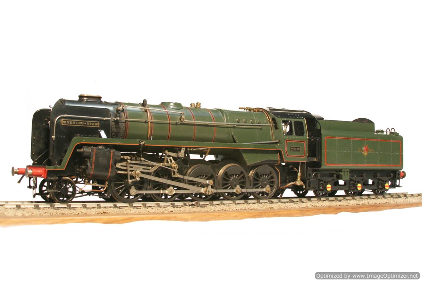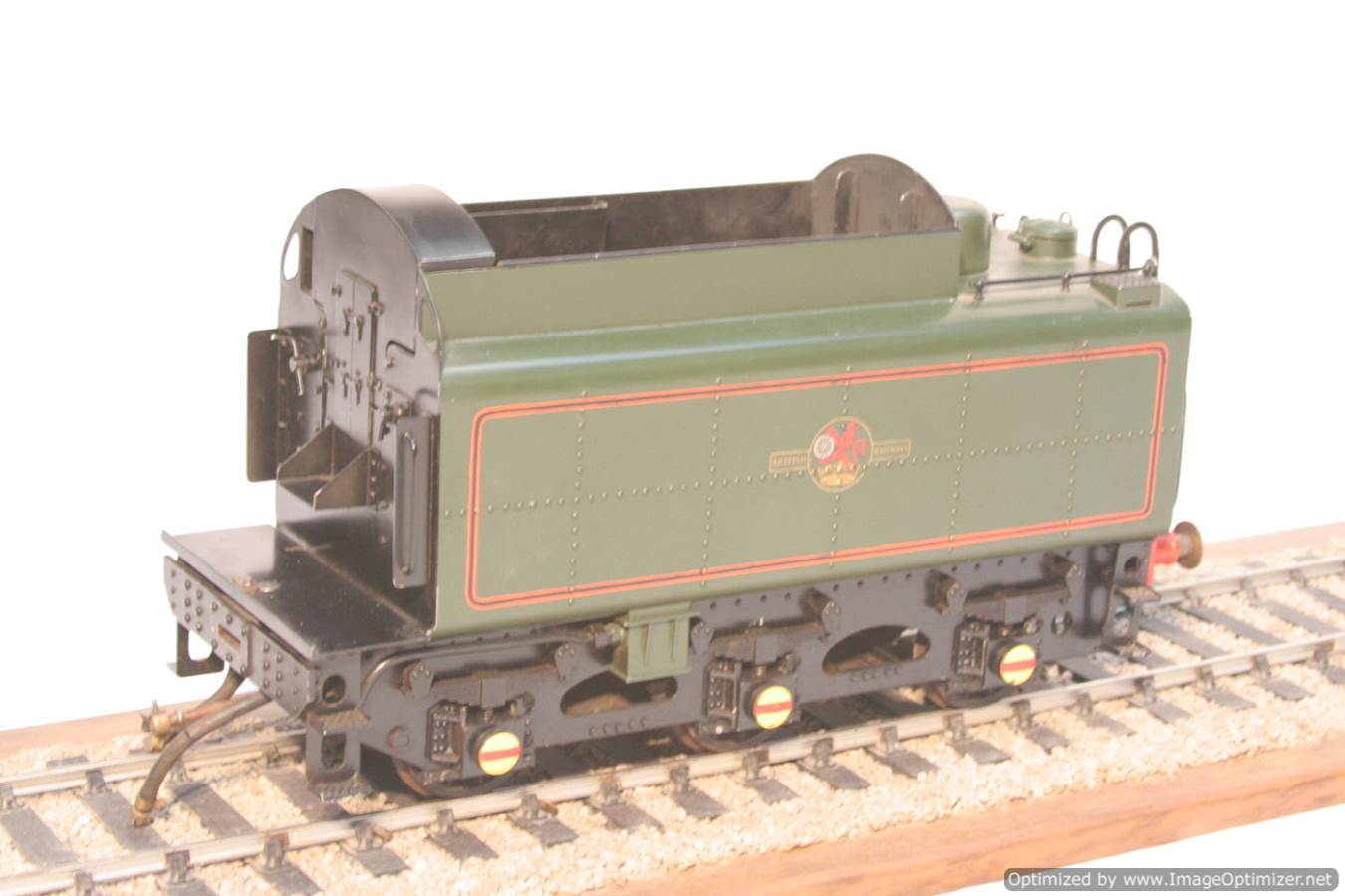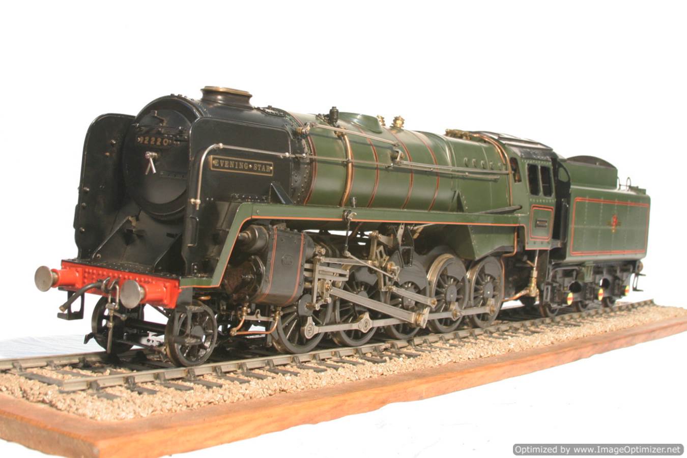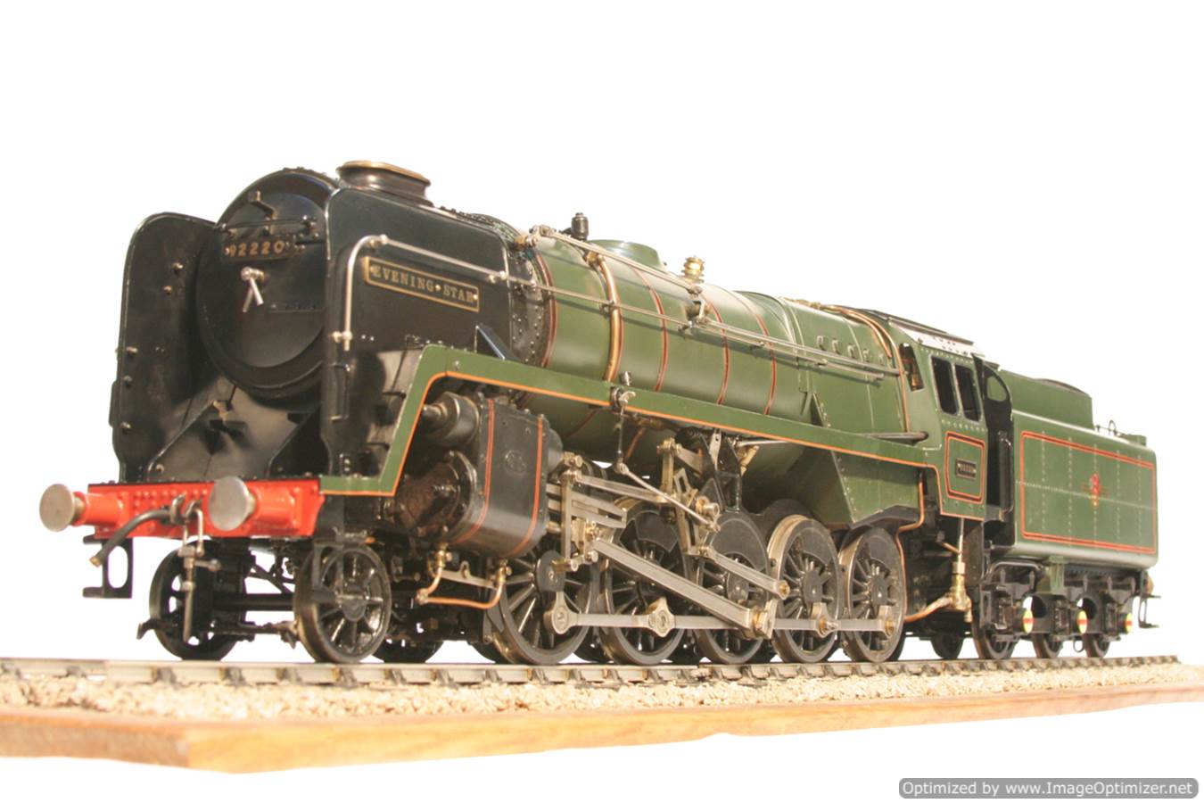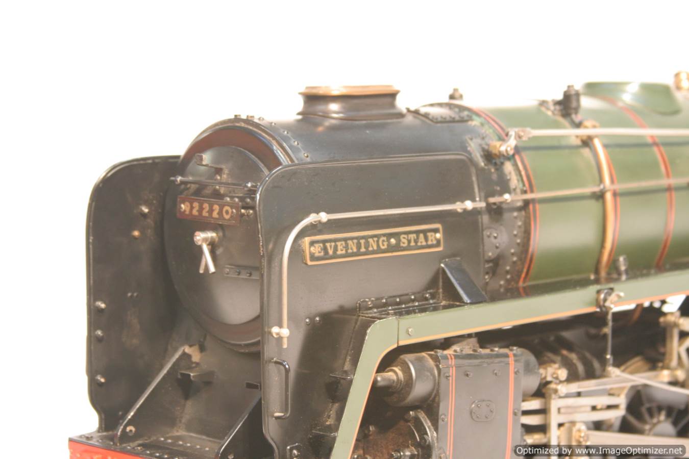 Here we have a particularly well made 3 1/2" gauge BR 9F. Made to the LBSC/Martin Evans design, (this was LBSC's last design, that he left unfinished after he passed away, the design being finished off by Martin Evans). Finished off very nicely in BR green, and of course as 92220 'Evening Star'.