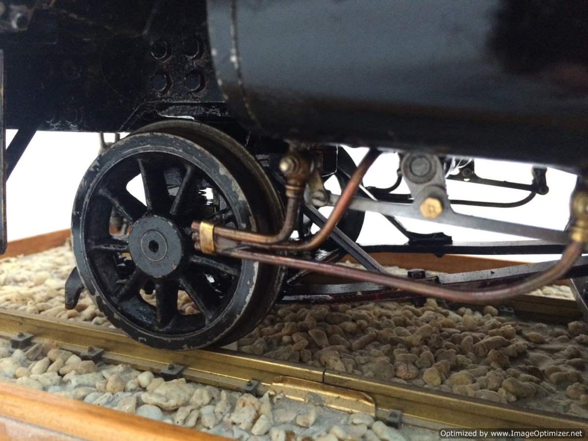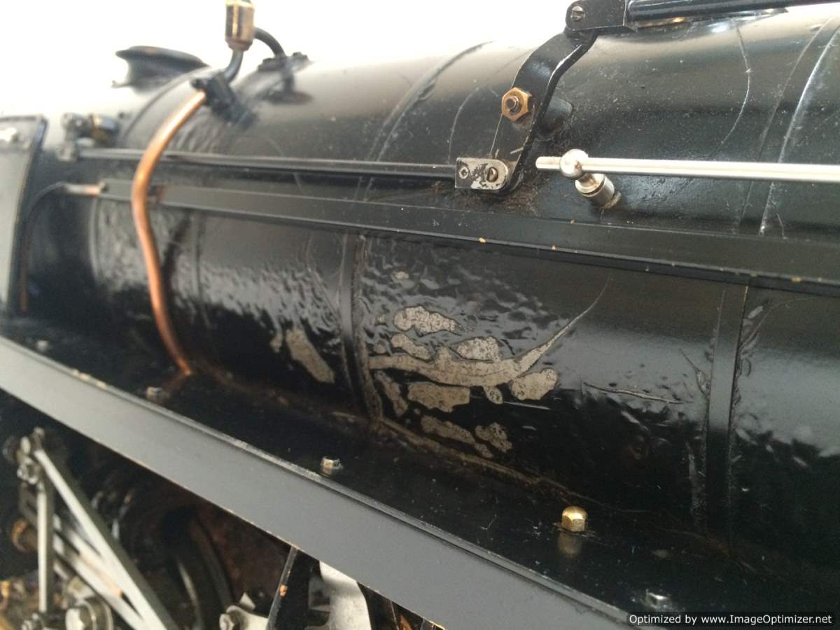 It's a nicely made loco under the scratches, and the detail level is good.  If you were willing to treat it as a running cosmetic restoration then you'd have a very nice, capable and rare locomotive at the end of it.  After consideration we decided here that there just wasn't quite enough economic room in the project for us to go that far with it in the workshop.  Most of the usual bits are there, there's an injector, and an axle pump, footplate operated drain cocks. Lubrication is from a mechanical hidden under the running boards at the front.