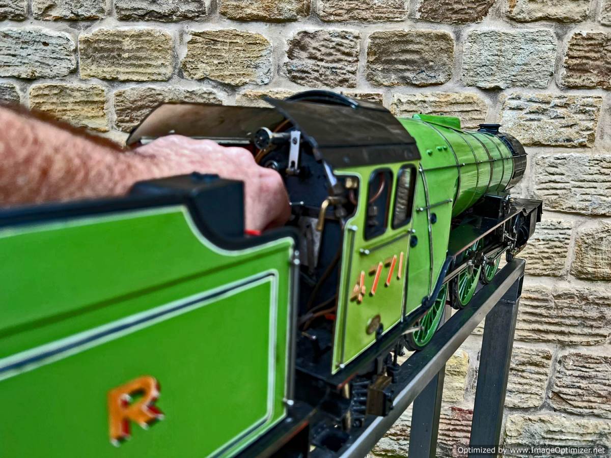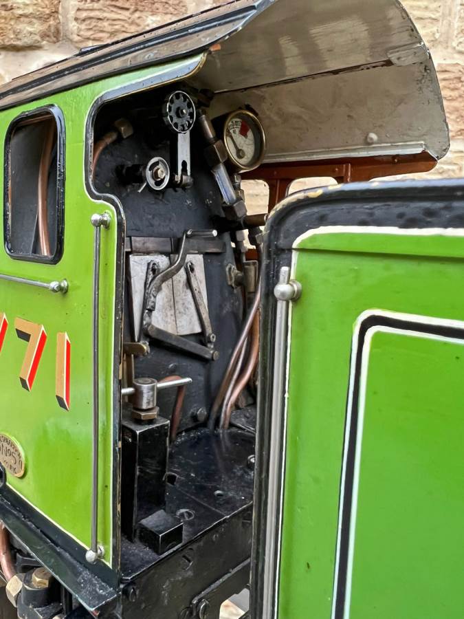 Very nicely detailed and painted in LNER Apple Green, wearing the identity, of course,.... of the famous 4771 'Green Arrow'. We've already had it slightly stripped down for boiler shell testing as the regulator was passing too much to maintain shell test pressure. That's now sorted and the regulator has been lapped back in, so she's ready for steam tests.