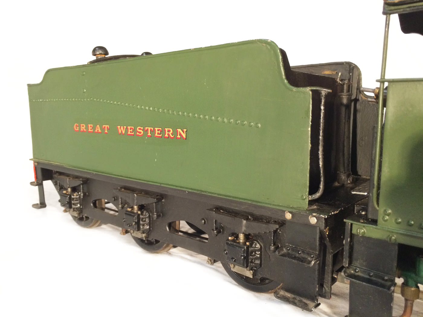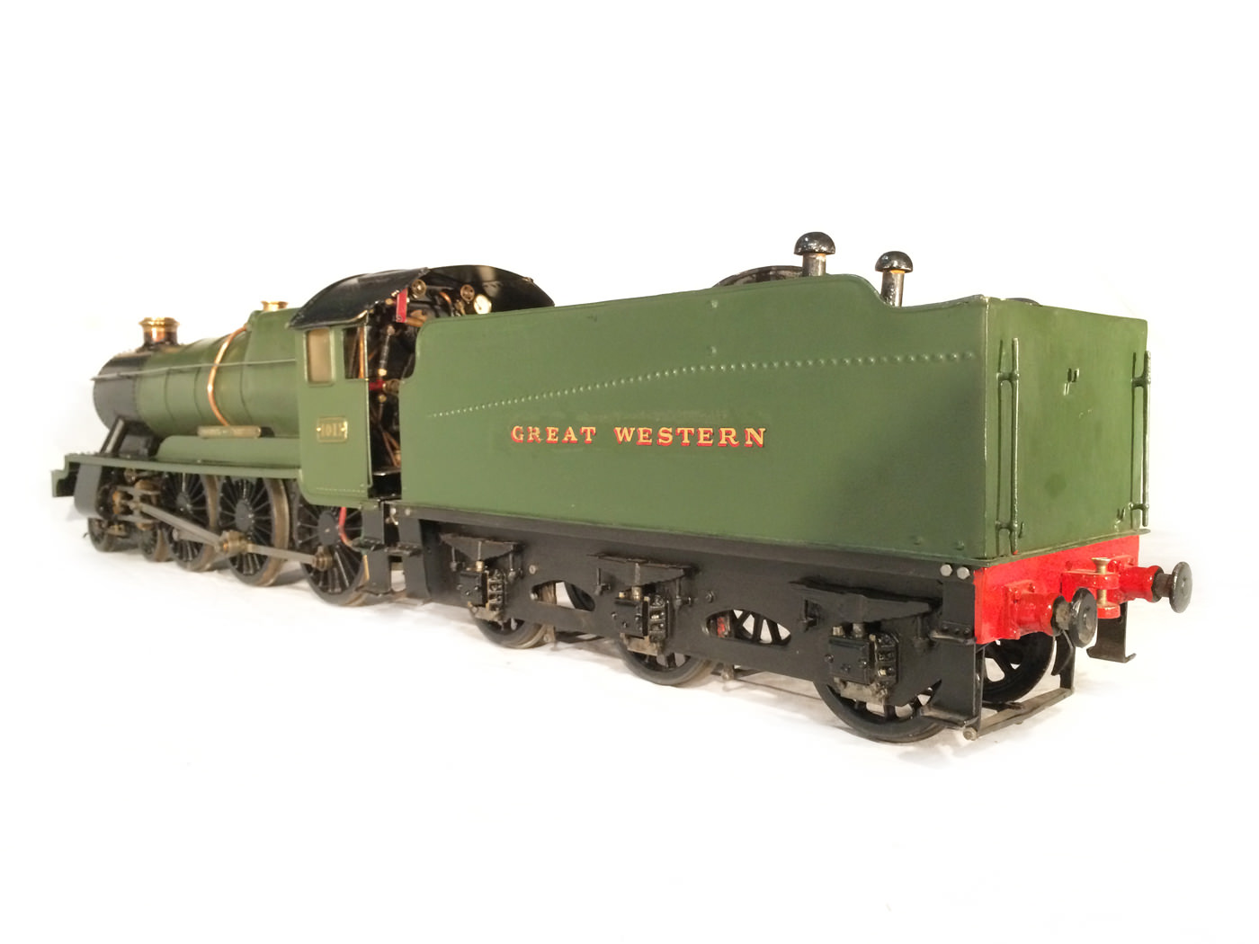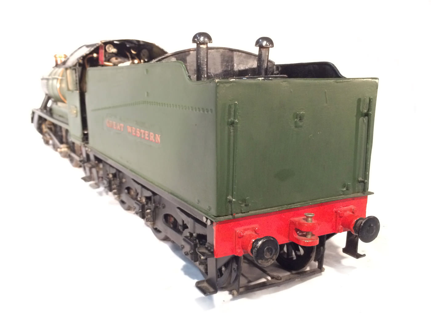Count the Counties! We appear to collect them,.... two 'County of Chester's in for a start,..... the 4-4-0 GWR 38XX Earlier Churchward 'County of Chester', and now this. So here we have the later model! A nice GWR 1000 Class Hawksworth 4-6-0 County. 30 of these were built by the GWR over a two year period just after the war, and it's basically a Modified Hall with an LMS 8F boiler on it. Again, another pretty rarely modeled prototype this, although for reasons that we can't fathom, GWR 4-6-0s (with the exception of Kings), seem to be generally very rare in 3 1/2" as a whole. We know of only one other County, a smattering of Halls, and a Grange, but have never seen a single 3 1/2" Manor, Castle, Saint or Star.