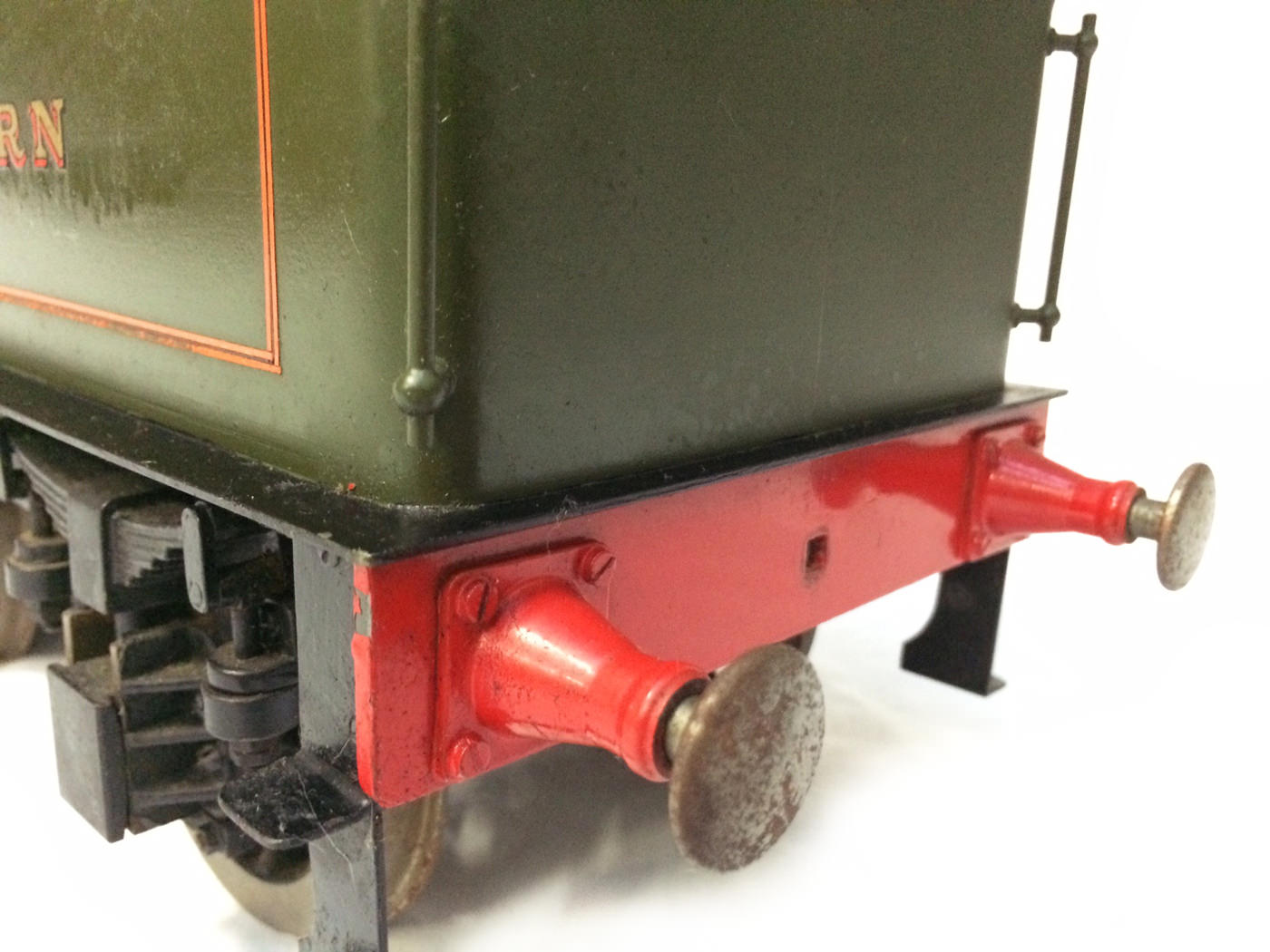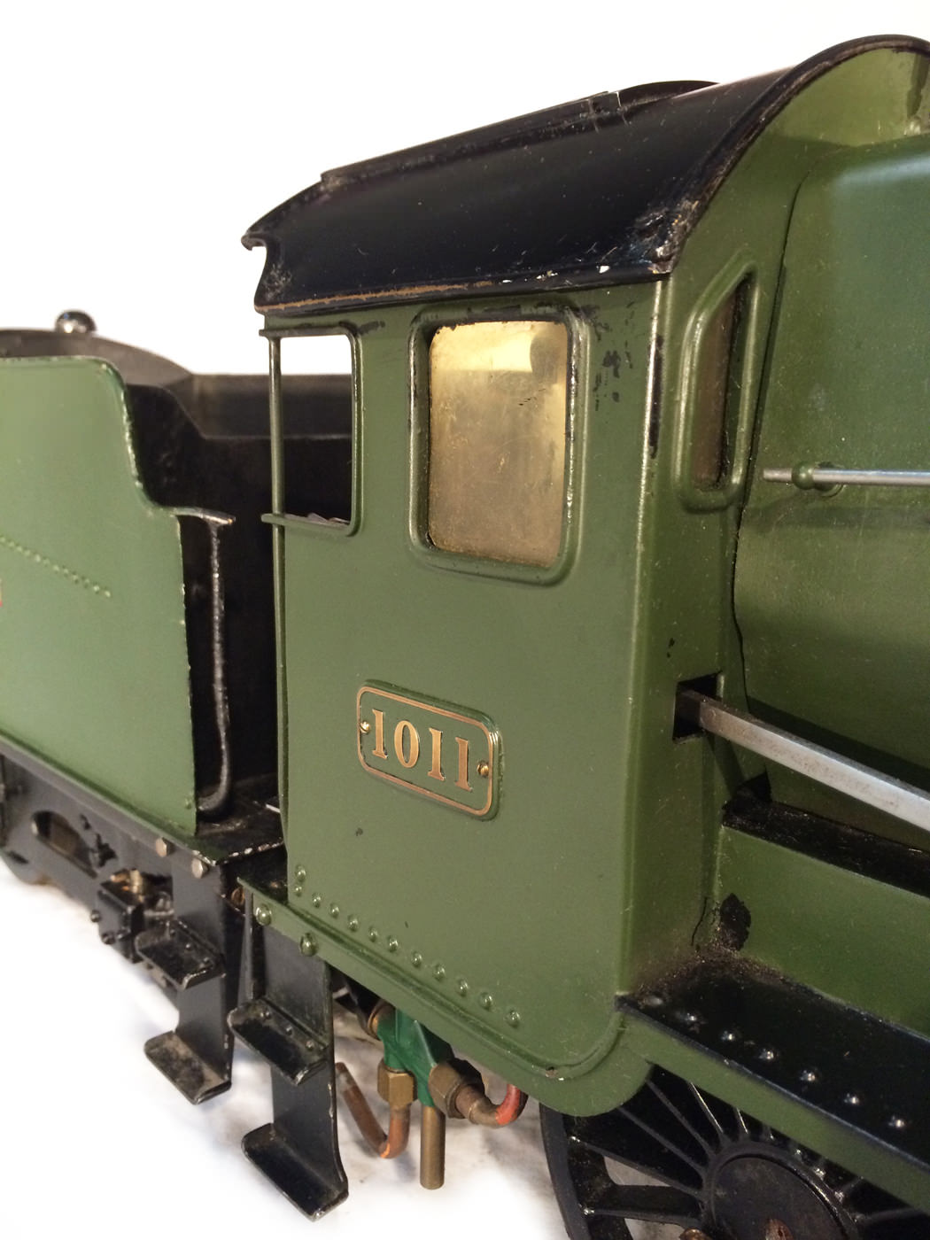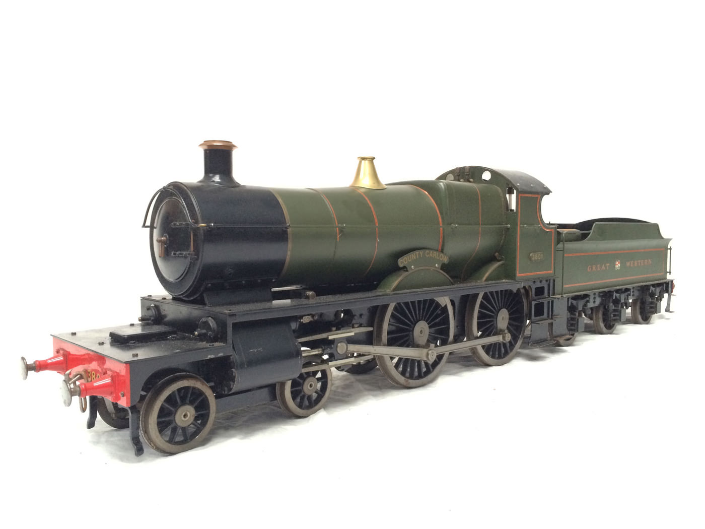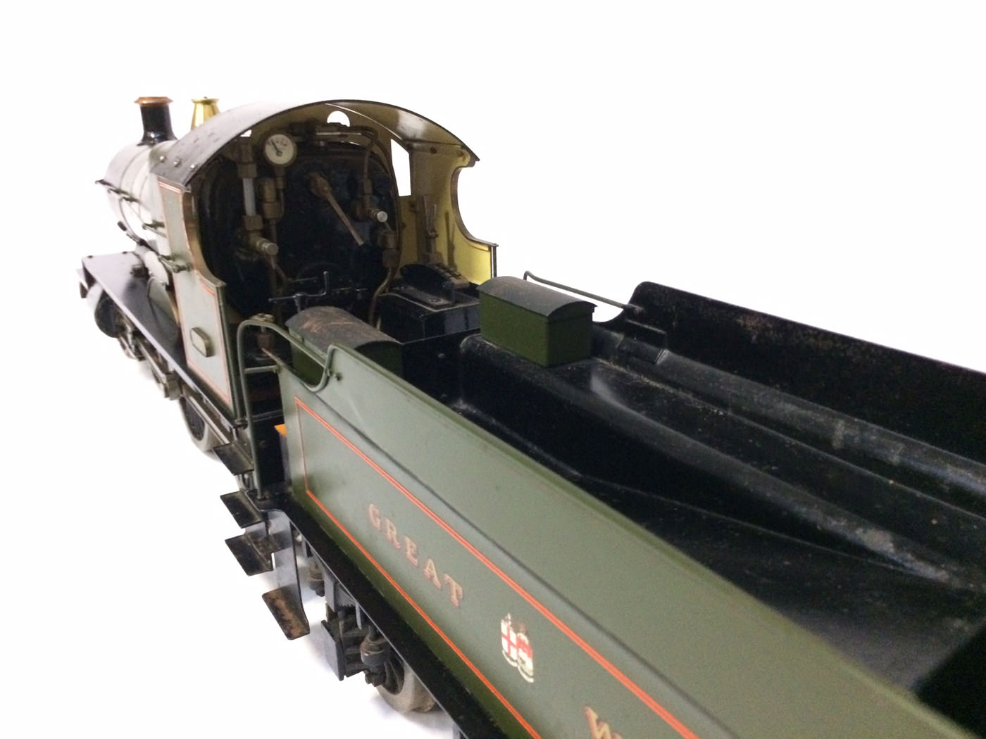 Count the Counties! We appear to collect them,.... two 'County of Chester's in for a start,..... the 4-4-0 GWR 38XX Earlier Churchward 'County of Chester', and now this. So here we have the later model! A nice GWR 1000 Class Hawksworth 4-6-0 County. 30 of these were built by the GWR over a two year period just after the war, and it's basically a Modified Hall with an LMS 8F boiler on it. Again, another pretty rarely modeled prototype this, although for reasons that we can't fathom, GWR 4-6-0s (with the exception of Kings), seem to be generally very rare in 3 1/2" as a whole. We know of only one other County, a smattering of Halls, and a Grange, but have never seen a single 3 1/2" Manor, Castle, Saint or Star.
