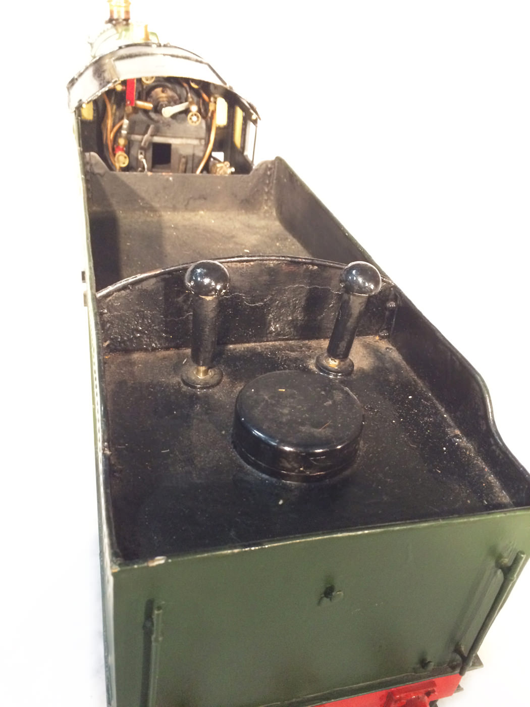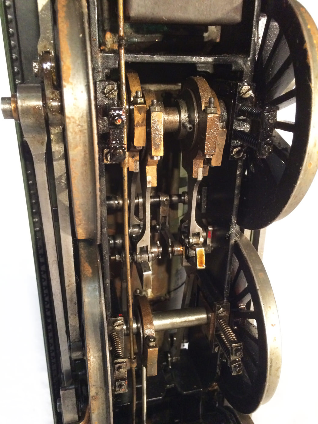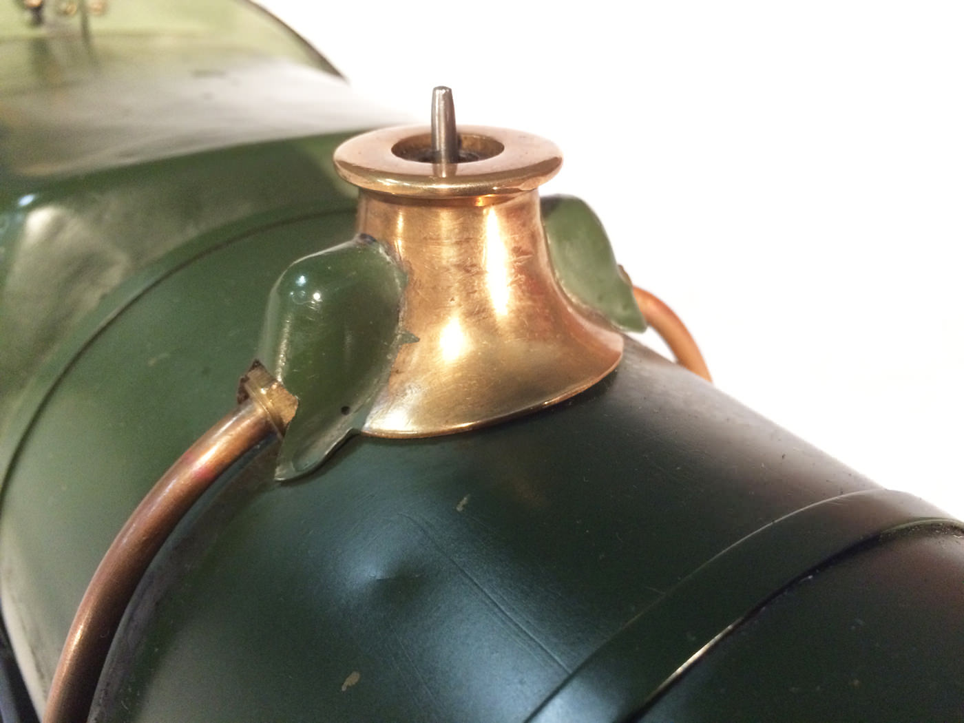 But,.... to the model! So, she's a very nicely engineered loco. Built by an experienced model engineer to run, which we are told it does very well. On close inspection the valve gear is all very crisp and well finished, with very little slack in it. There are footplate operated draincocks, and then twin injectors as well, plus of course the obligatory 'I'm a failure',... sorry,.... emergency hand pump in the tender. Lubrication is from a mechanical pump and resevoir hidden in the usual place under the front running board.
