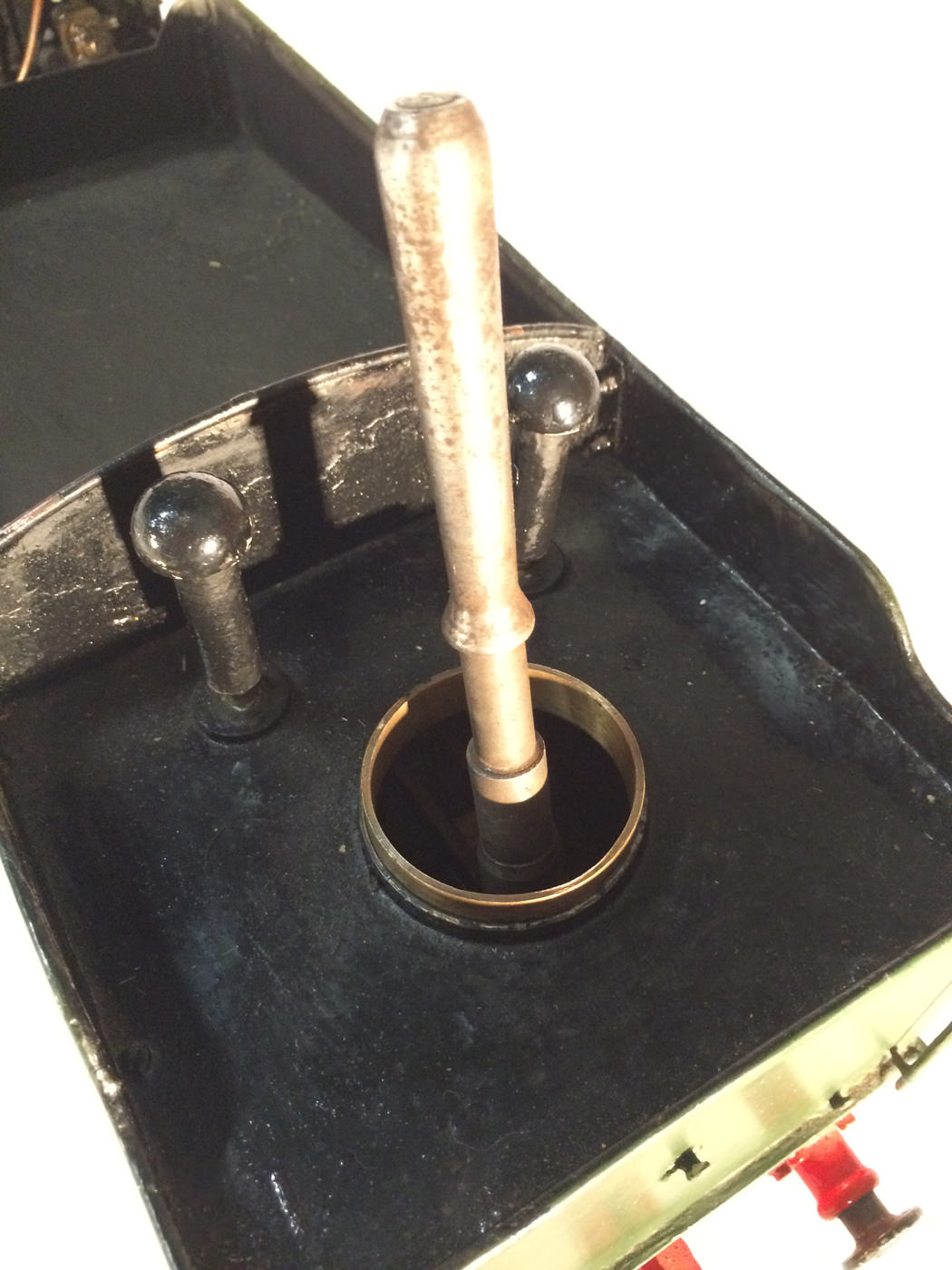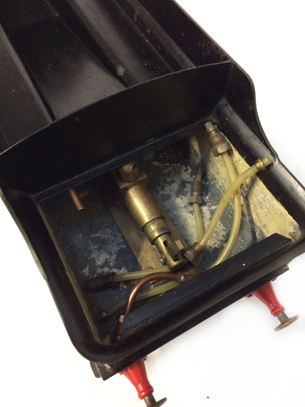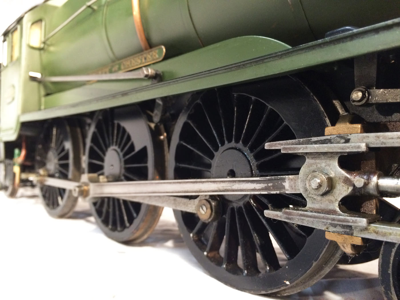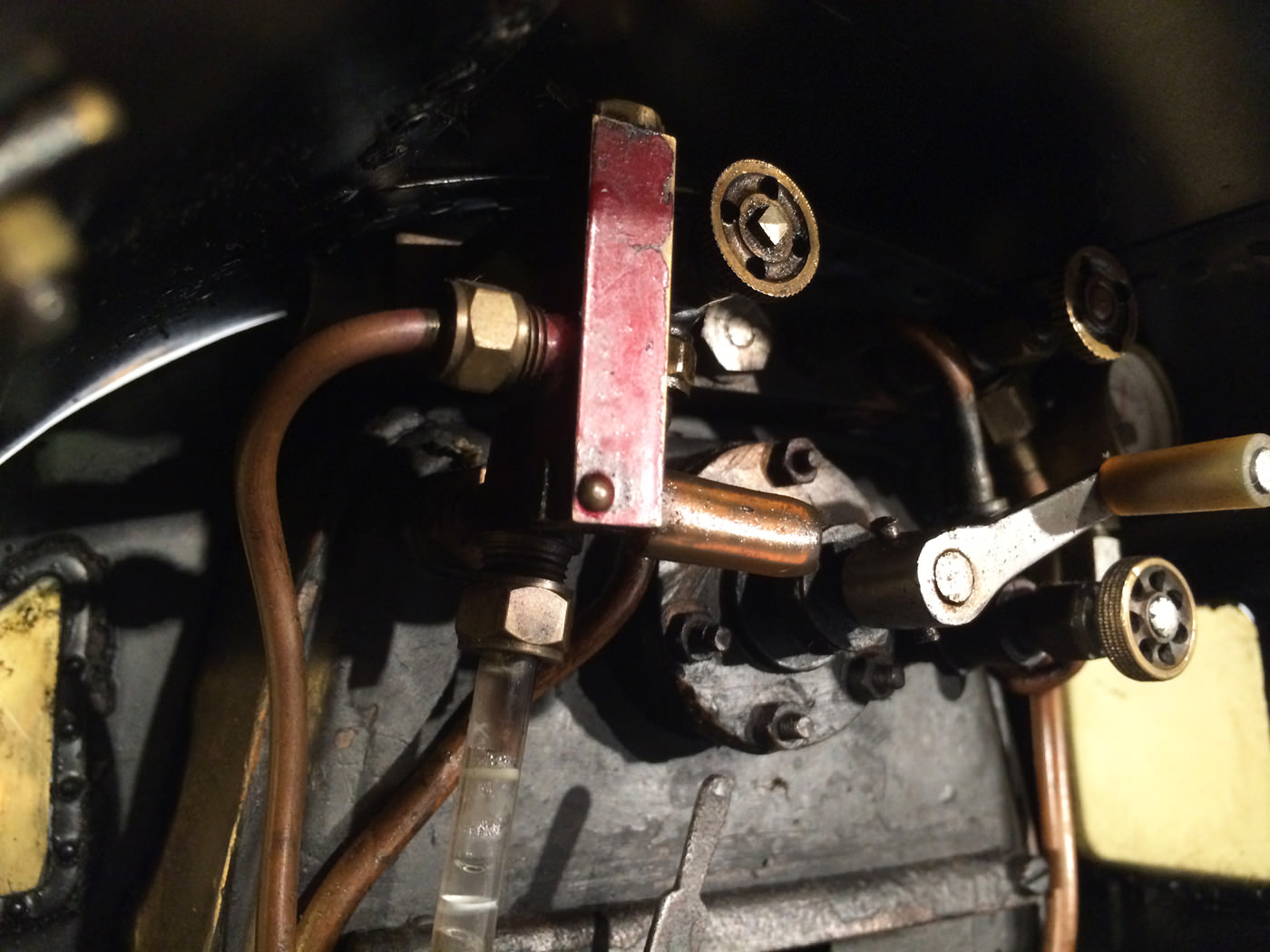 But,.... to the model! So, she's a very nicely engineered loco. Built by an experienced model engineer to run, which we are told it does very well. On close inspection the valve gear is all very crisp and well finished, with very little slack in it. There are footplate operated draincocks, and then twin injectors as well, plus of course the obligatory 'I'm a failure',... sorry,.... emergency hand pump in the tender. Lubrication is from a mechanical pump and resevoir hidden in the usual place under the front running board.