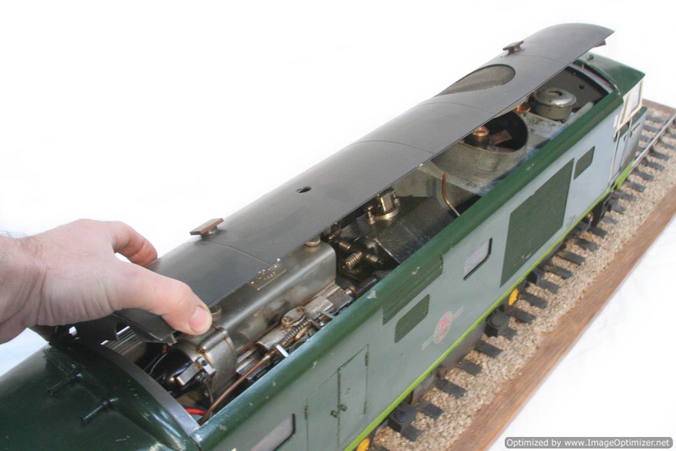 As you can see in the photos, both sides of the metal body are designed to drop away, giving superb access to the internals. All the lights work, as does the front number code panel, the horn,.... even the cab doors open to reveal convincing cab detail.