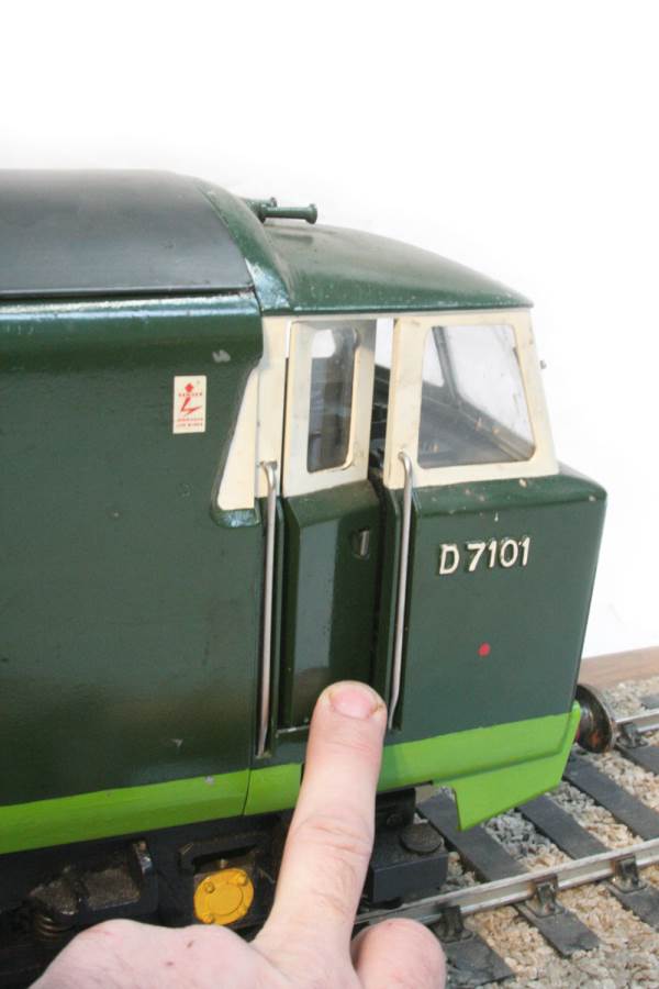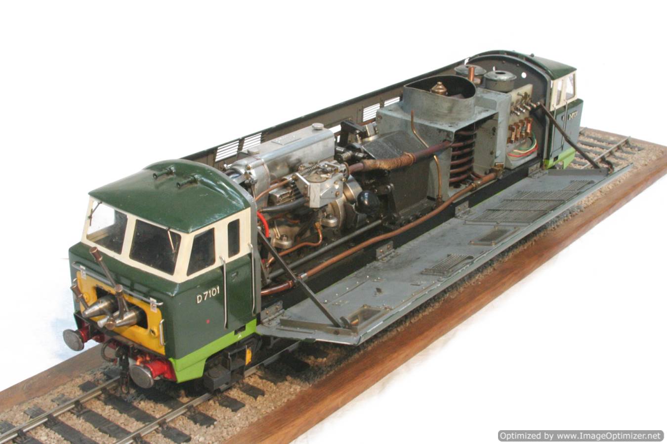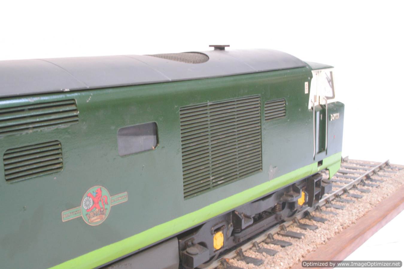 Here we have a rather special little thing. A petrol engined, full mechanical drive 3 1/2" gauge BR Class 35 Hymek! For some inexplicable reason, diesels are rare in 3 1/2" gauge for a start, but a well detailed, 'real' engined loco is rare as hen's teeth!
