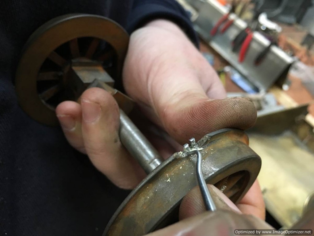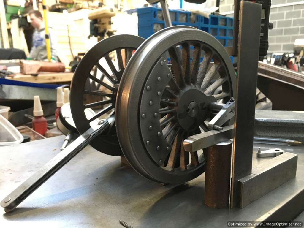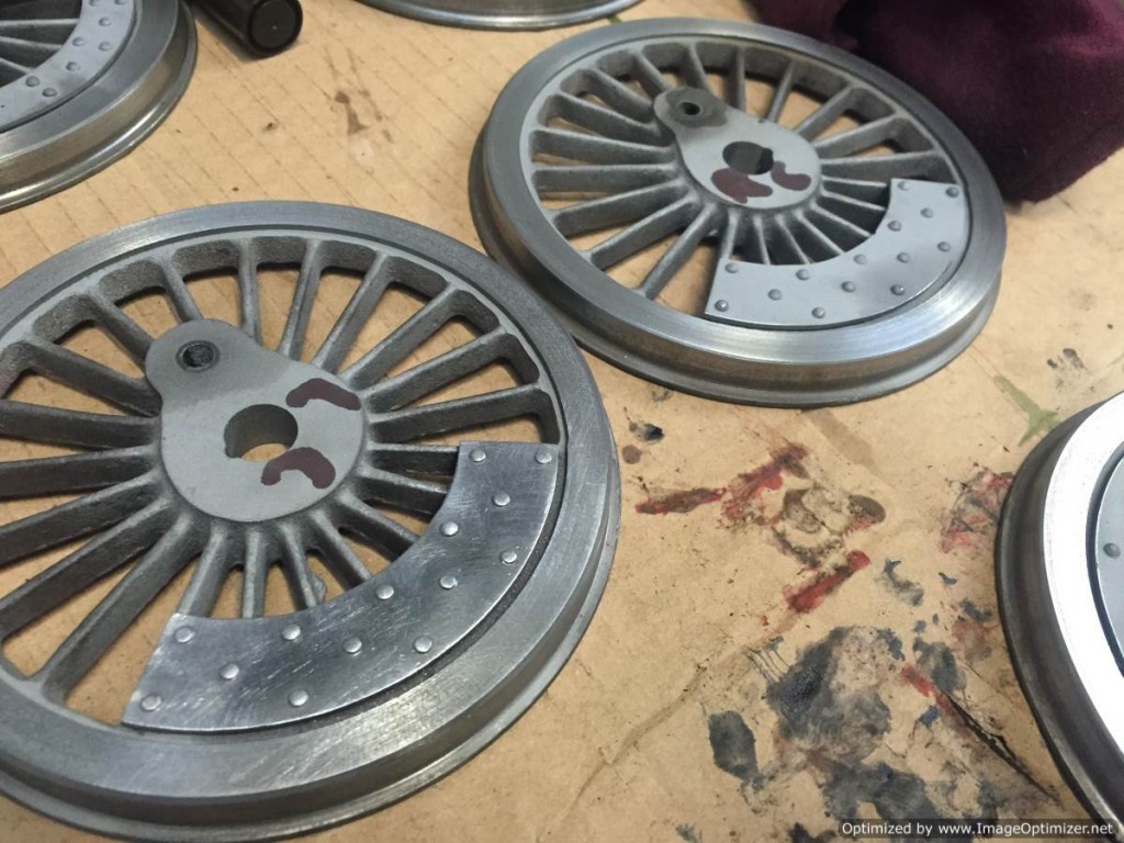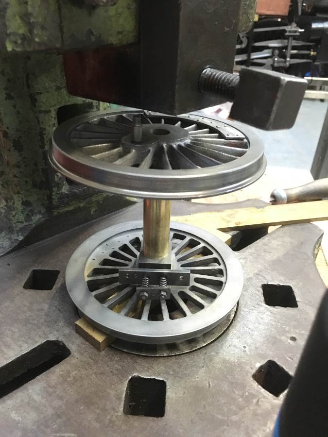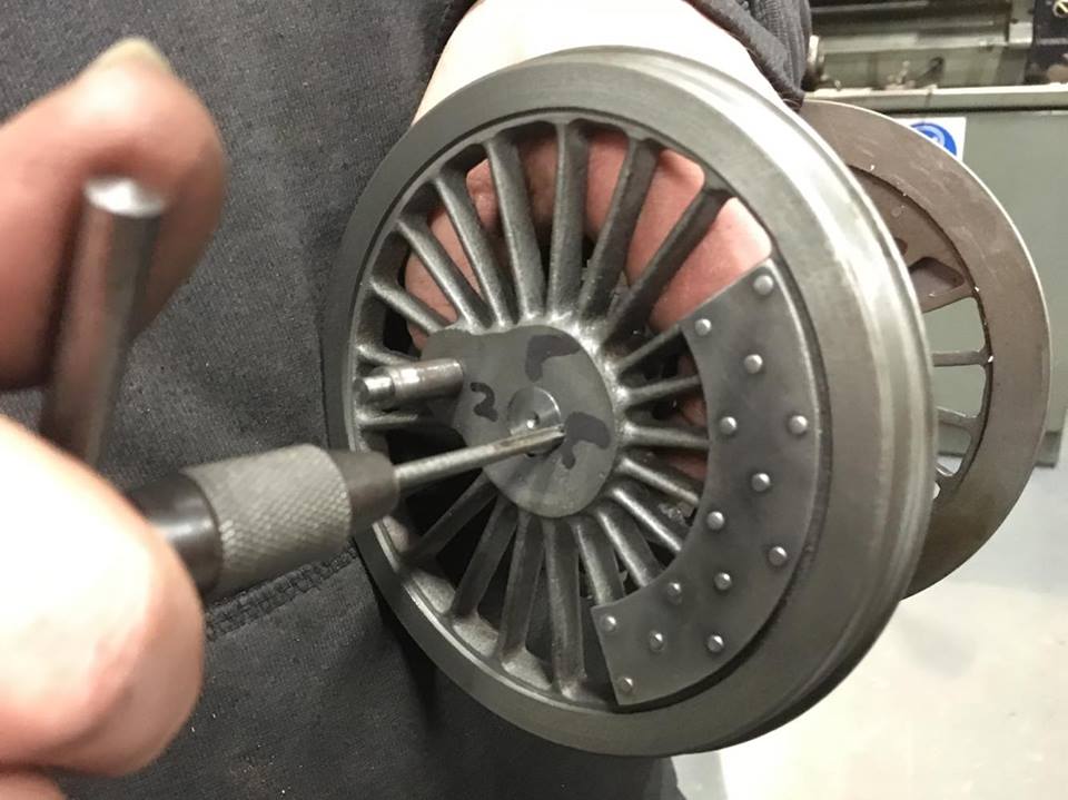 This takes us nicely into the wheels. Firstly due to the axle box issue, we decided fairly early on to make new axles to go into the new boxes. This meant re-boring the wheels as well to make sure everything was a nice true fit. At the same time we flattened off the dome headed rivet detail holding on the balance weights as on the full size thing these are flat head rivets rather than 'sticky-outy' domes. Much nicer, particularly when the paint goes onto them and the light starts reflecting off the surfaces.