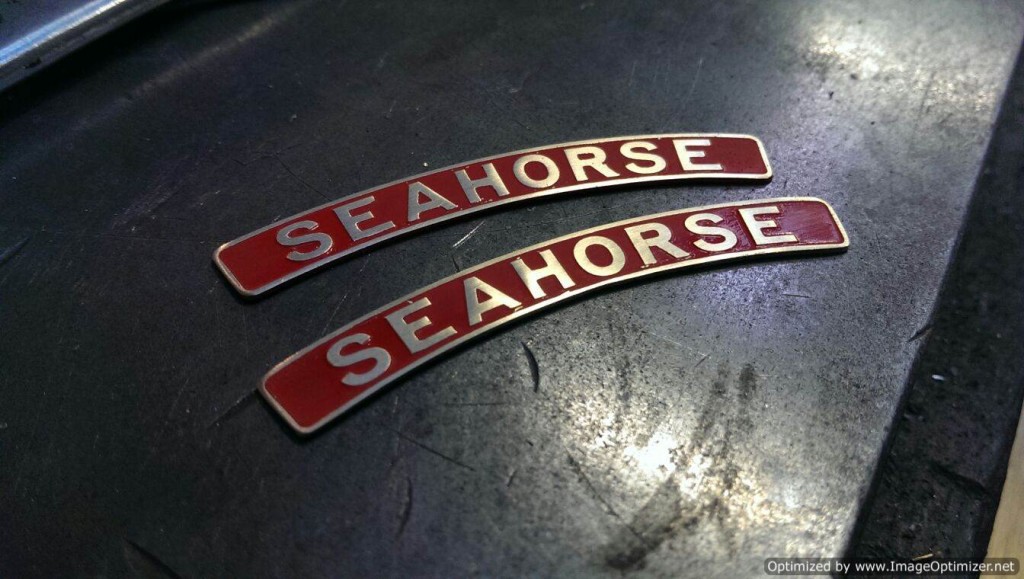 .....and the nameplates. Tricky to find a definitive photo of Seahorse in colour that proves the background plate colour, but we've pretty much decided now that they should in fact be black. So they will be getting a little 'tweak'. They do look good in red though!