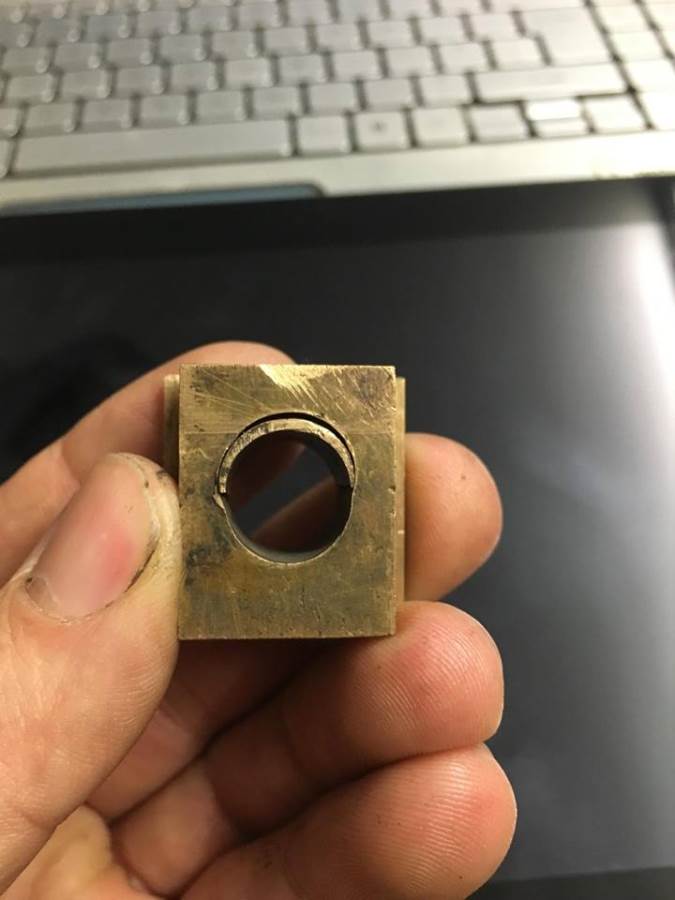 Then, upon inspection,..... we noticed some horrible crimes committed on the axle boxes! The rear axle had simply been running in the ash pan. The axle boxes also, for the rear axle being entirely exposed to the ash. Consequently they had been grinding themselves away for some time, and were now more oval than a rugby ball in a Cricket stadium! Then, on top of that, at some point someone has attempted a solution by popping in a crescent moon shim,.... which they held in place by shoving a bit of copper wire in through the oil hole!! The upshot was that we decided to make both new Axle boxes and new axles,.... the rear of which is now going to run in a sealed cannon box to stop any future ash ingress into the box. The new ones are cast iron, machined from solid cast bar.