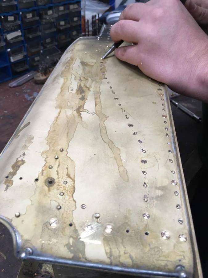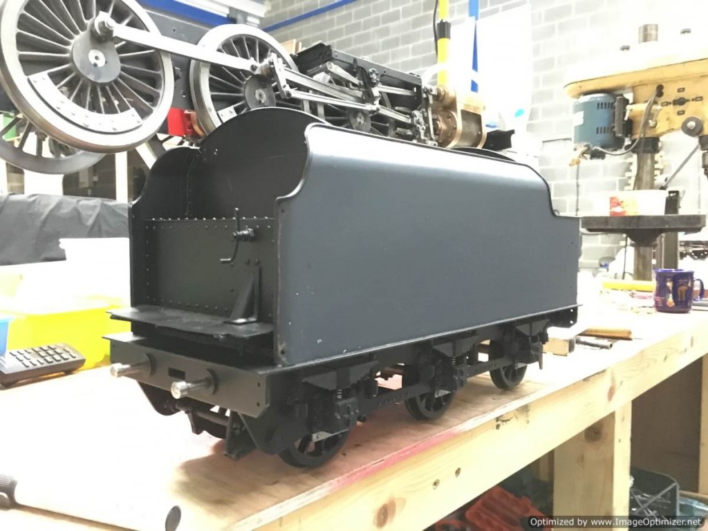 The tender body was riveted in a model engineering/non prototypical style, so we took the decision to remove the rivets. The structure was then held together with a countersunk screw every 4th hole, with the rest of the rivet stubs being filed flush and flooded with solder. The solder was then scraped and sanded flush, before the whole thing was ready for priming.