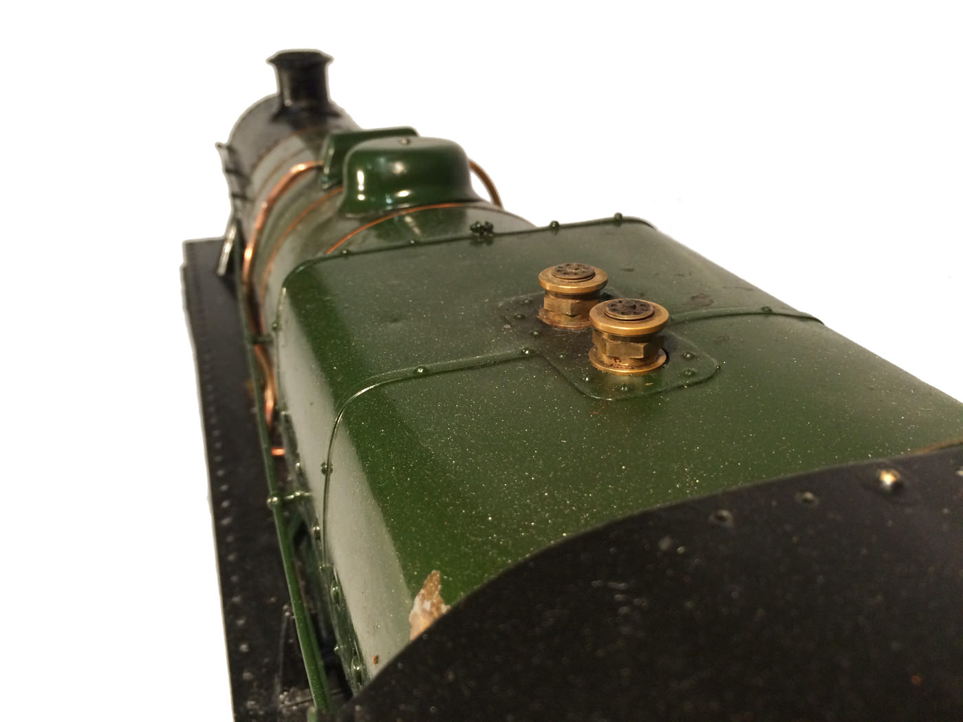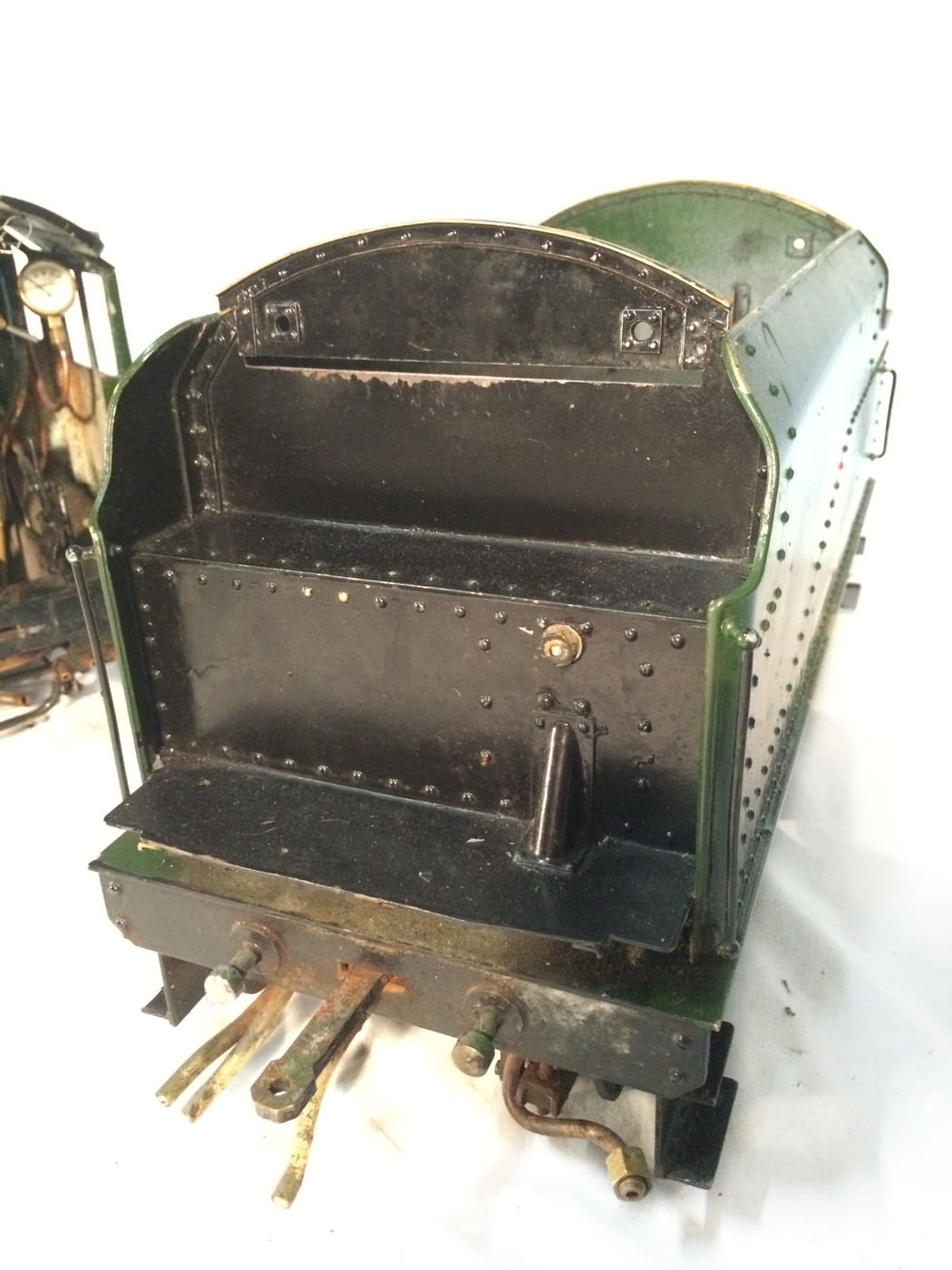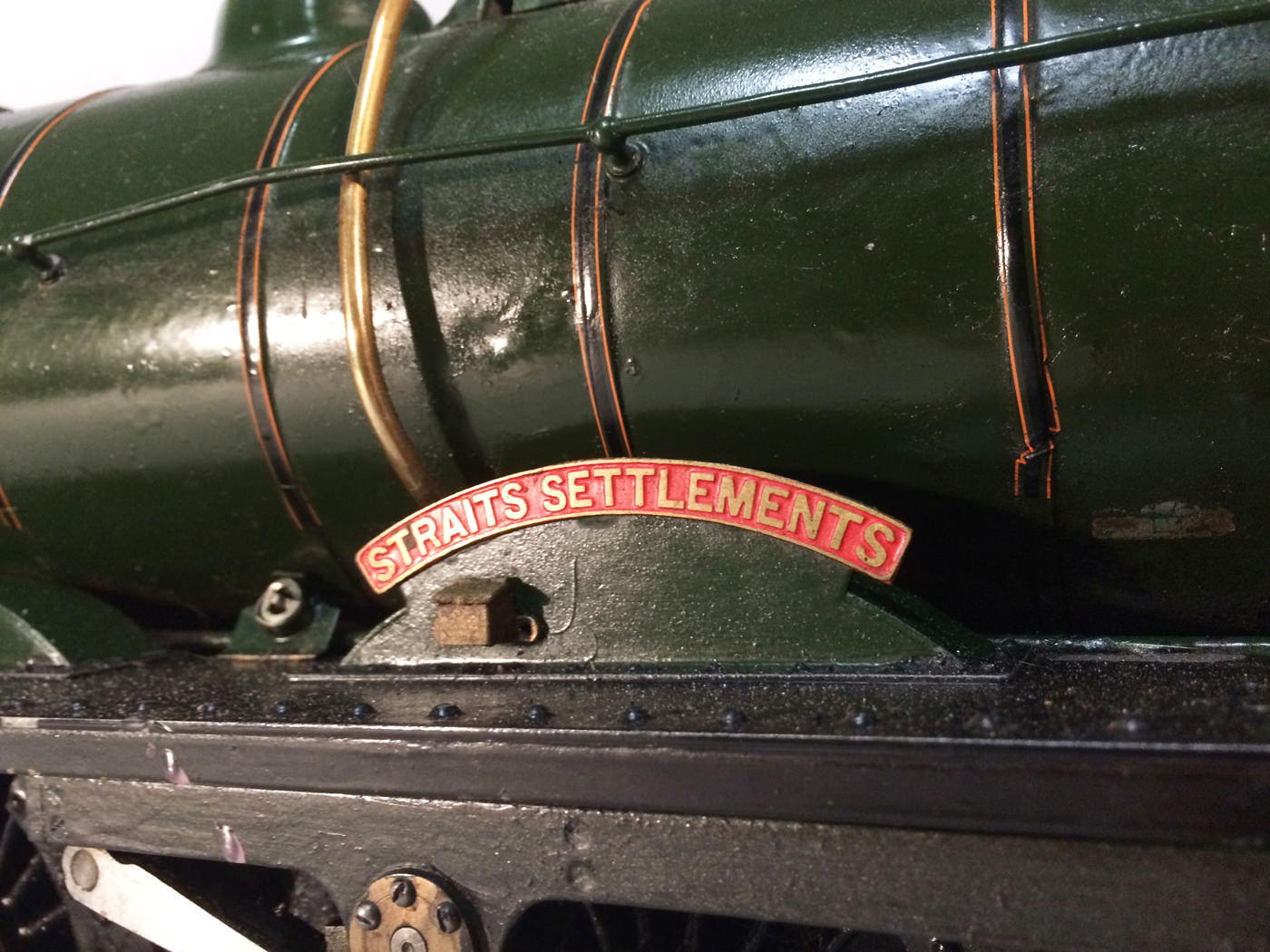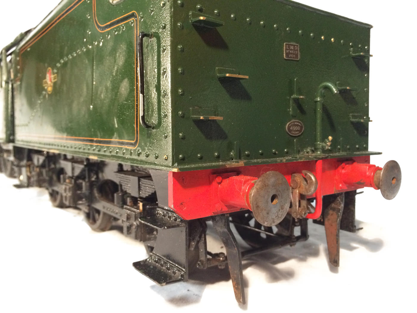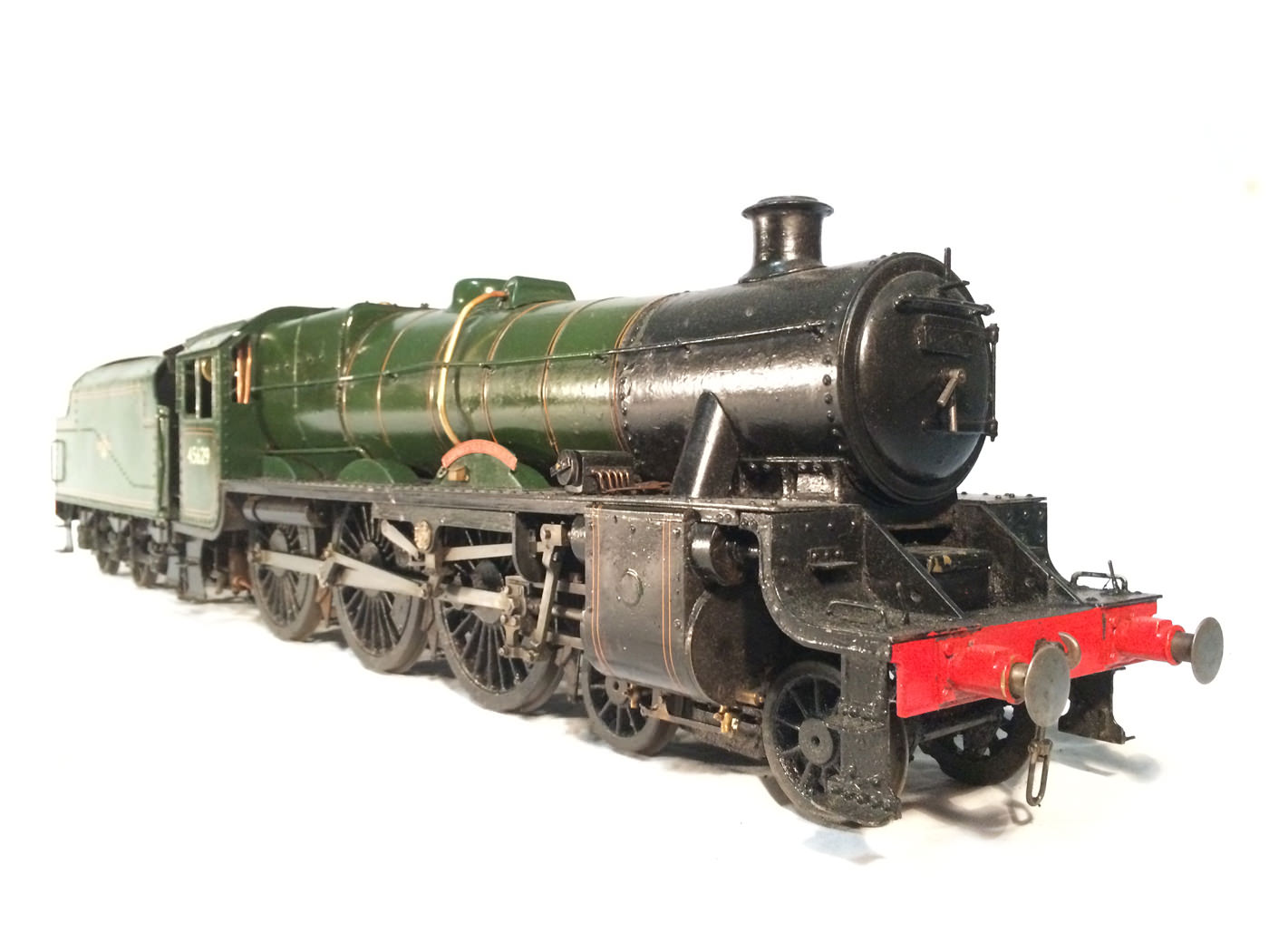 Here we have another rare little thing. A 3 1/2" gauge LMS Stanier Jubilee, 45629 'Straits Settlements'. Although this is only a 2 cylinder model, it isn't simply a black 5 (Doris) painted green! The builder has taken pains to create something different, and has successfully produced a model that certainly looks the part. This is a great proven performer too, having been enjoyed by the previous owners over the last few years, running regularly and visiting many club tracks. It's not by any stretch an exhibition piece, the paintwork being that of a well used model, but it's in good order, ready to play and will probably be the only 3 1/2" Jubilee that you're ever likely to bump into!
