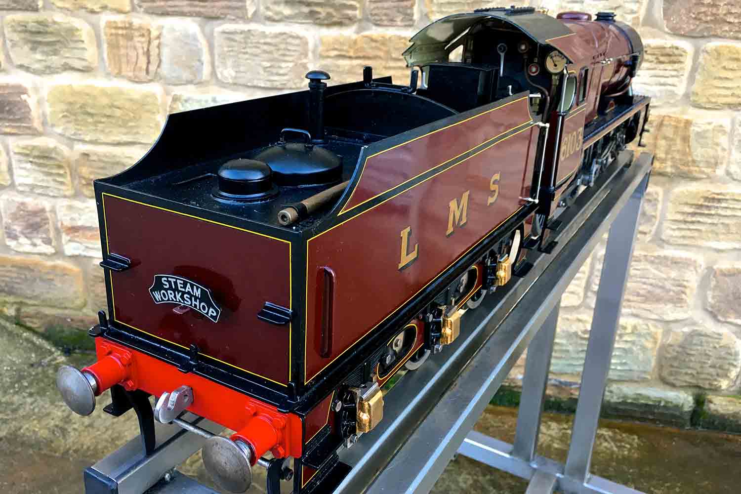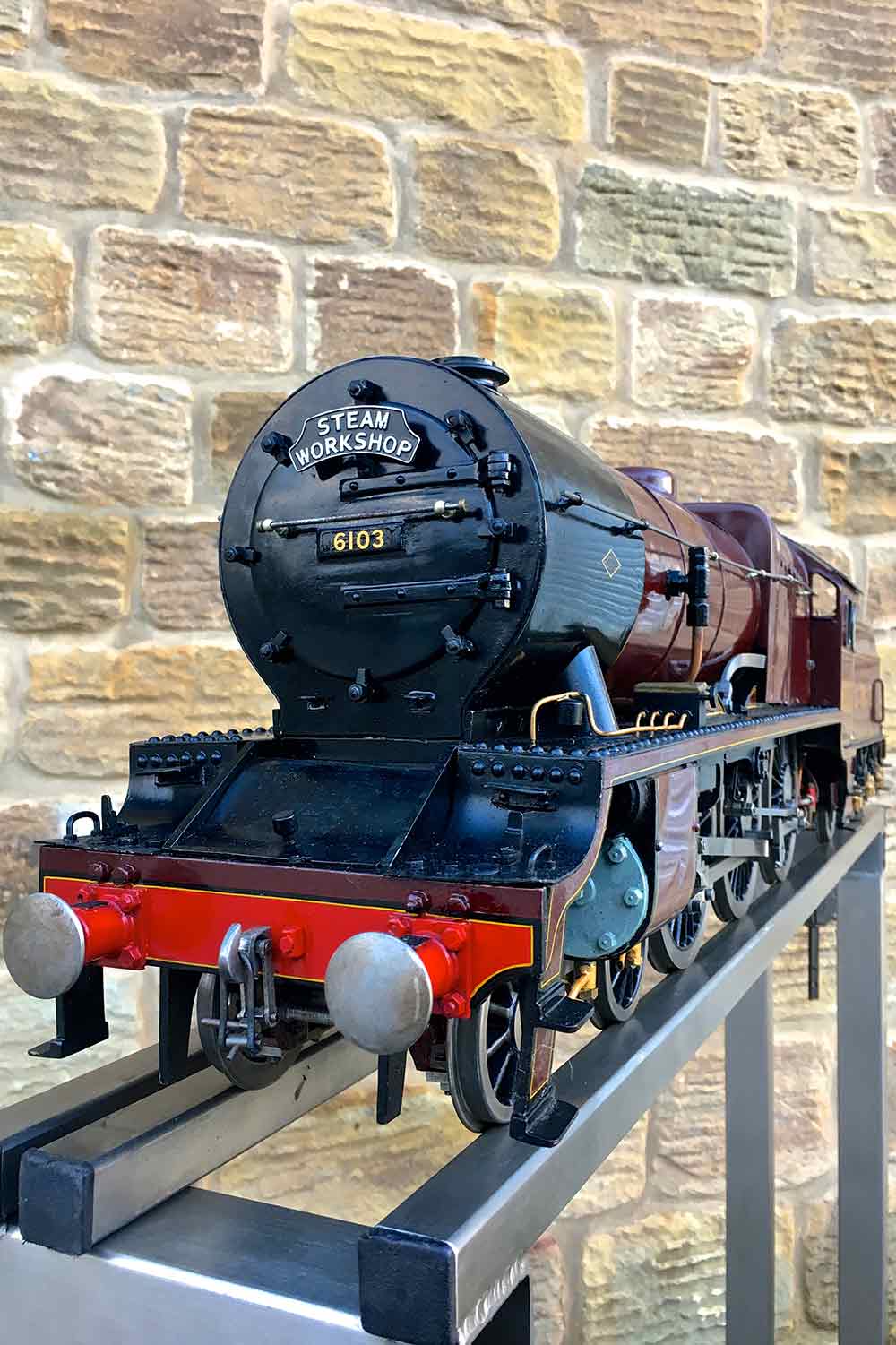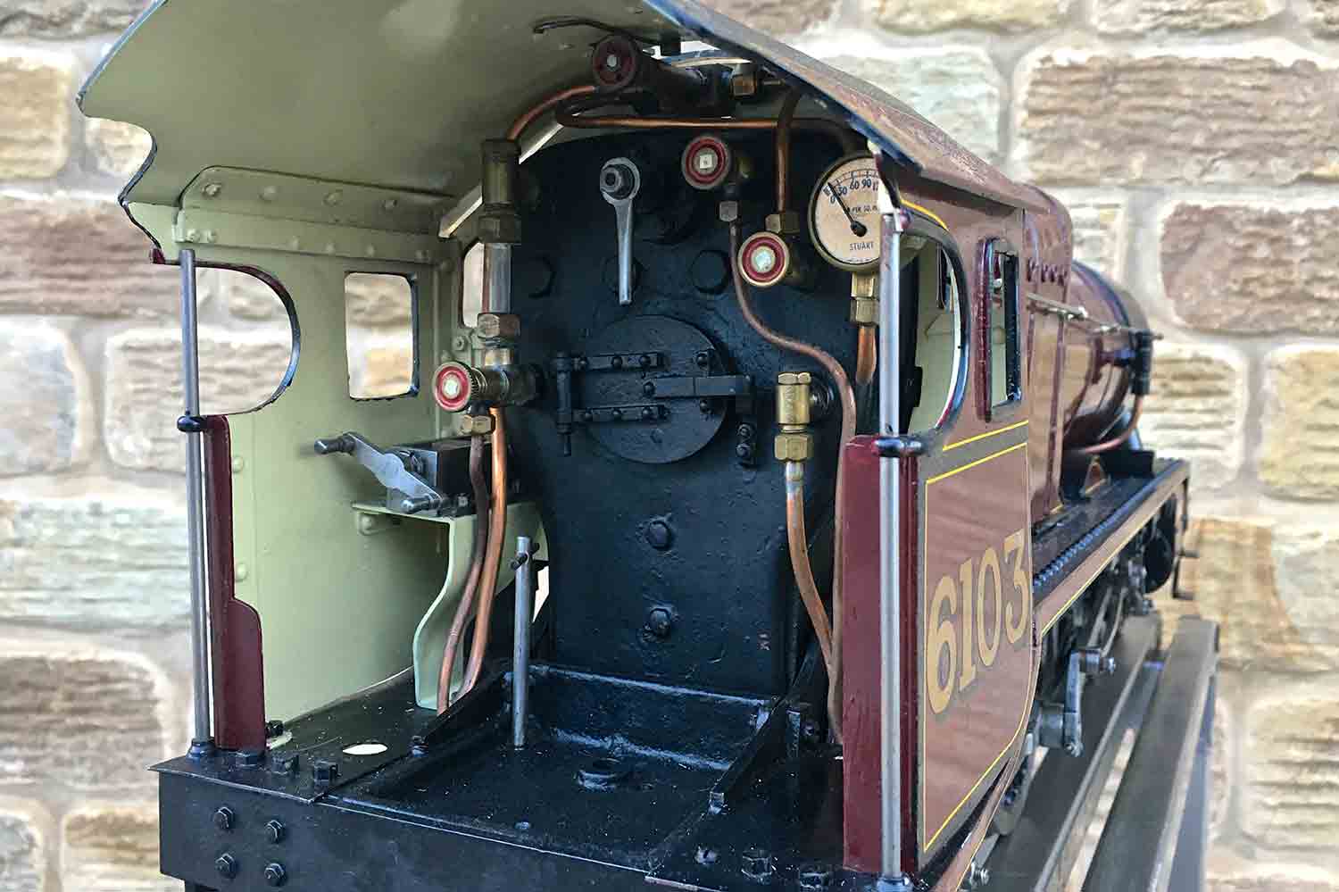 Here we have a nice and tidy fairly new 3 1/2" gauge LMS Fowler boiler scot, 'Royal Scots Fusilier', 6103. This is another model that has come to us before it's done a lot of running by the looks of it. She's been run a few times, but judging by the general tidyness and the lack of serious soot build up in the fire and smoke boxes we don't think she's seen a great deal of work.