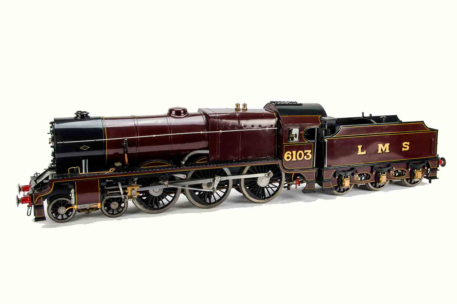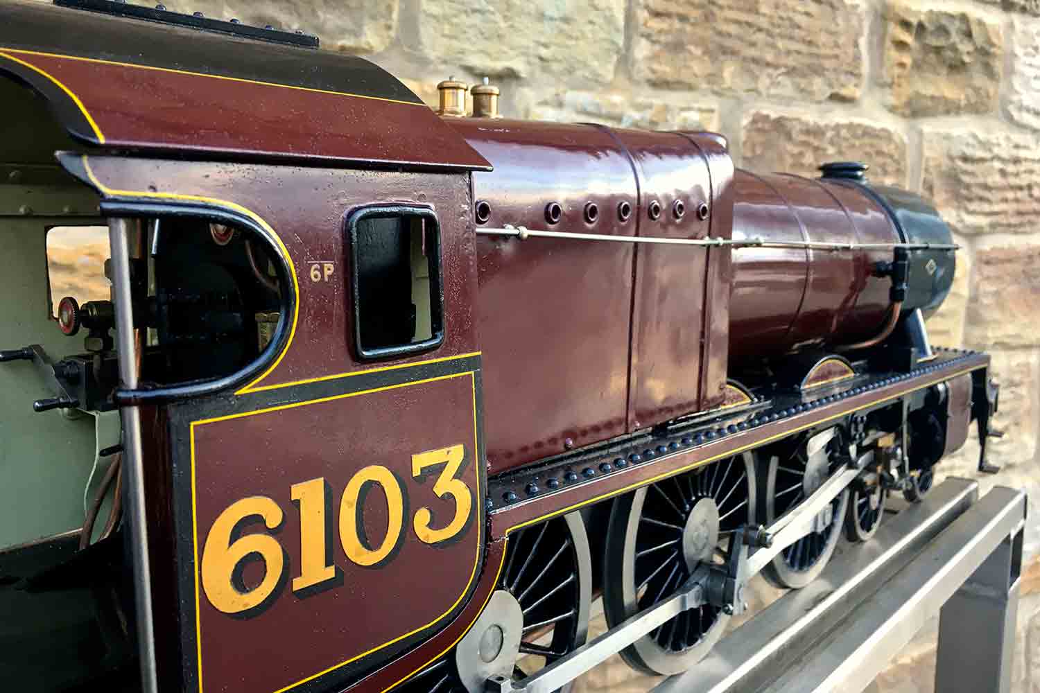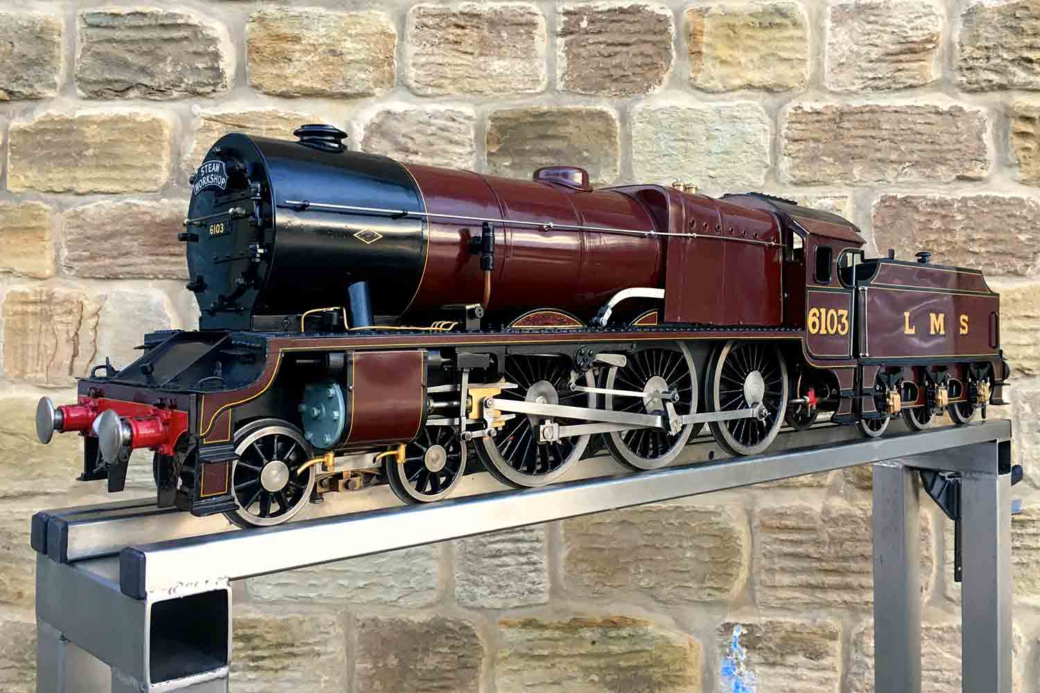 Here we have a nice and tidy fairly new 3 1/2" gauge LMS Fowler boiler scot, 'Royal Scots Fusilier', 6103. This is another model that has come to us before it's done a lot of running by the looks of it. She's been run a few times, but judging by the general tidyness and the lack of serious soot build up in the fire and smoke boxes we don't think she's seen a great deal of work.