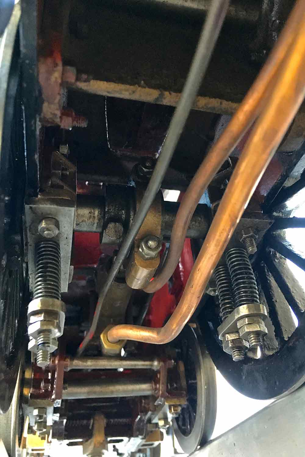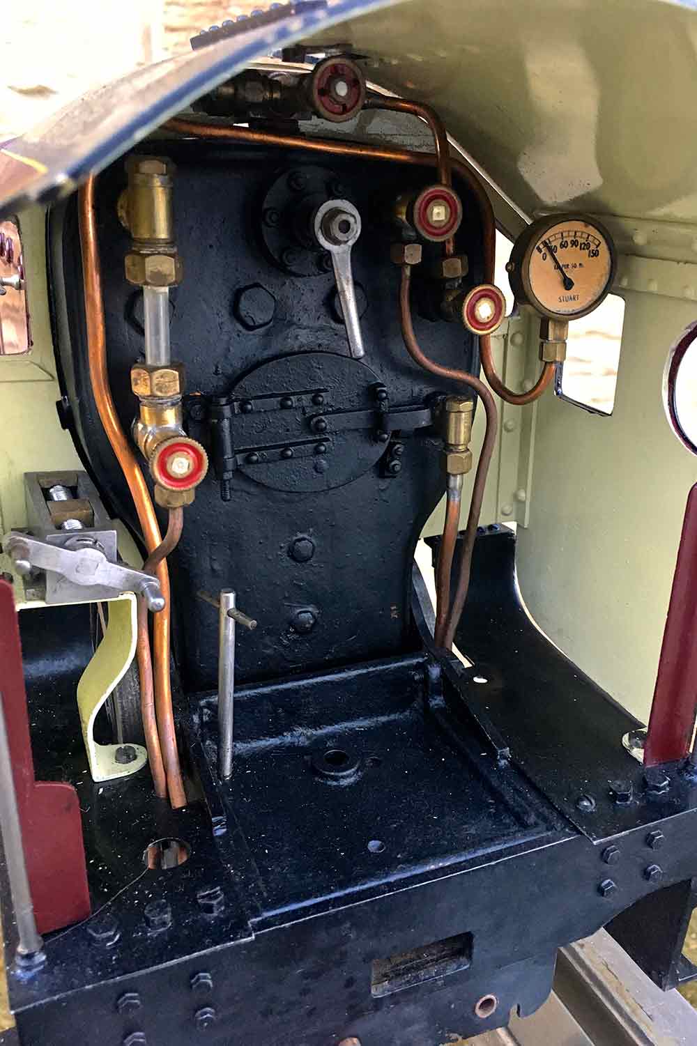 Mechanically this is a nice and crisply engineered model, with very little wear n tear on the bottom end. The boiler is silver soldered copper, and a neat and tidy job, and although structually tight and sound, we found that under twice working pressure there were a few pin weaps on some of the stay nuts in the firebox. Small ones, that we reckon would probably take up with a drop of radweld or some localised HT locktite.