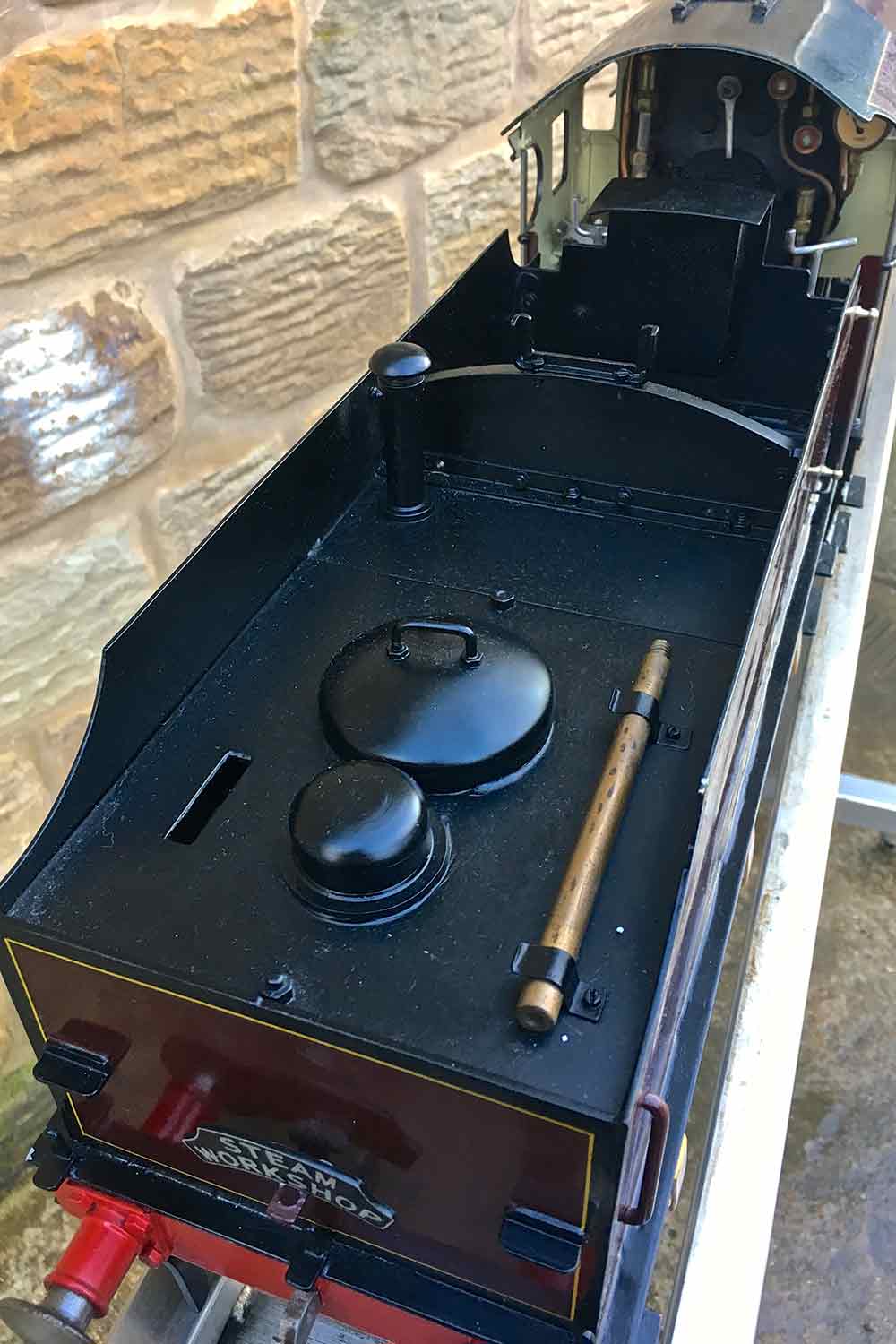 There is an injector, an axle pump and a hand pump in the tender, lubrication is mechanical and hidden under the footplate as per usual practice.