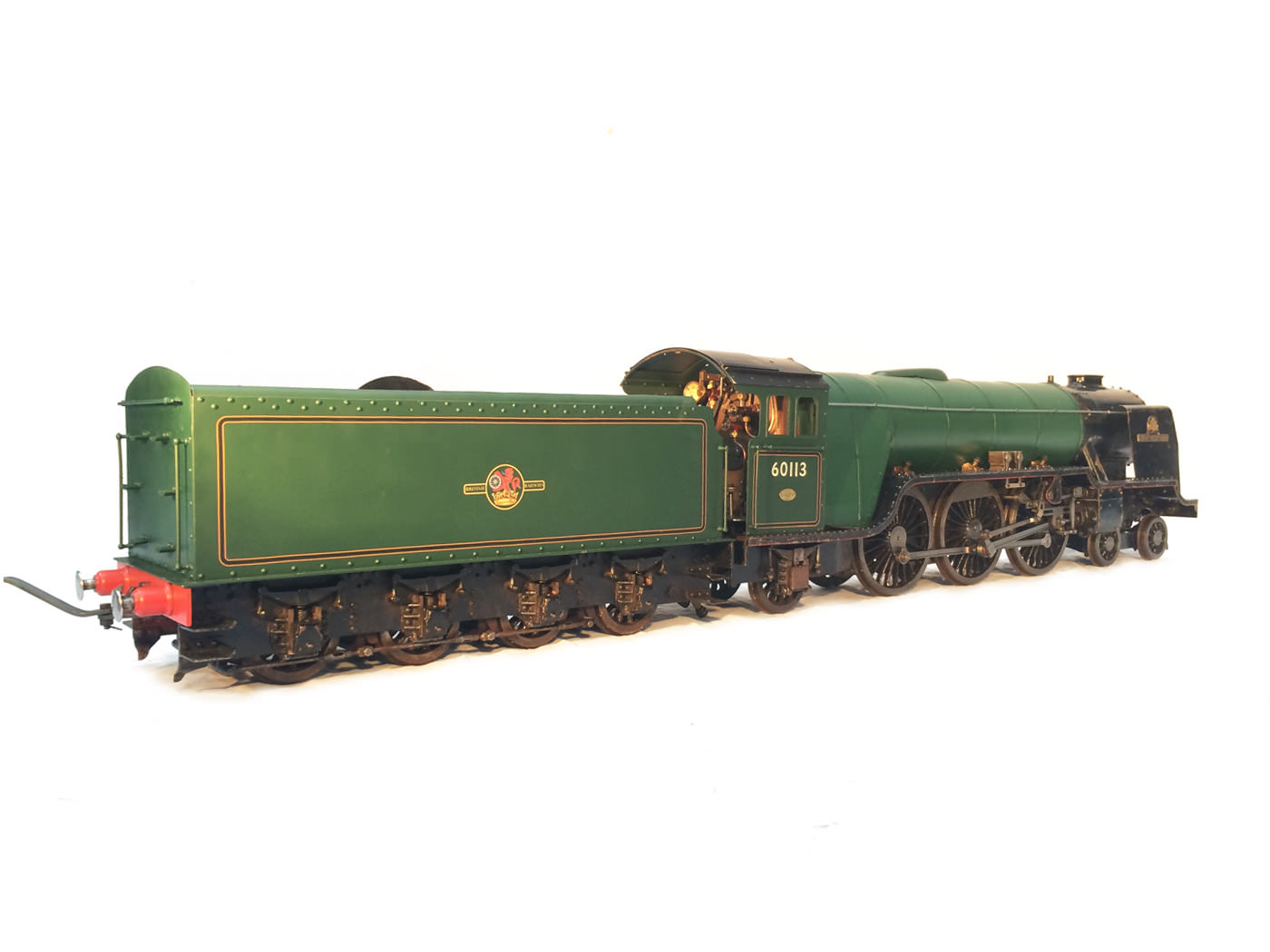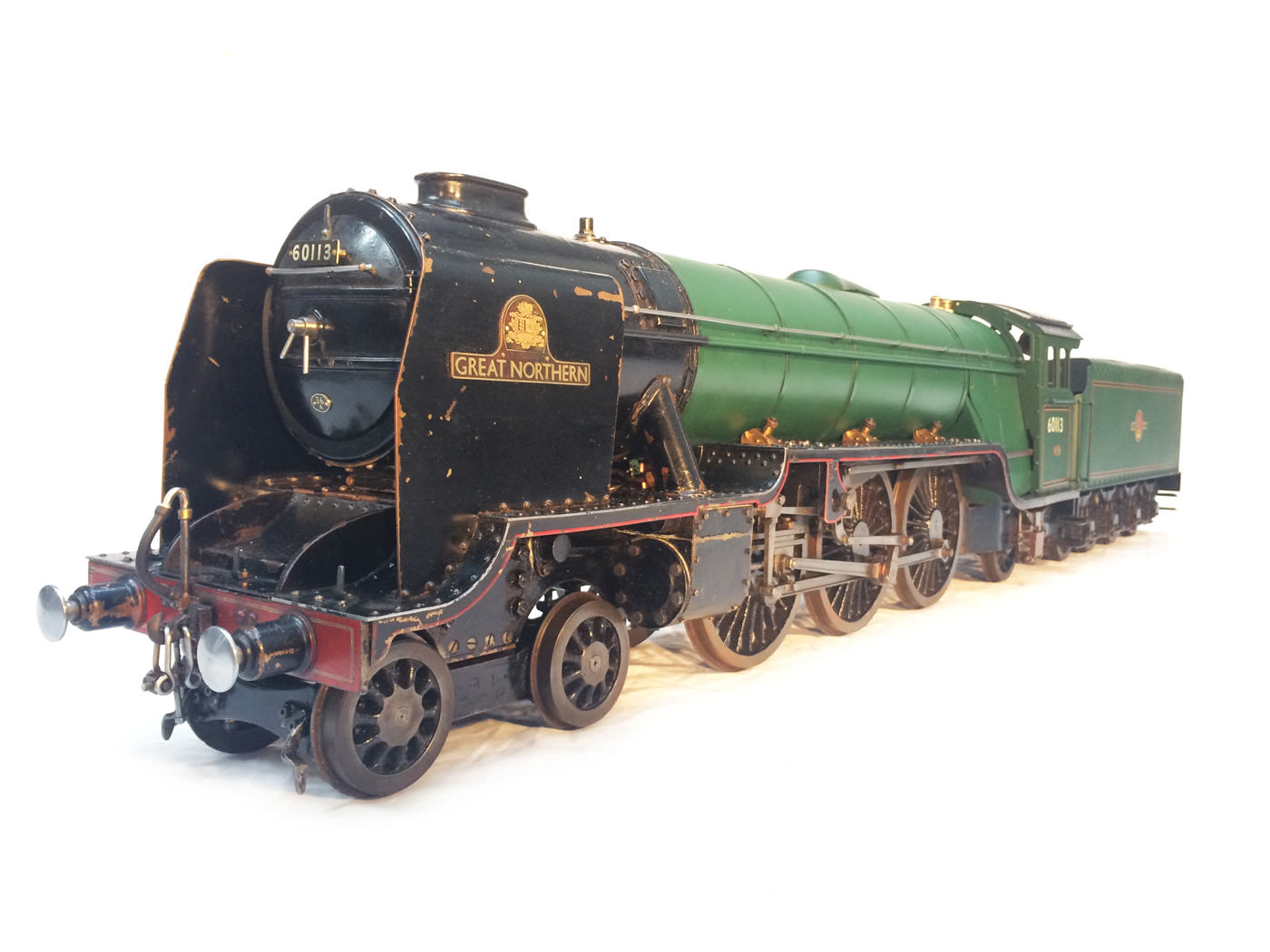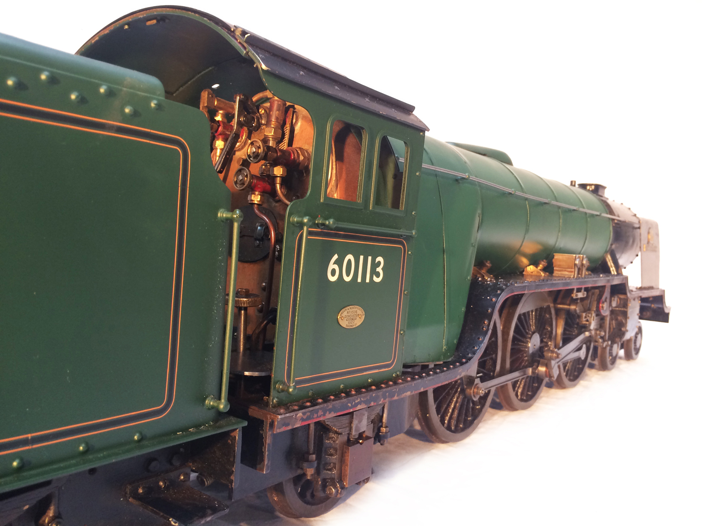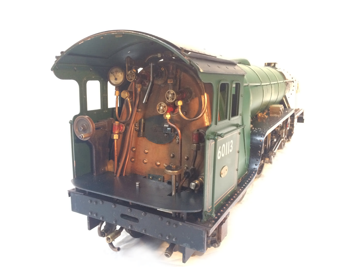 Here we have a nicely engineered LNER Thompson A1/1, which for those who might not know, was the one off 1945 Thompson re-build of the original 1922 Gresley A1 'Great Northern'. Originally built in the 50s, but professionally re-boilered with a Swindon boiler, the model is built to the LBSC 'Heilan Lassie' design, and presented in lined out BR Green. Mechanically the loco is fully sorted, tested and ready to play. It's a full three cylinder and as such runs particularly smoothly. It has had a recent re-paint, the tender and cab having been very neatly finished, lined and satin lacquered. The boiler barrel would benefit from it's lining finishing and the same satin lacquer top coat to finish it off and match it up with the rest of the engine.