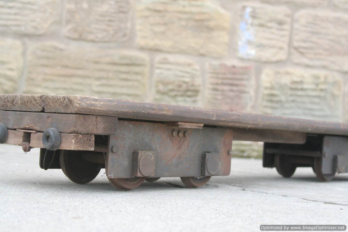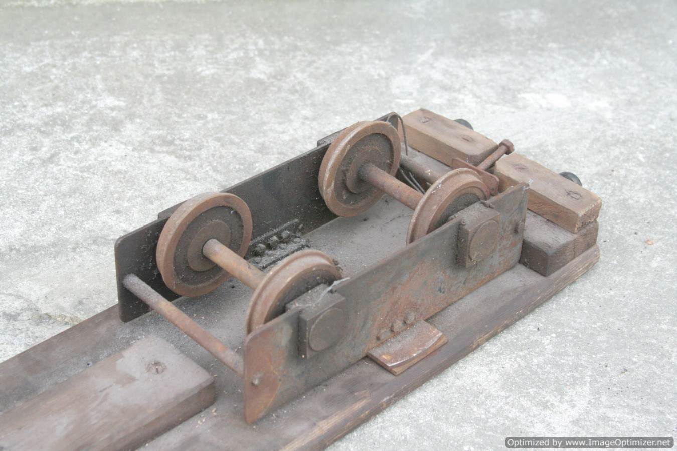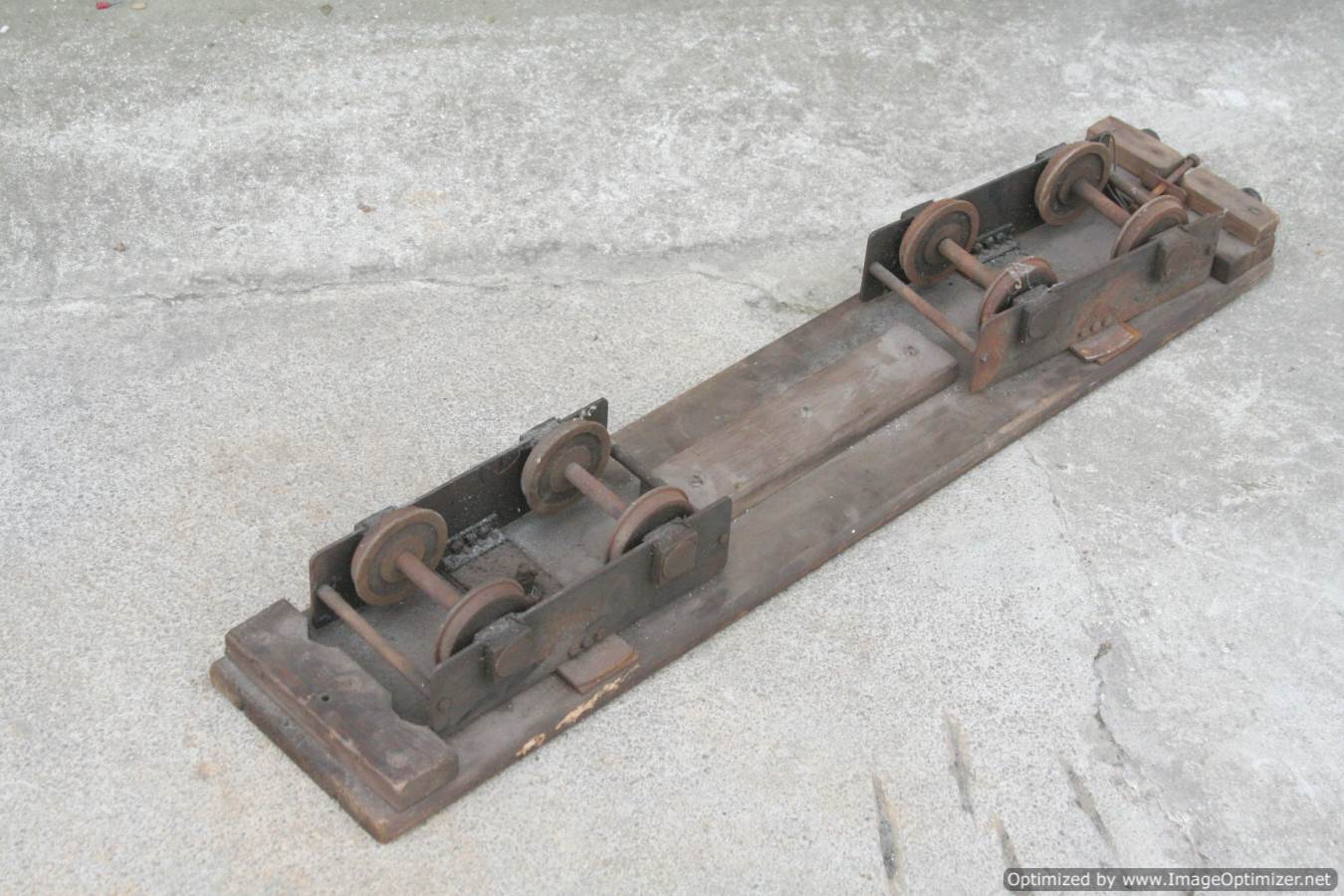 Here we have a 3 1/2" gauge bogie riding truck. It's an older model, but one that was both well built, and well looked after. It's been sitting in a dry shed for a good number of years, hence the patina of age, but mechanically it is still very sound. It could quit easily be fitted with stirrups or sides for raised track use, or a box and foot steps for ground level. Another one that is ready to use, but would benefit from a new owner's TLC.