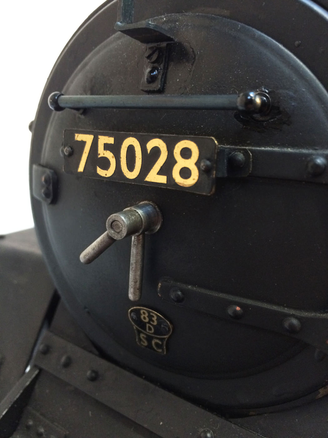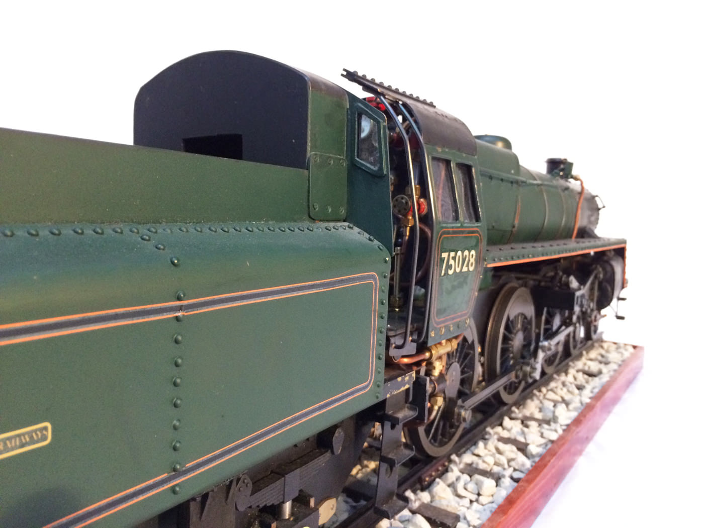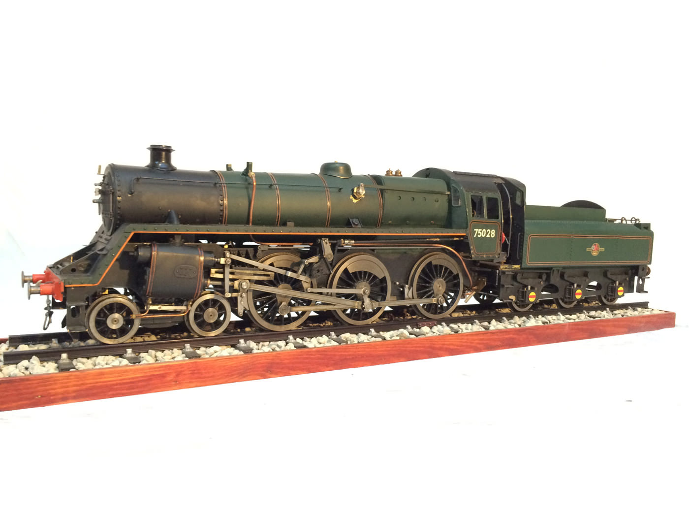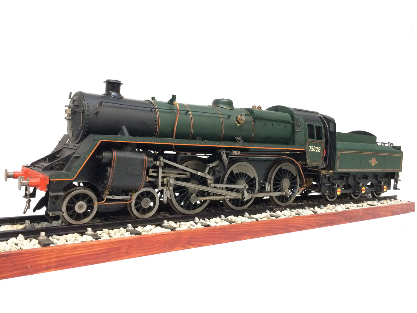 Well, here we have a fairly rare beast.  We know of three of them out there, but certainly not a model that pops up very often.  A 3 1/2" gauge BR Standard class 4.  This is a brand new model, with a professional boiler.  The machining work is really very crisp and tidy, and it certainly runs very well.  We've test steamed her a couple of weeks ago to find out exactly what needed before she was fully commissioned and ready to go, and actually everything worked pretty much perfectly straight out of the box.  The only issue was that the front set of driving wheels wasn't keyed to the axle and slipped round a fraction ending the fun.  We've since finished the model, keying the wheel, and she'd now ready to hit the track.