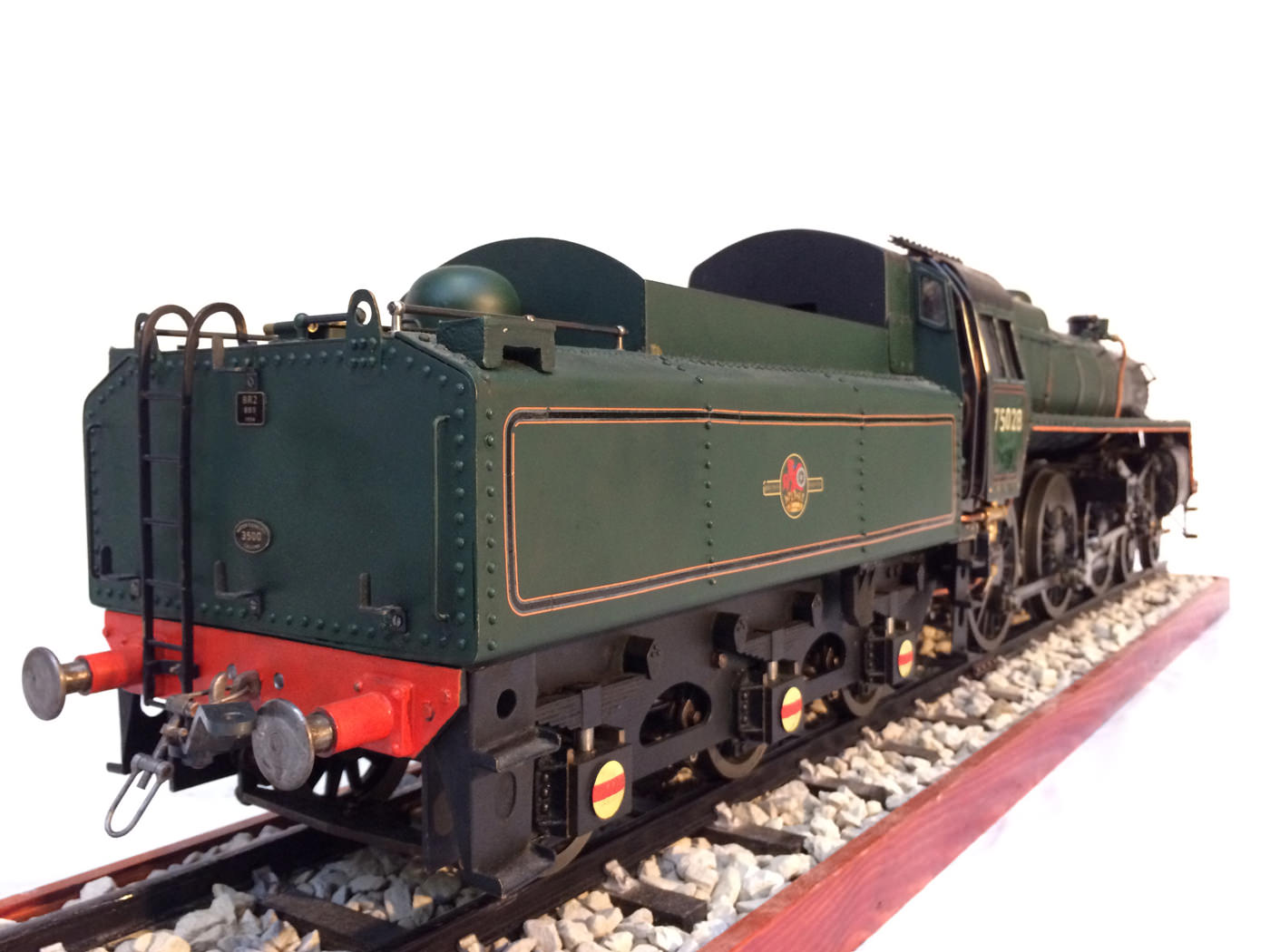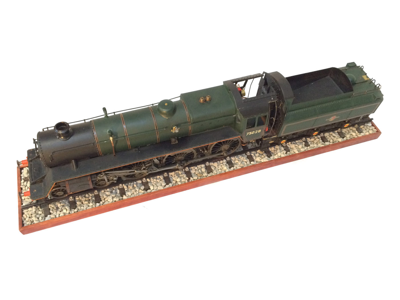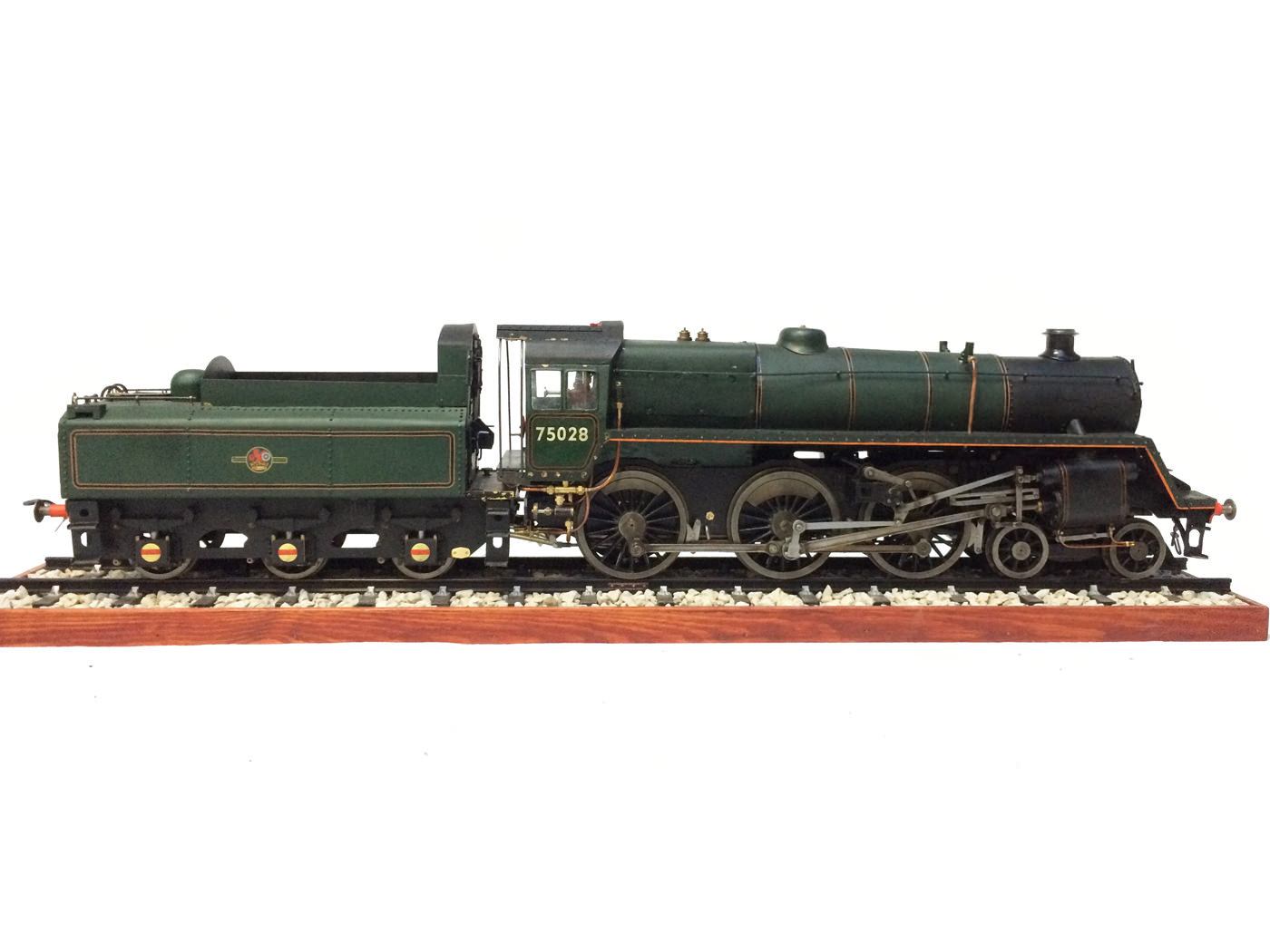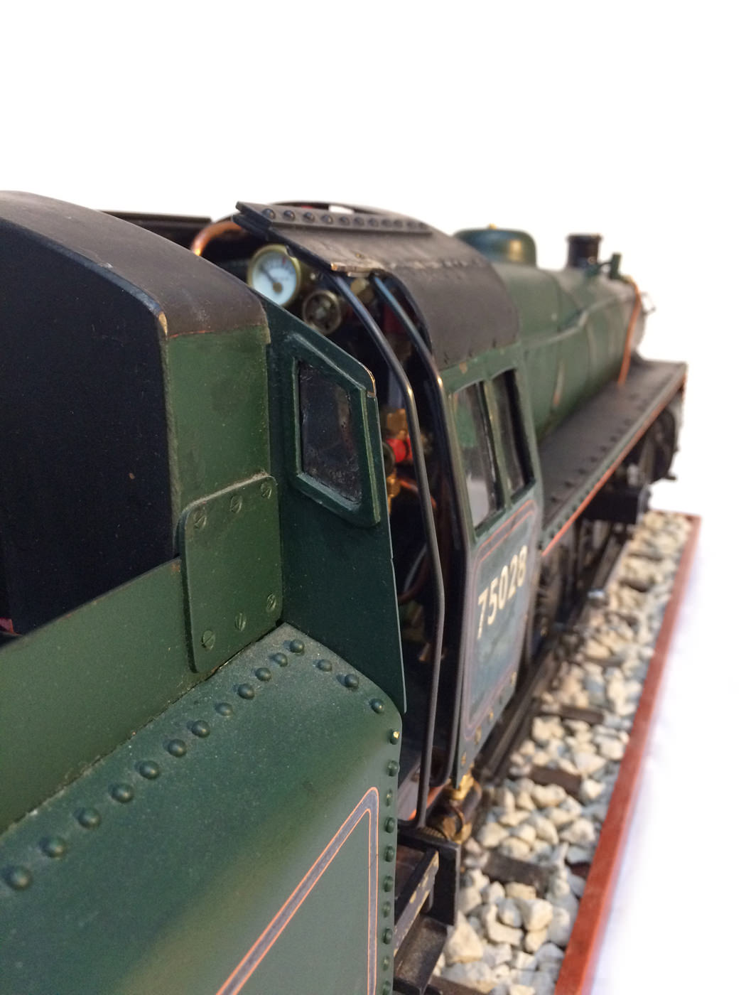 Well, here we have a fairly rare beast.  We know of three of them out there, but certainly not a model that pops up very often.  A 3 1/2" gauge BR Standard class 4.  This is a brand new model, with a professional boiler.  The machining work is really very crisp and tidy, and it certainly runs very well.  We've test steamed her a couple of weeks ago to find out exactly what needed before she was fully commissioned and ready to go, and actually everything worked pretty much perfectly straight out of the box.  The only issue was that the front set of driving wheels wasn't keyed to the axle and slipped round a fraction ending the fun.  We've since finished the model, keying the wheel, and she'd now ready to hit the track.