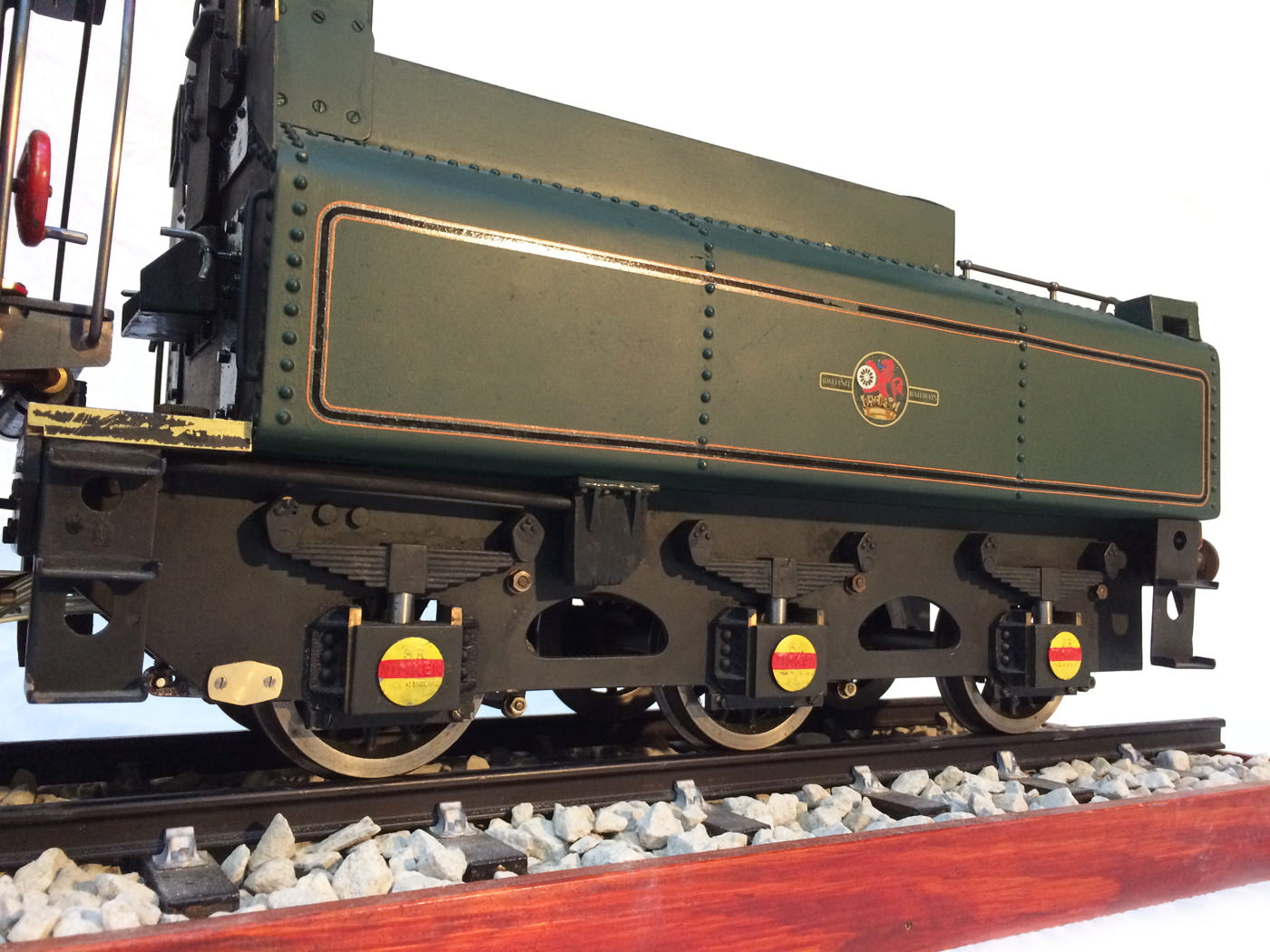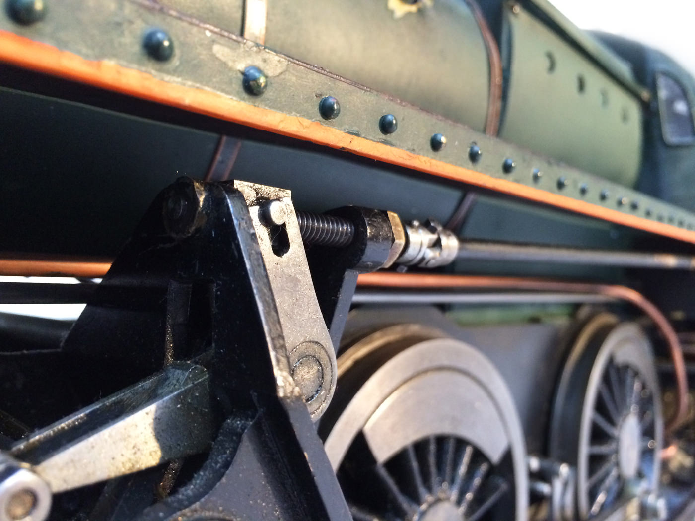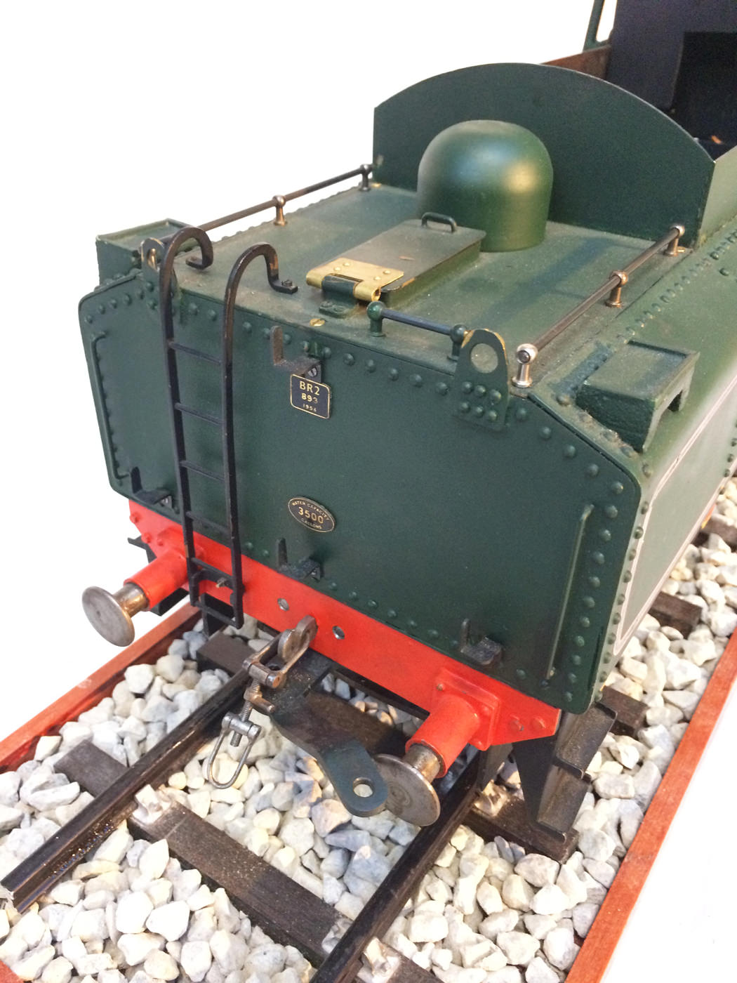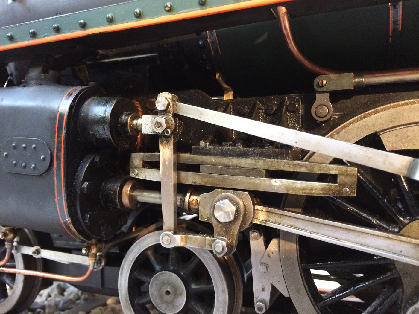 Although the paint finish has the odd scratch and chip, and in places the platework is a bit on the functional side, this is still a well made, and brand new model with only a couple of test steamings under it's belt.  All the usual things are there, injector, axle pump with footplate mounted bypass valve, and of course the hand pump in the tender.  Footplate operated draincocks, and lubrication is from the usual mechanical pump hidden under the front footplate.