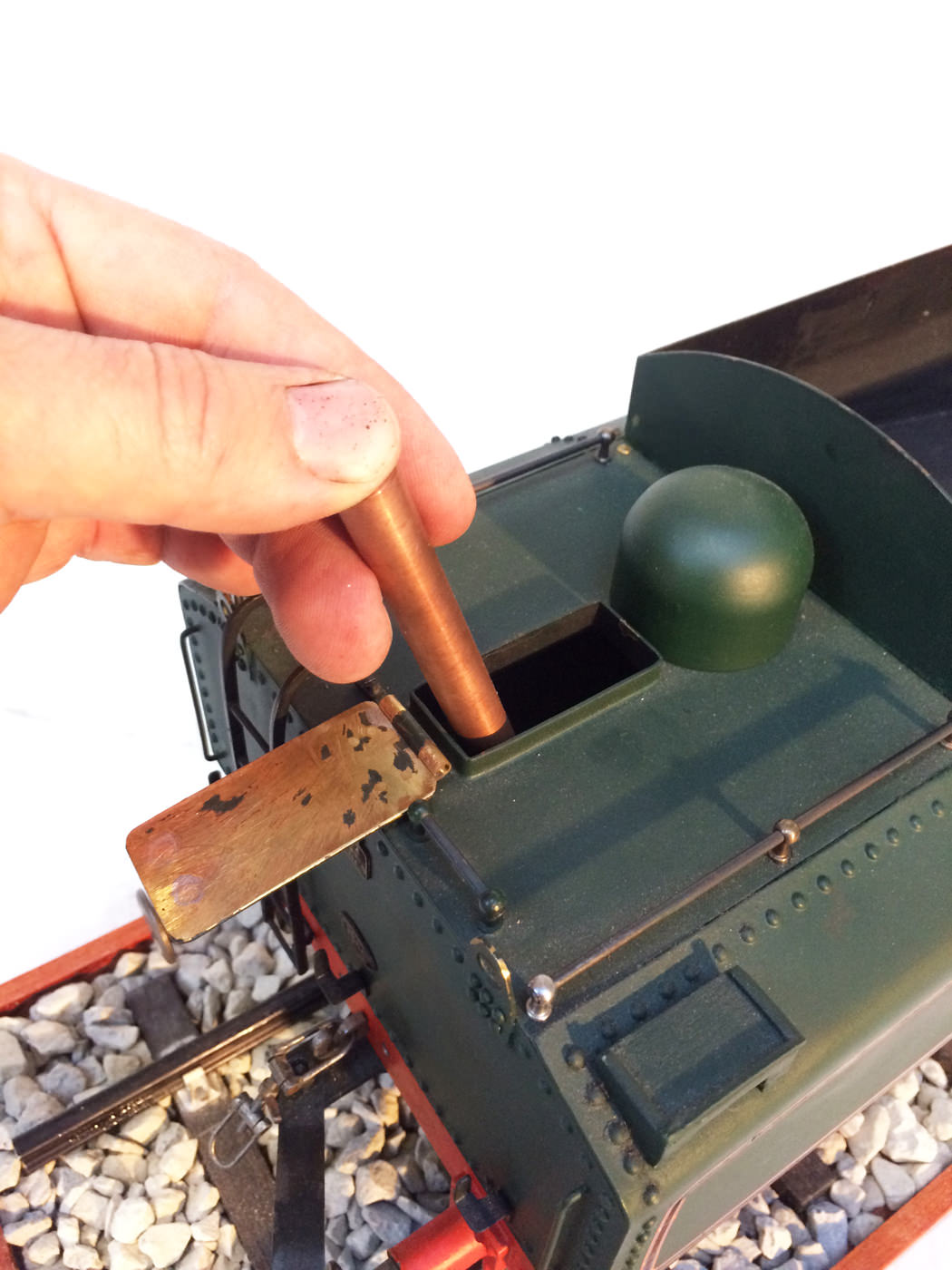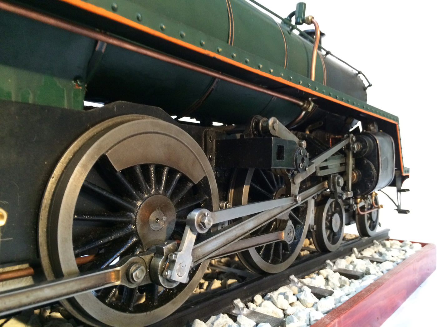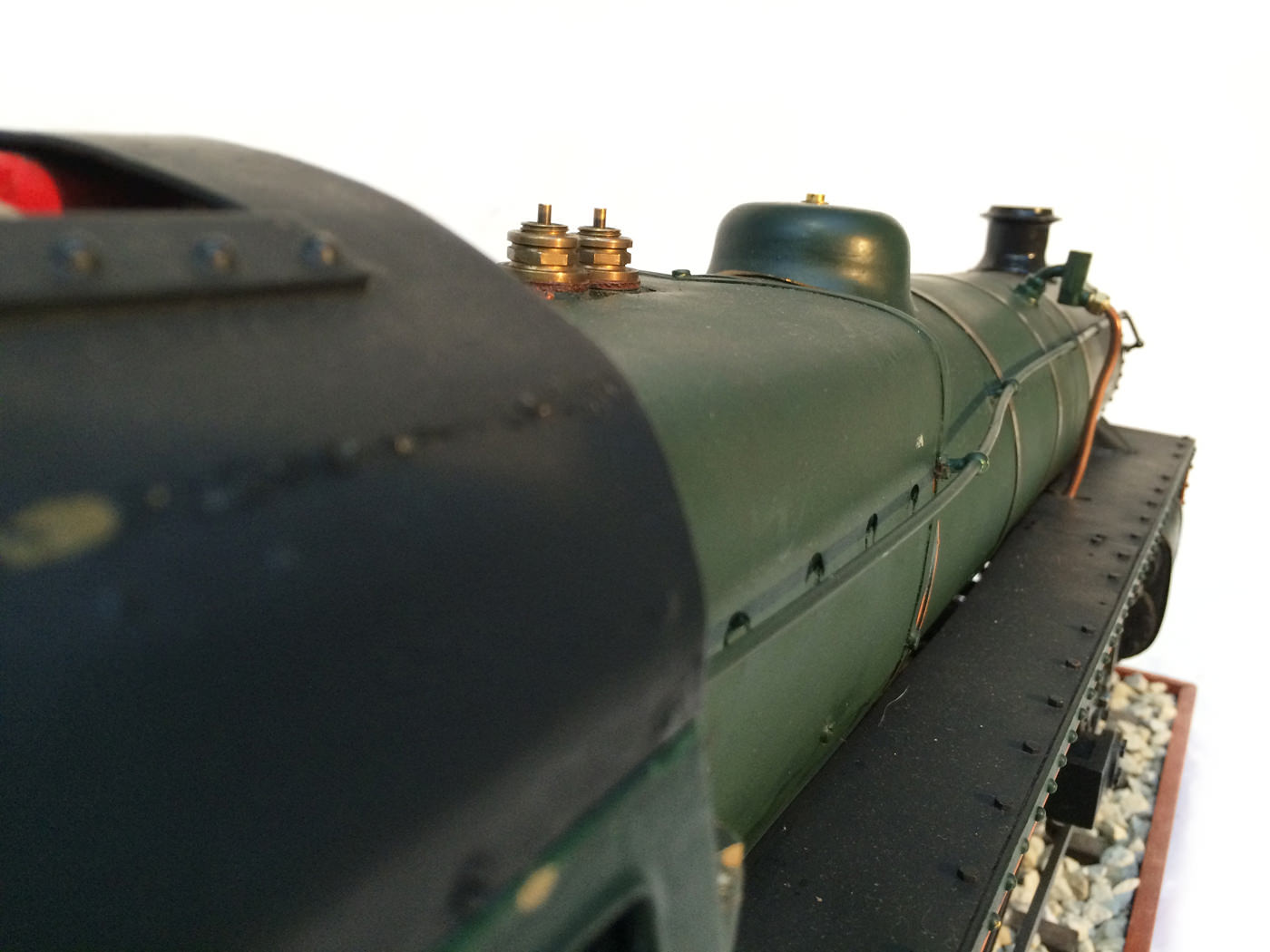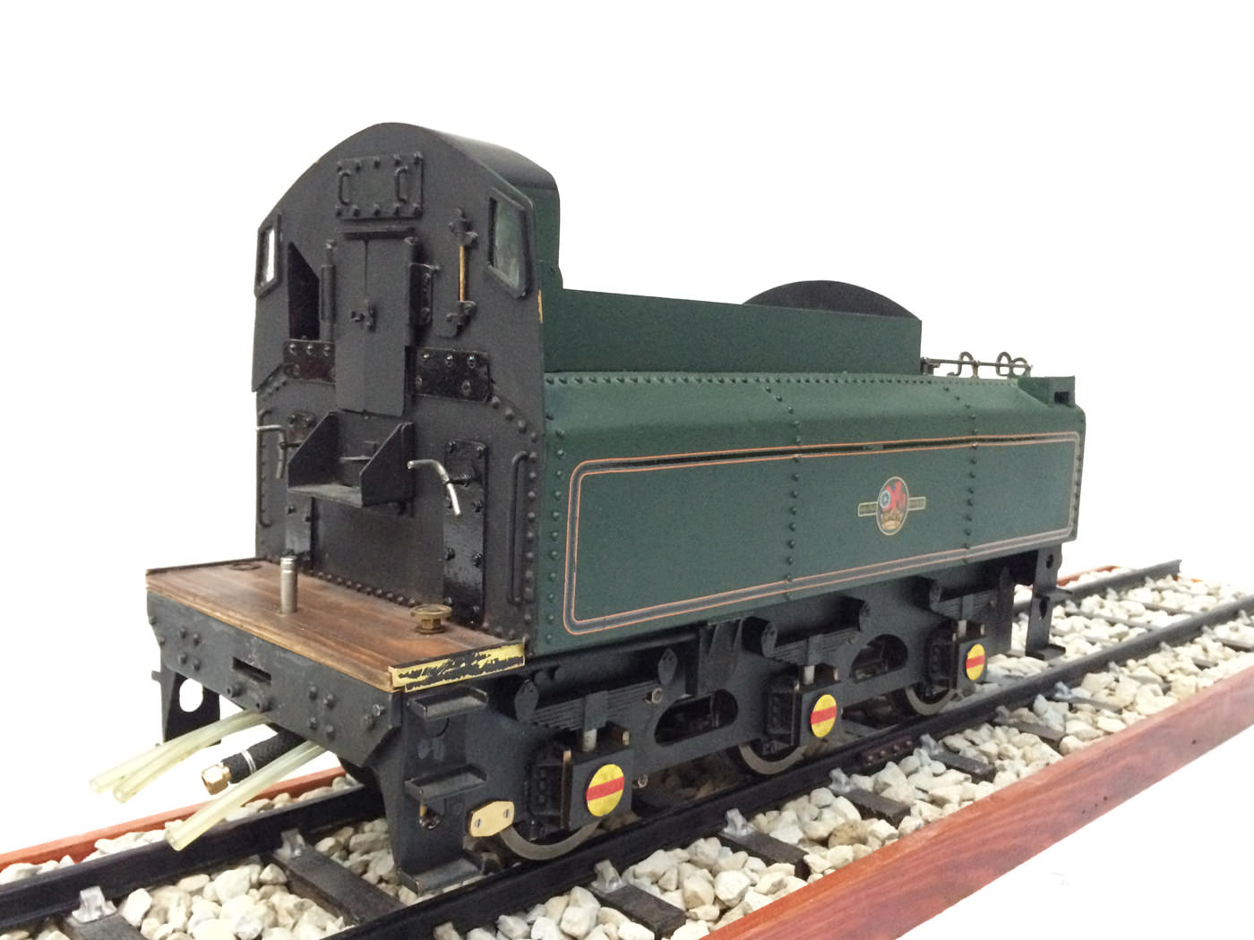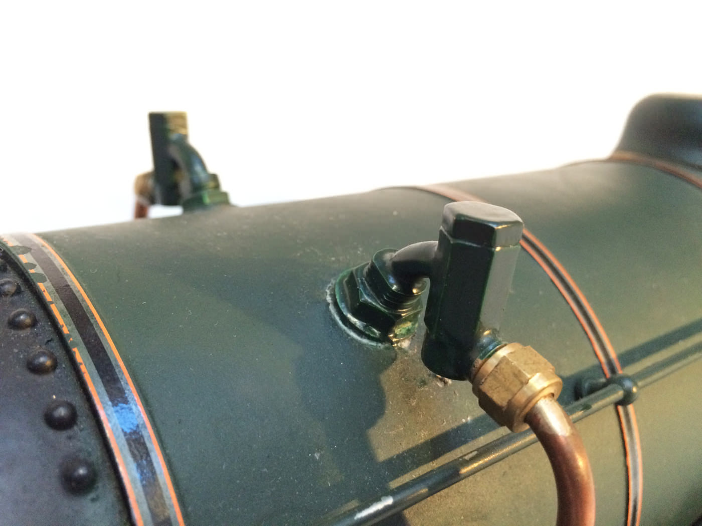 Although the paint finish has the odd scratch and chip, and in places the platework is a bit on the functional side, this is still a well made, and brand new model with only a couple of test steamings under it's belt.  All the usual things are there, injector, axle pump with footplate mounted bypass valve, and of course the hand pump in the tender.  Footplate operated draincocks, and lubrication is from the usual mechanical pump hidden under the front footplate.