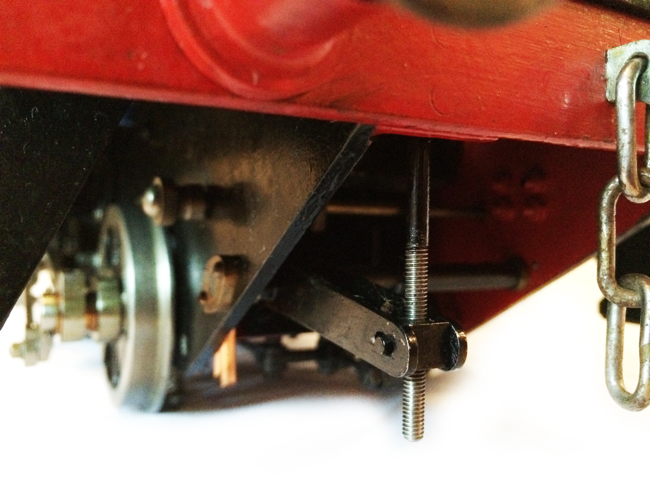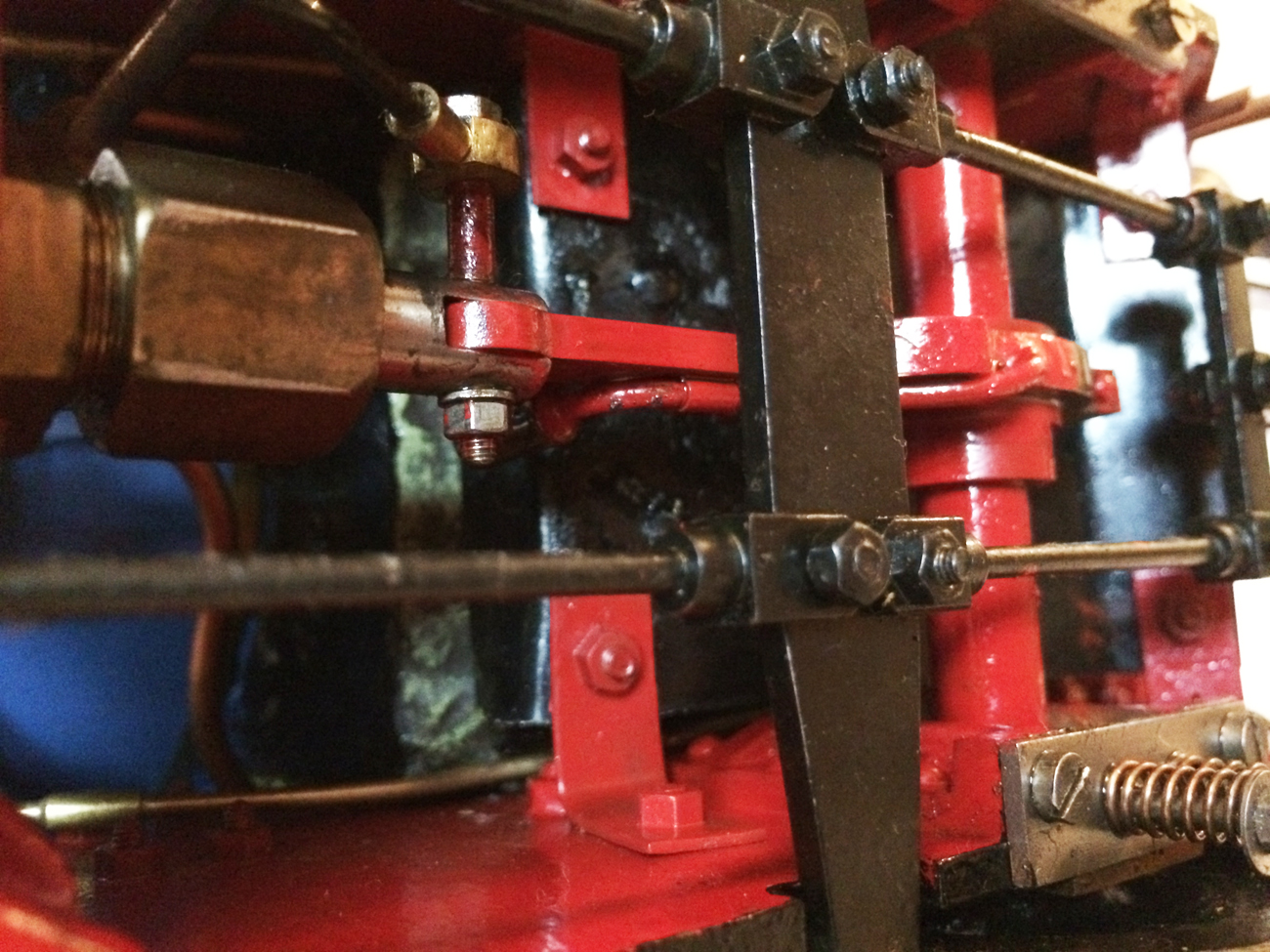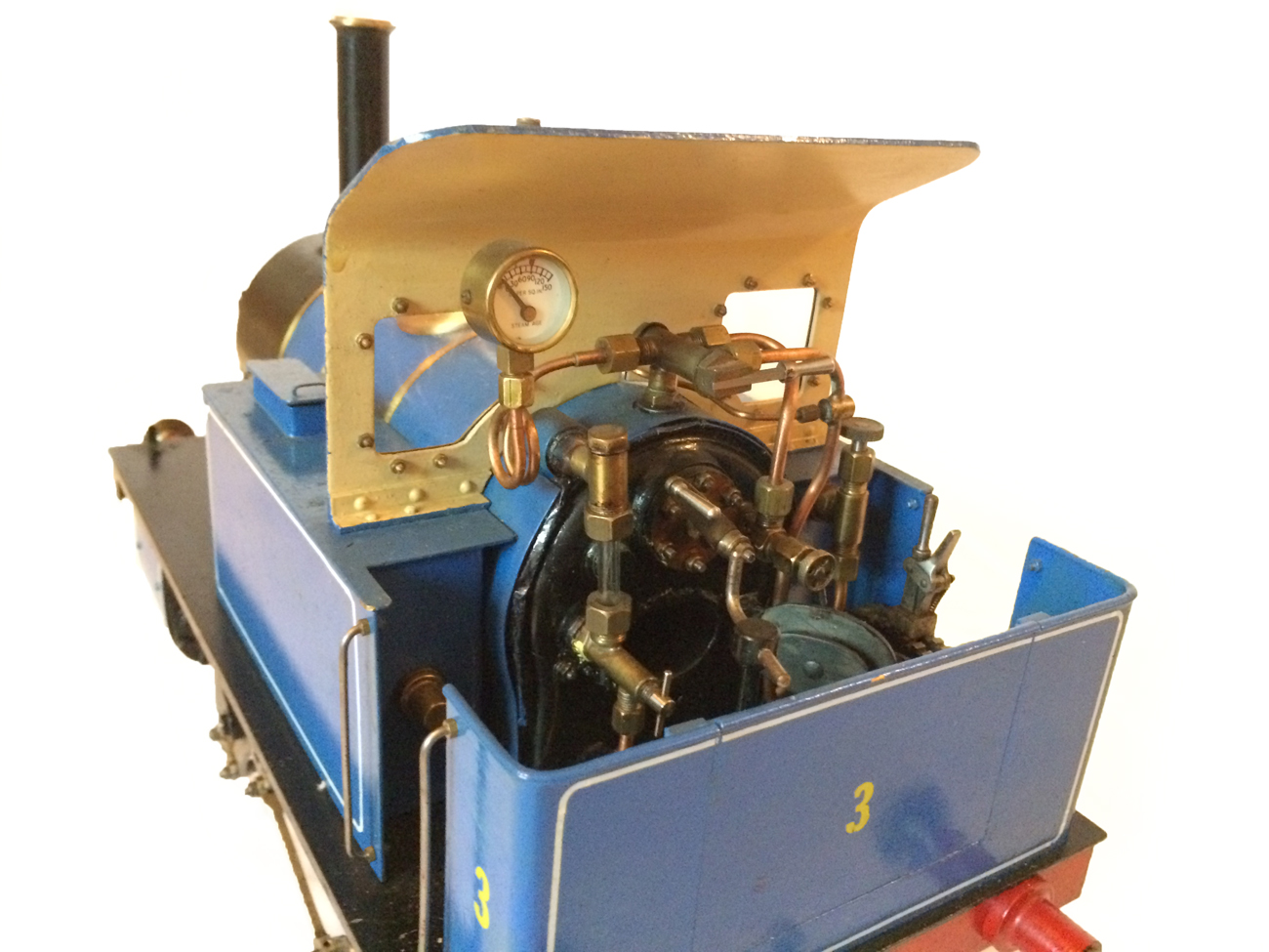 It's a really nicely built model, where the builder has taken his time to make a very neat crisp job. It has been sitting as a display model for some time since completion, and the paintwork has suffered a little, becoming slightly mottled. It runs really well on air, and has the usual axle pump boiler water feed, plus a hand pump in the left hand tank.