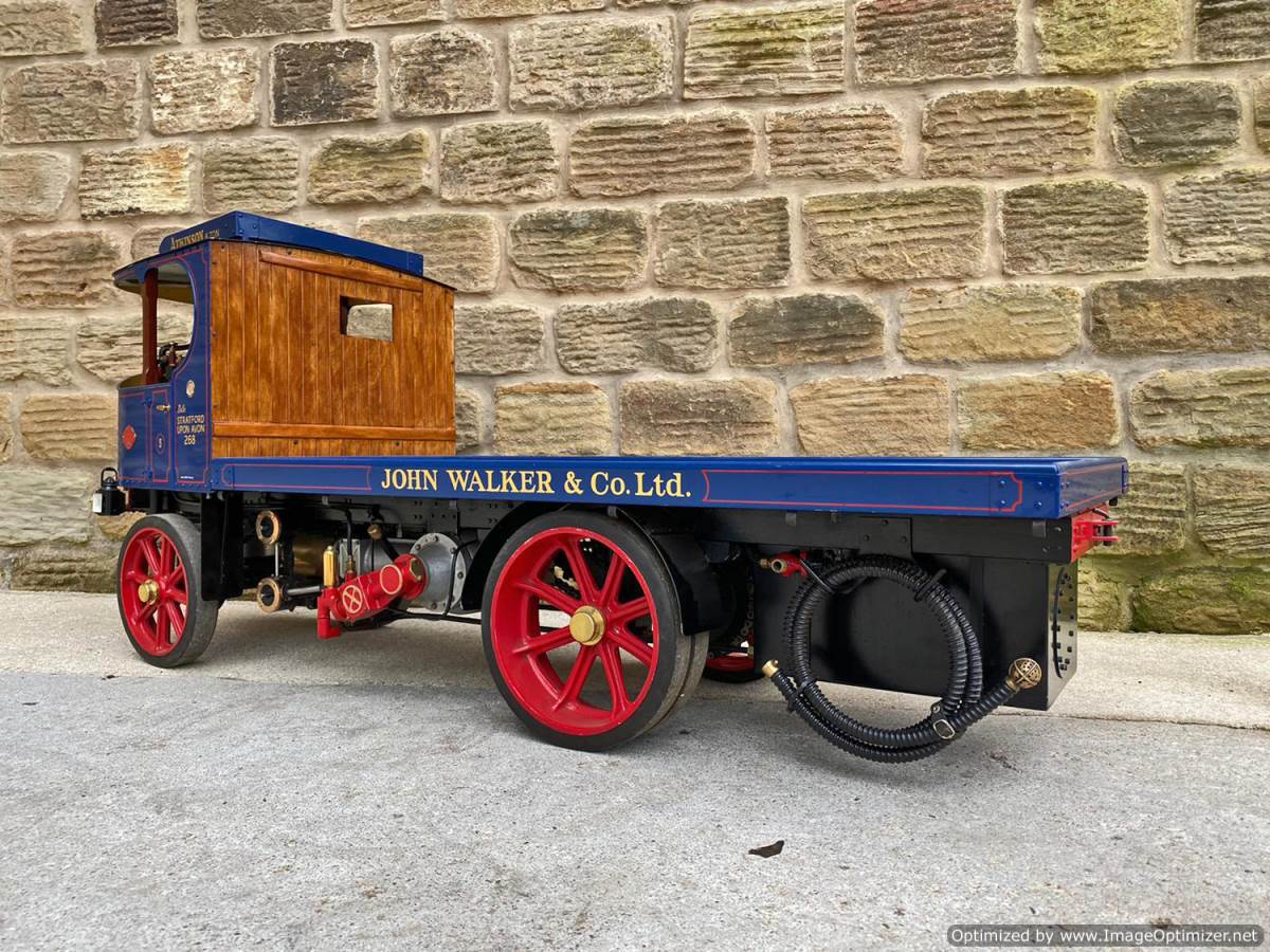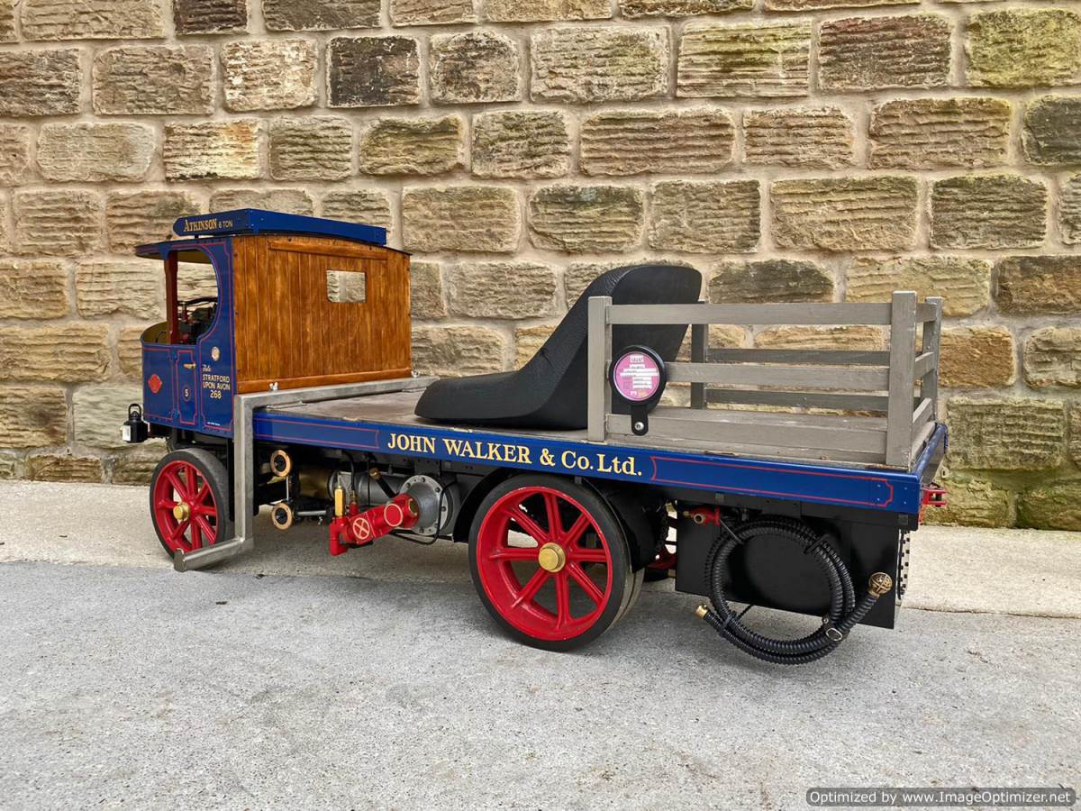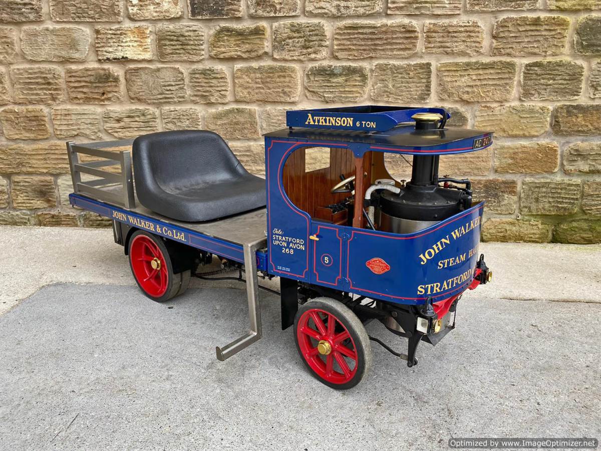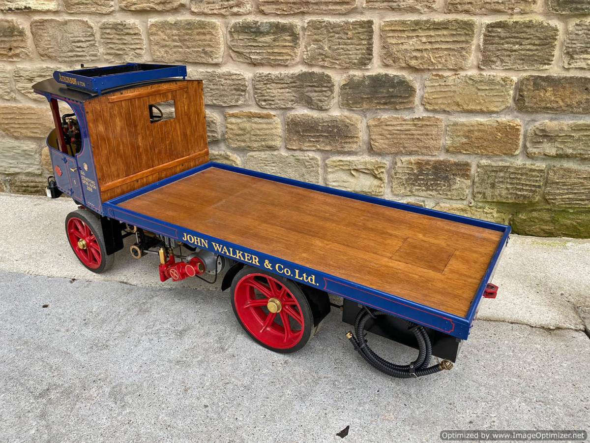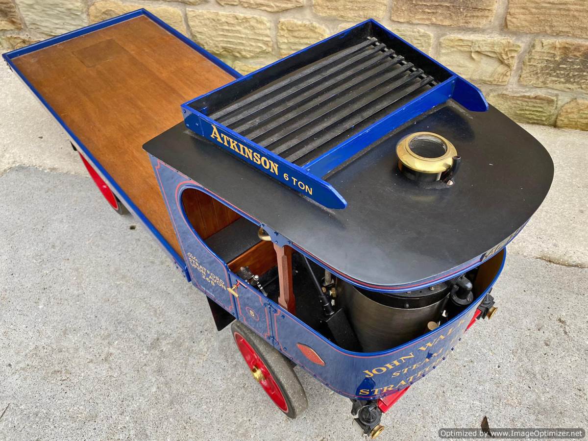 Here we have a particularly well made 3" Scale Atkinson steam lorry. Built clearly by a skilled and careful model engineer, the attention to detail, finish and model engineering finesse is all lovely and although it's been steamed and run the whole lorry feels very crisp and new. The boiler is silver soldered copper and comes with a complete history as well as fresh 4 year hydraulic test and a fresh annual steam test so it's ready to play.