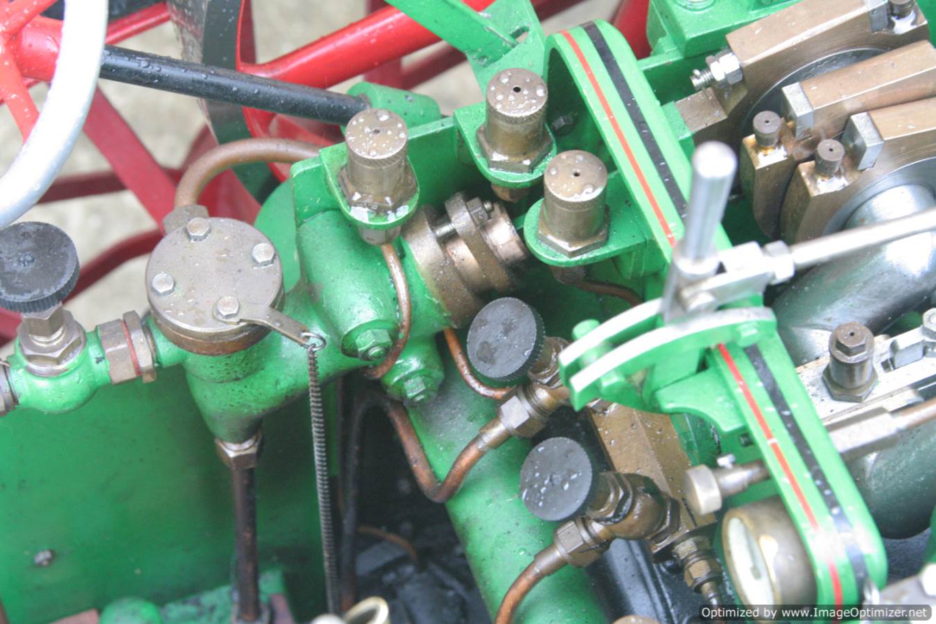 It has an injector, the usual crank shaft water pump, and there is a hand pump on the footplate. She also has a water lifter fitted which, more often the reserve of the bigger engines, is always a nice feature to find on a 3". The paint is neatly done, and in good condition, and particular attention has been given to ease of operation., She has easy to use oil pots all over the place, so although relatively un-used, this one is clearly made with a view to being run.