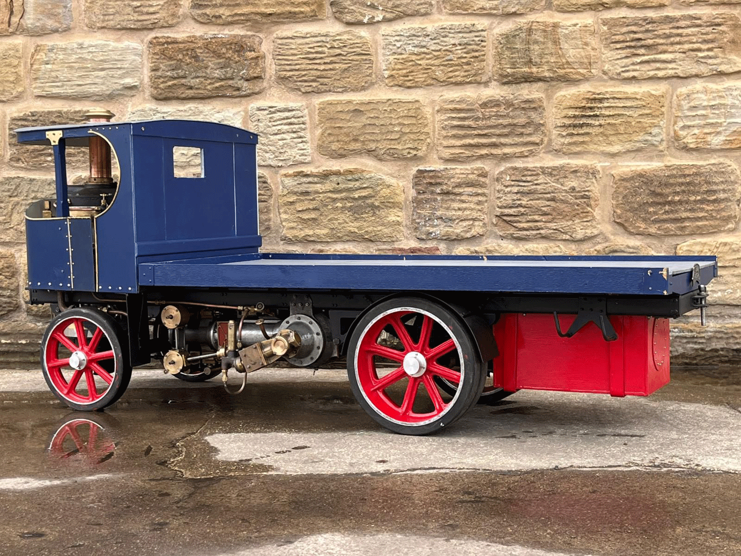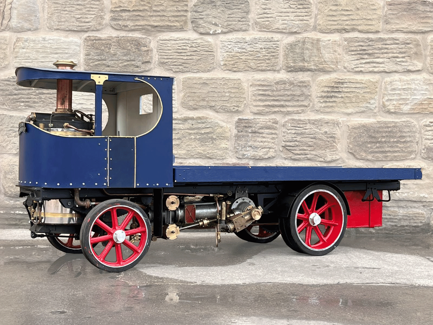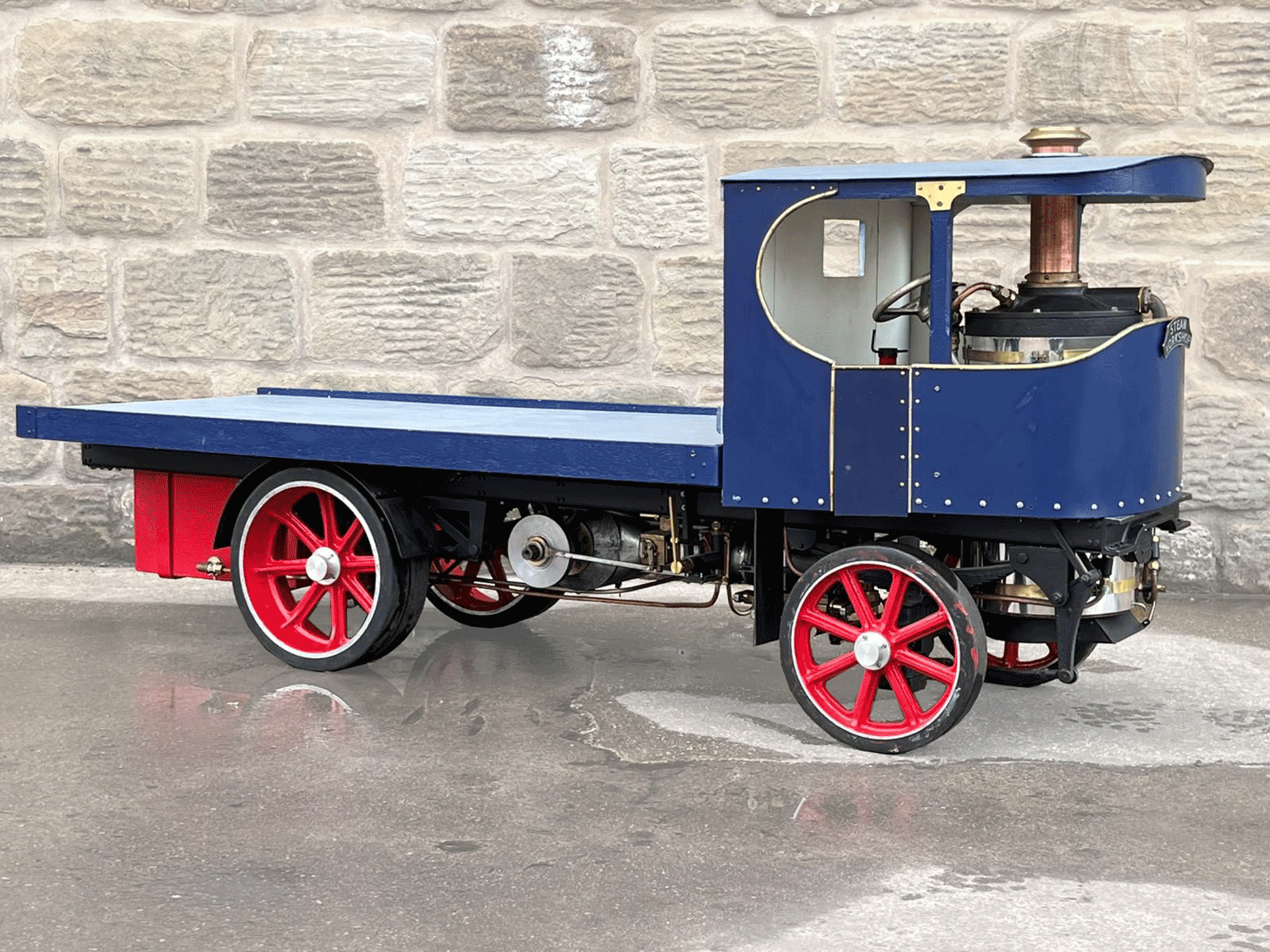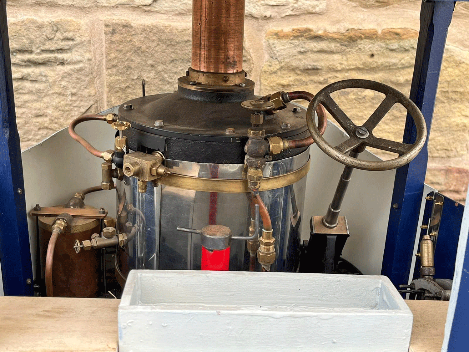 Here we have a 3" scale Atkinson Undertype. Virtually finished, but with a few finishing touches to complete before fully ready to run. The silver soldered copper boiler looks neatly made, and the general machining work and finish is competently and crisply done. The makings of a decent model that just needs someone to nudge it over the final hurdle.