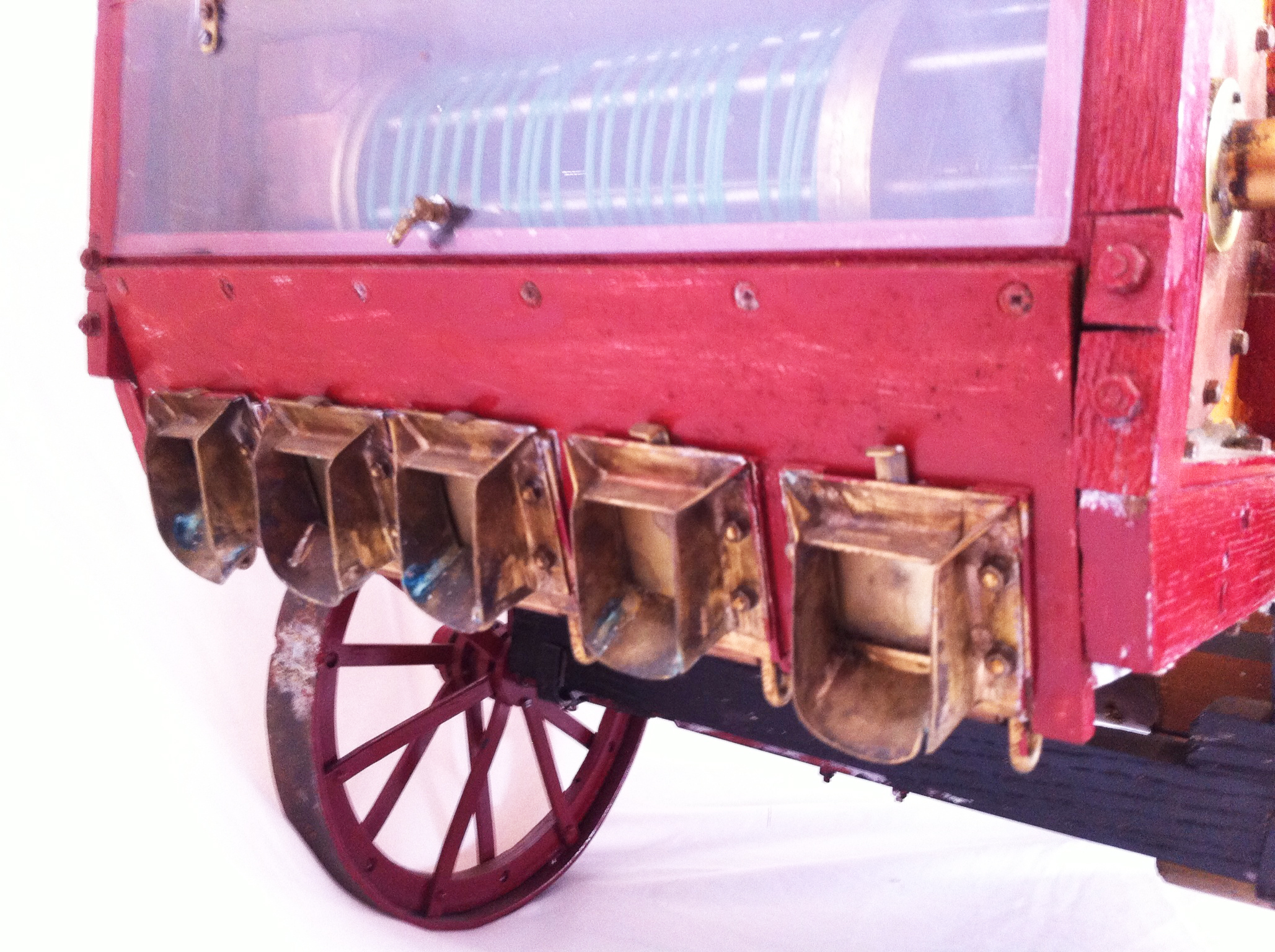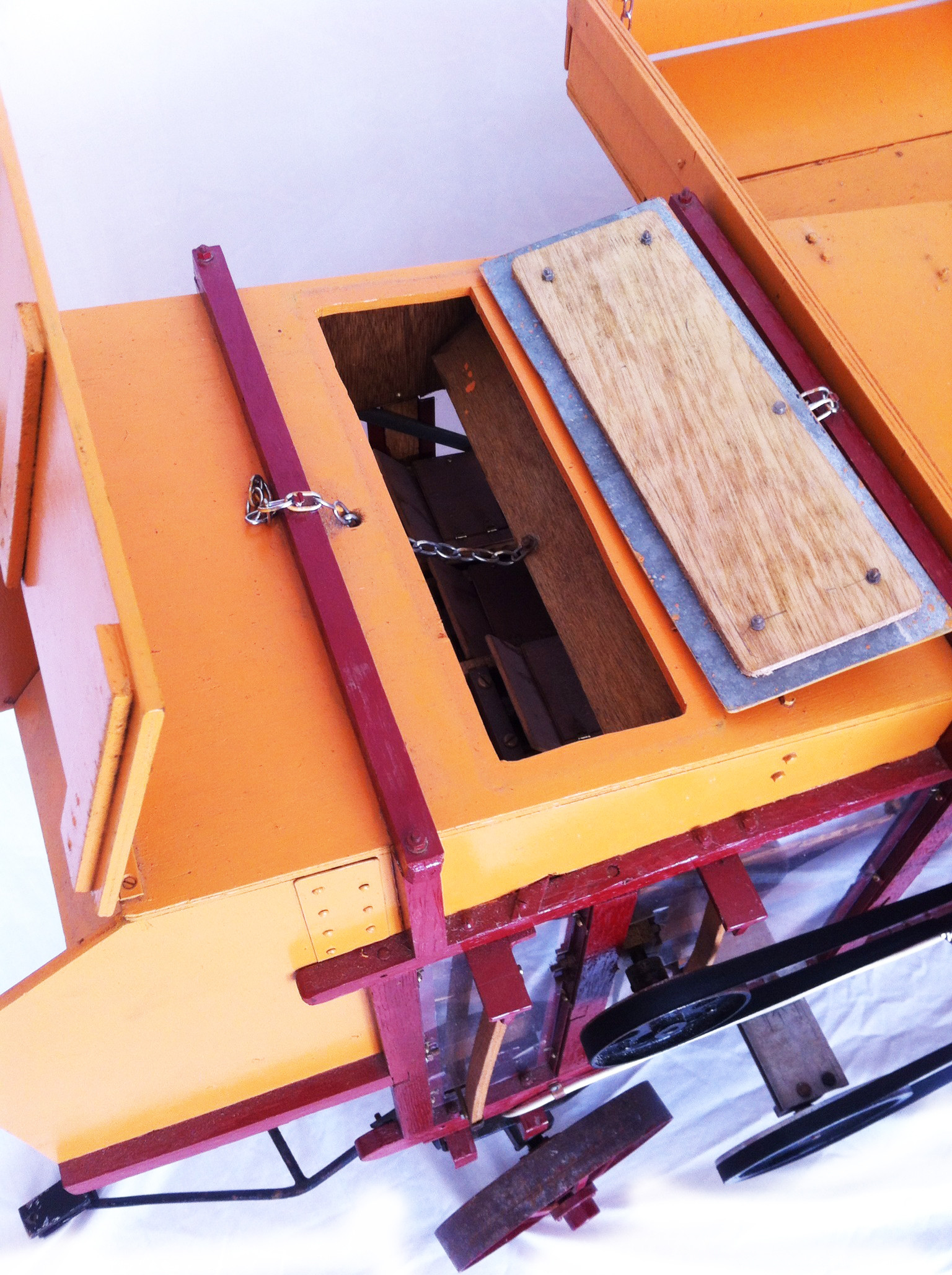 It's a fascinating machine. I've just spent a good hour turning the wheel and trying to understand what does what. It's a captivating thing to watch with pushers, shakers, fans, drums, flaps and shoots all over the place! Suddenly that 3" burrell ticking over on it's own whilst you have your sandwich seems somehow not enough!!