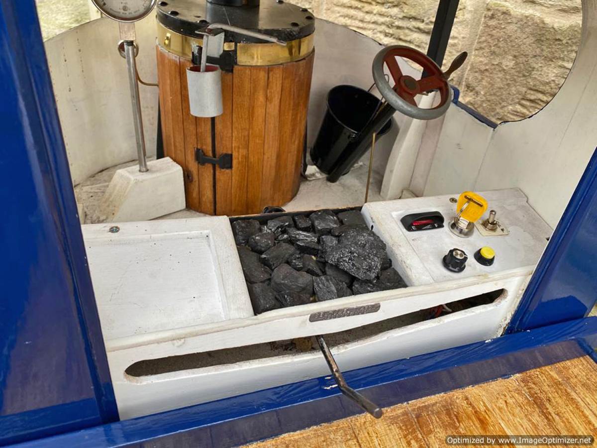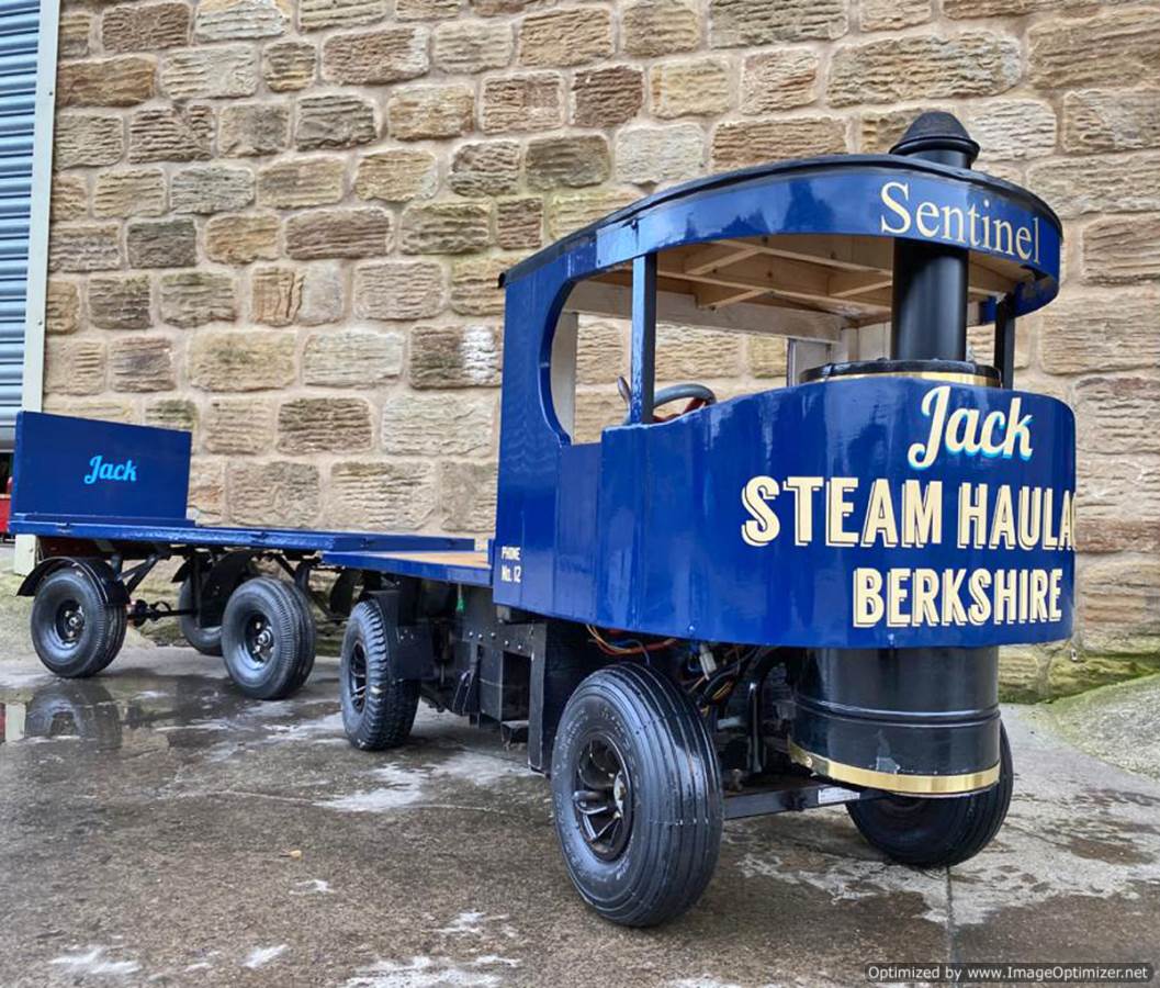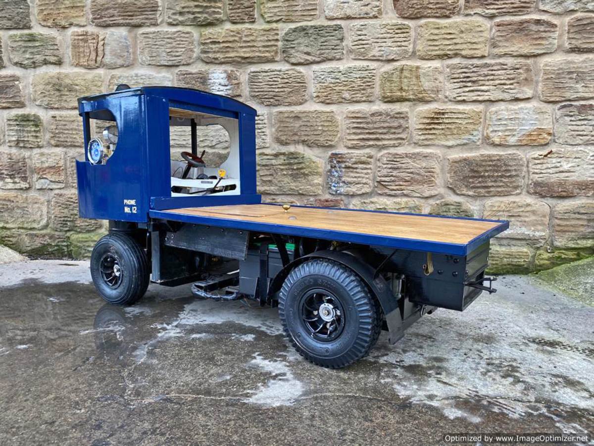 Here we have an unusual and very cool toy! A 3″ scale fully electric ‘Sentinel-esque’ steam lorry. Essentially it’s a mobility scooter in drag,…. and to that end there are a couple of batteries hidden underneath and a mobility scooter electric motor in the back driving the rear wheels. The front axle is ackerman steering actuated by a tiller rather than the steering wheel (which is a dummy), as is of course the boiler!