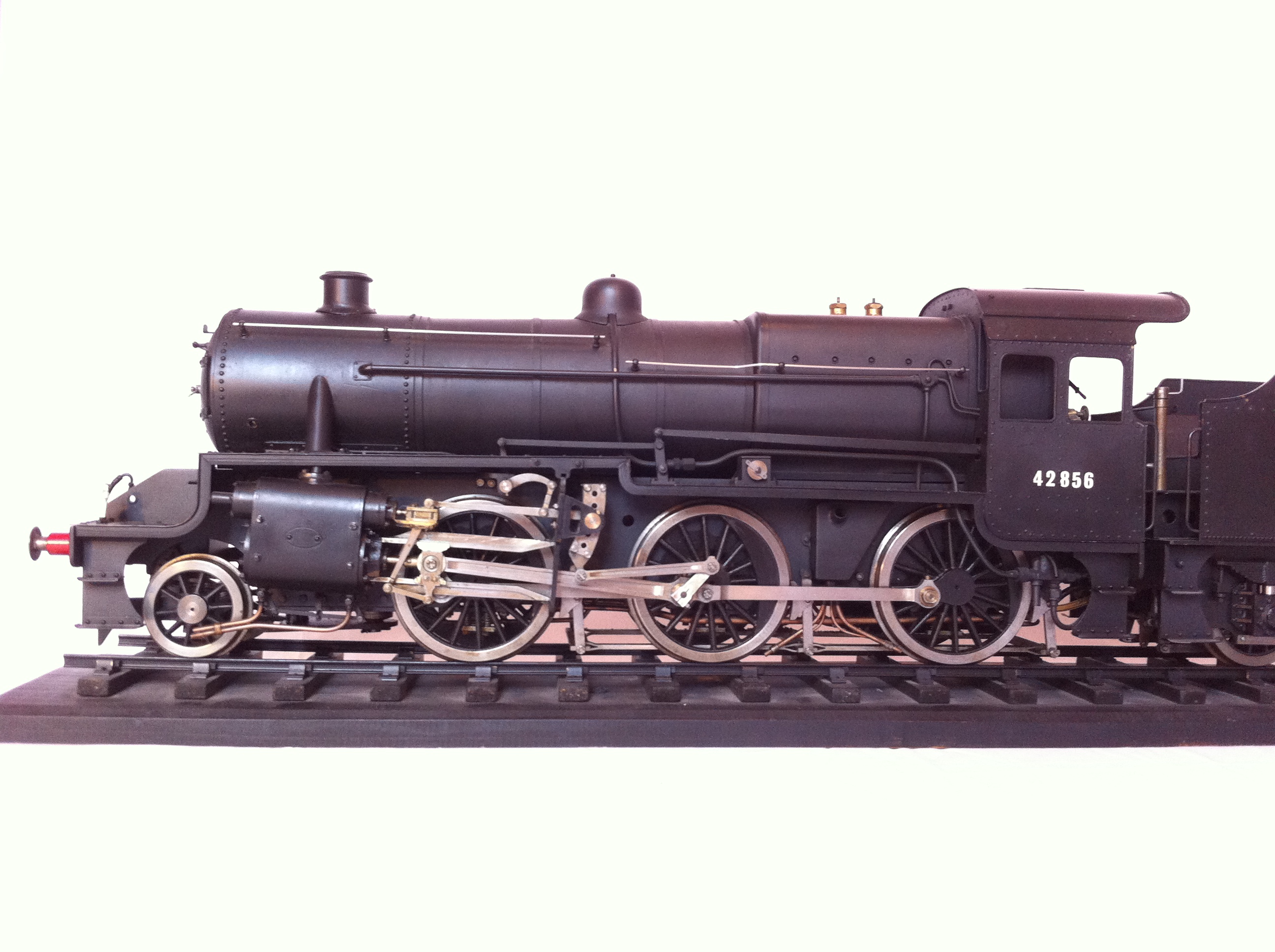 However,..... along with the 5 Crabs fitted with experimental Lentz rotary-poppet valvegear, number 2856, nearing the end of it's original boiler life, and having been involved in a hydraulic lock wheel spin that resulted in a cracked cylinder returned to Crewe works for rebuild and the decision was taken to trial and develope the new boiler and cylinder combination in the original Crab chassis. Sadly, no such thing actually happened in the real world,.... Stanier just went for it with the first 'new' Mogul 13245 emerging in 1933, controversial GWR top feed cover n all,..... but if he had indeed decided to rebuild an original crab as a test bed for his new boiler and cylinders, this model is a pretty good representation of that Hughes/Stanier love-child!