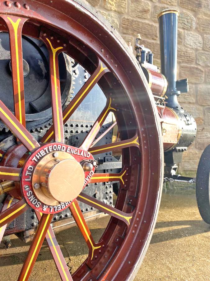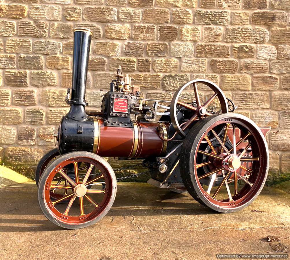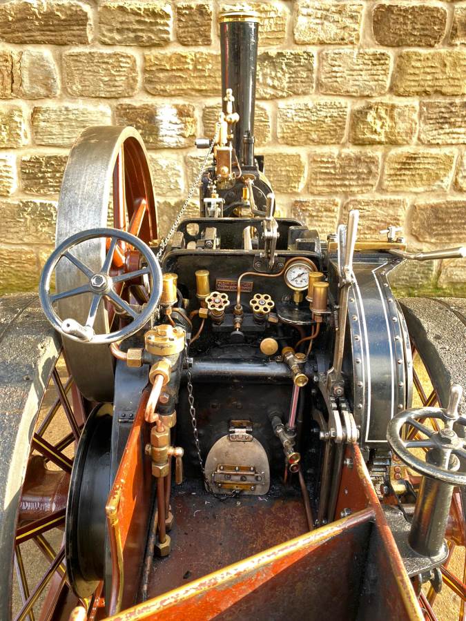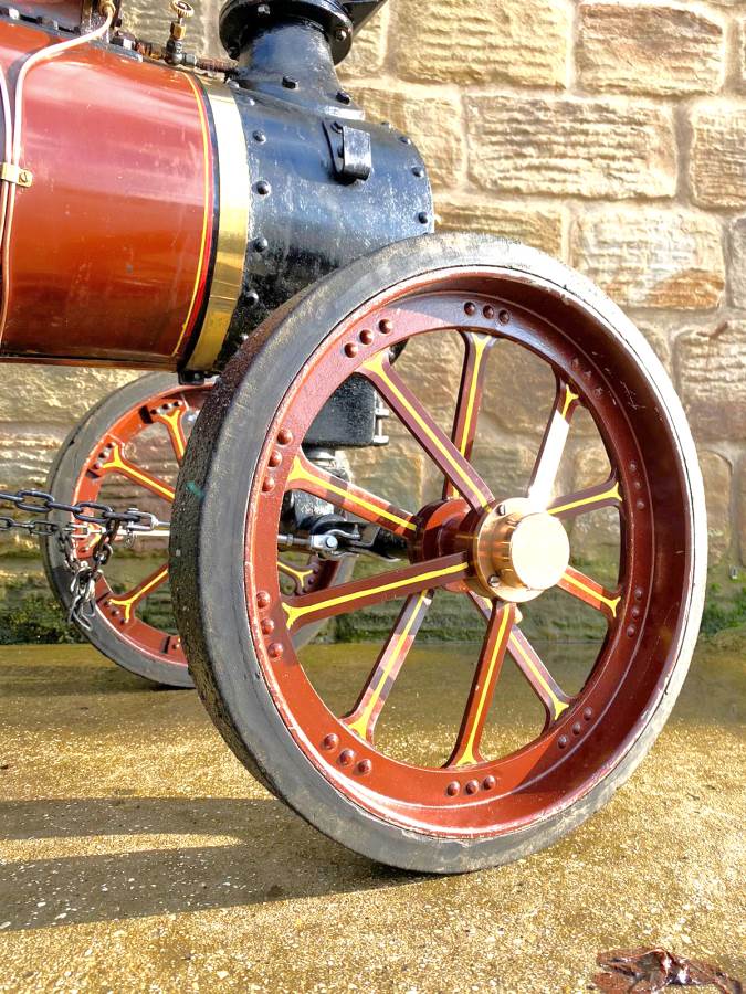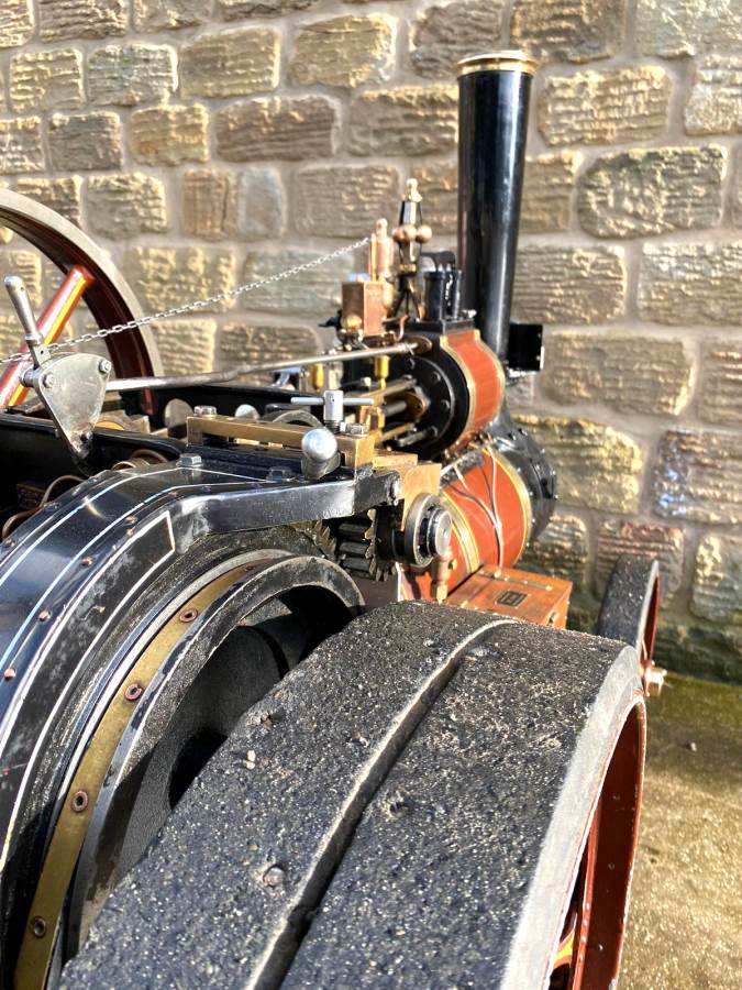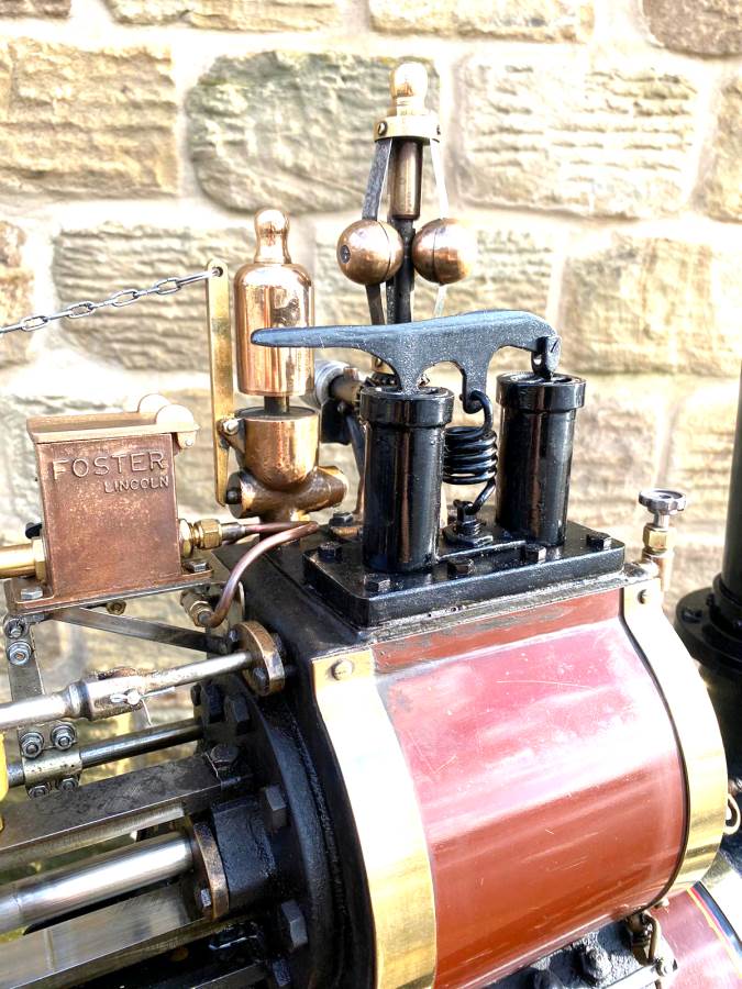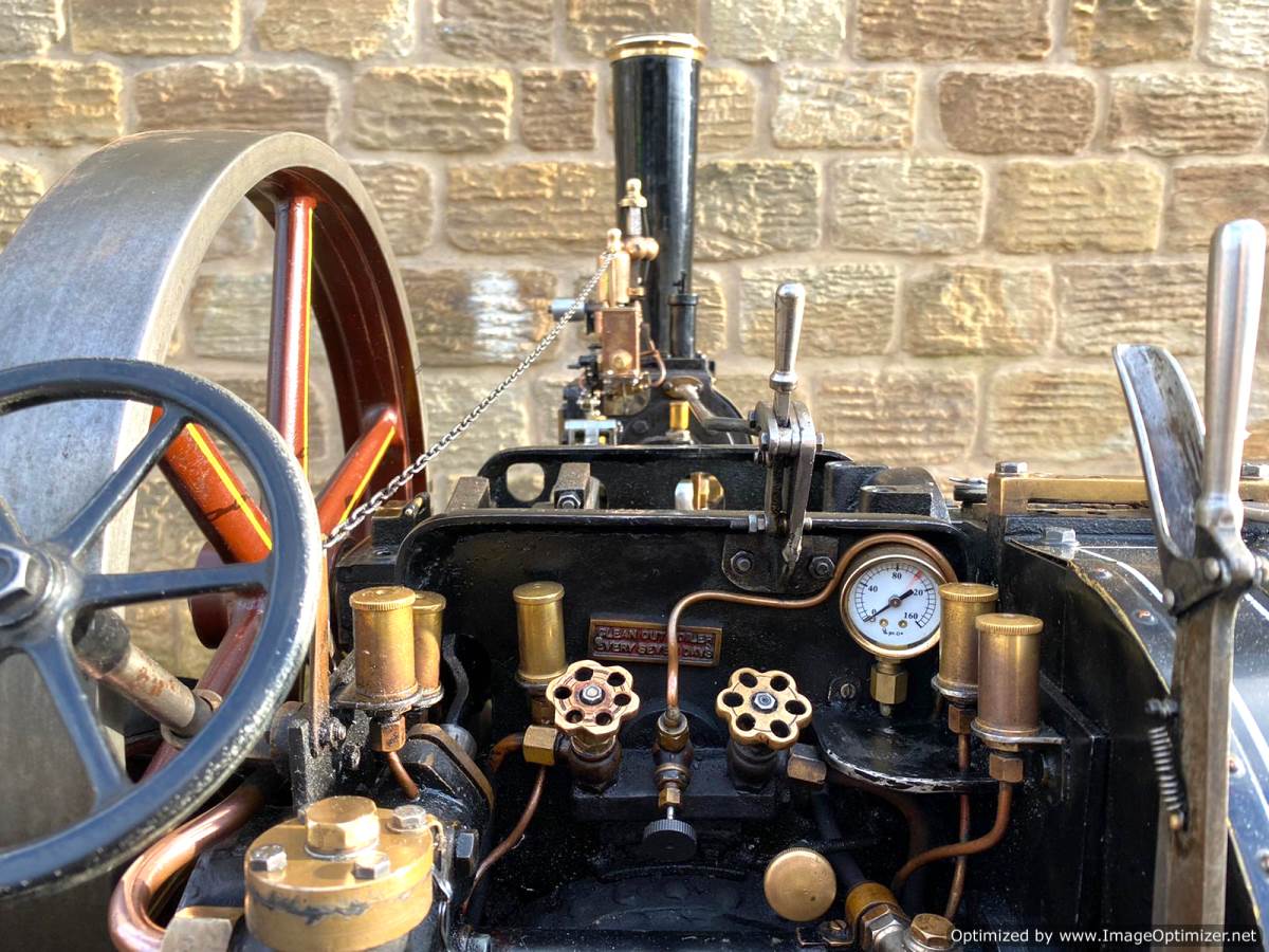The tires are bolted on, but no less secure for it, and although cosmetically she's a little chipped here and there, it's nothing too untoward and she still looks great. Hopefully the photos will give you the full picture. There's obviously an injector fitted as well as the usual crank driven water pump and bypass valve and lubrication is the usual foster mechanical up on top of the cylinder block. All in all a nice traction engine all ready to play.