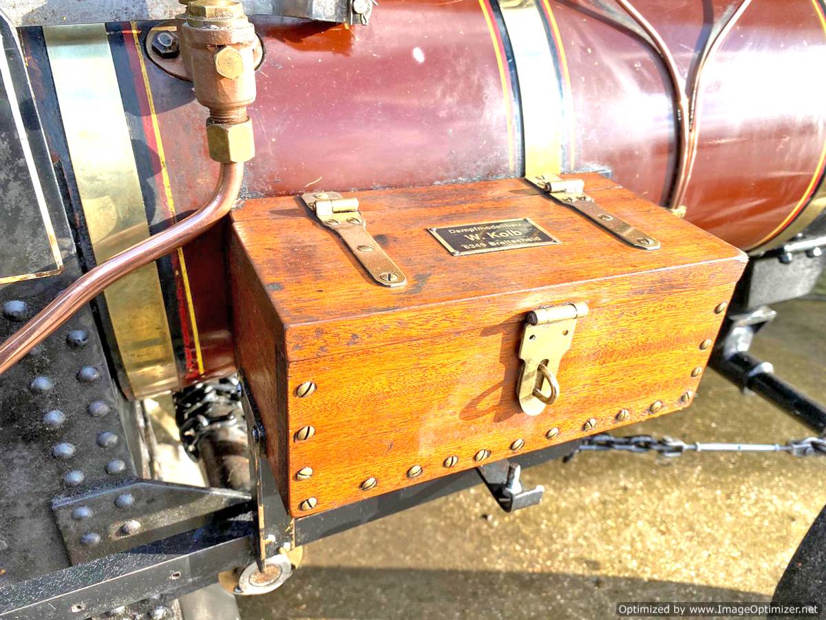 The engine has been regularly rallied but she's also been well looked after so the bushes are all still comfortably tight and slop is minimal. The safety valves are pop type with the top lever and spring being all dummies so that they work properly and shut when they should. (A set to the original design is available if you'd prefer those to be to the standard design instead.)