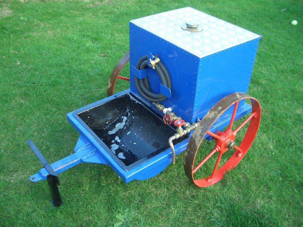 There are two riding seats. One is for riding with the detachable canopy fitted. This trailer seat has the benefit of castors fitted to the rear so it follows the engine backwards or forwards – reversing is easy! The other seat fits to the back of the tender with the canopy removed – favourite for road runs as the engine is road registered. So you have these two options. The water dandy will fit with either seat.