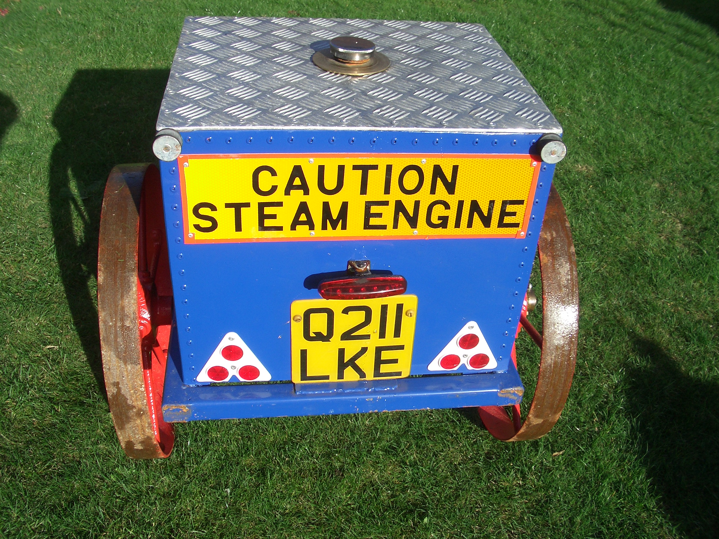Side motion plates fitted to complete the road locomotive look-a-like. It is fitted with a push bike speedo so you can keep a check distances covered on road runs and the total mileage for the year.