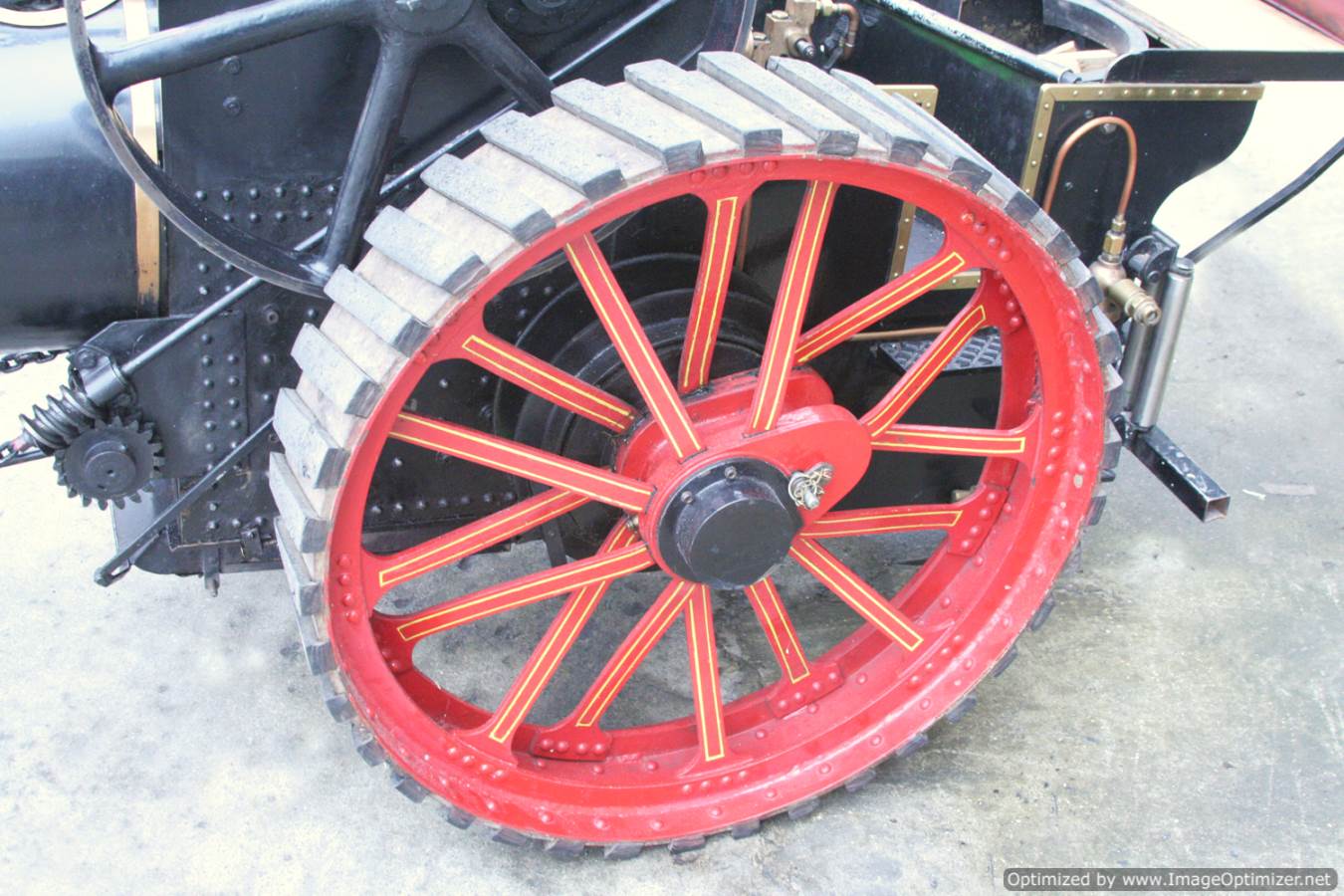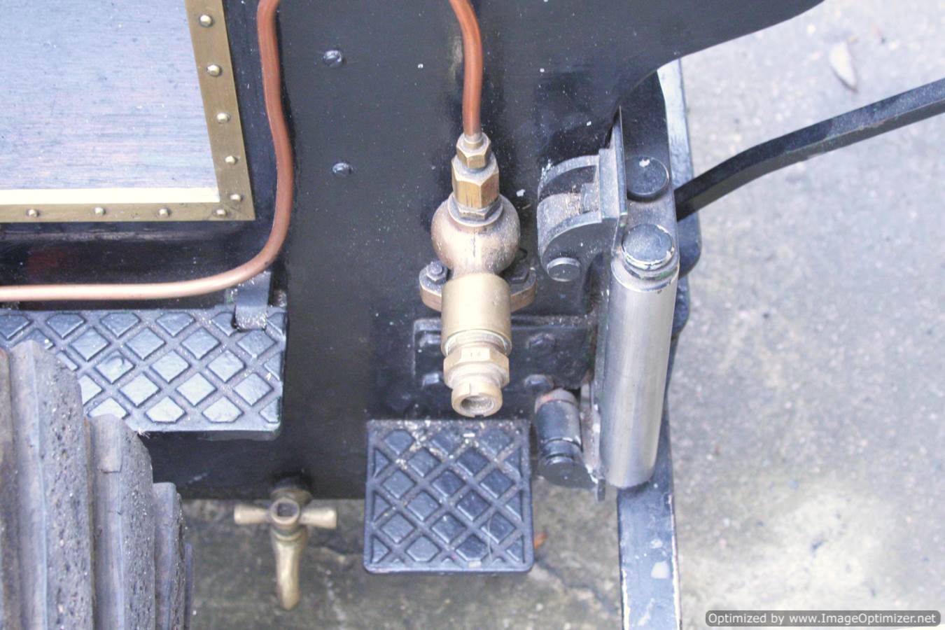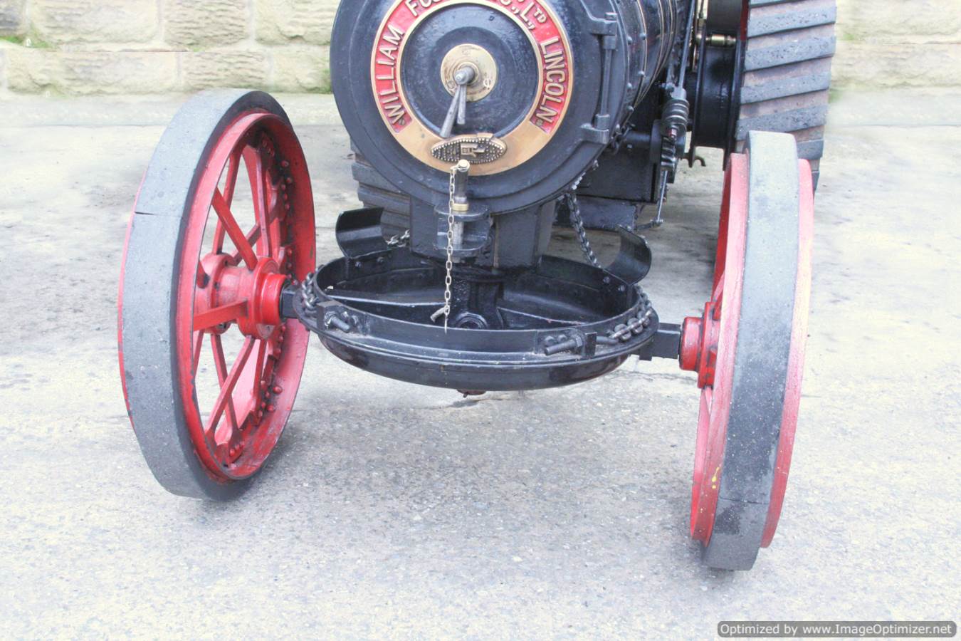 All the usual bits and bobs are there, crank pump and injector to get the water in, and a water lifter to fill up the tank. Mechanical lubricator on top of the cylinder and she's fitted with nicely done rubber strakes that enable to engine to retain it's agricultural feel, whilst being comfy to use in anger on the road. This isn't a 'new' engine, so expect tidy rather than immaculate in terms of the paint finish.