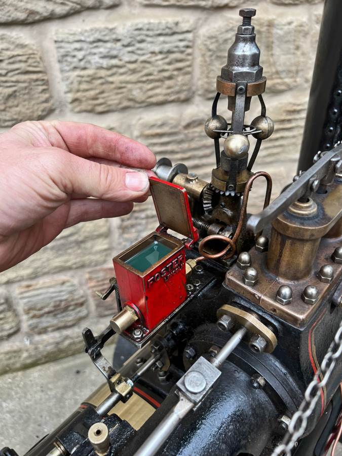 Mechanically she's in excellent condition, with good compression and no knocks. Lubrication is the usual Foster mechanical on the back of the cylinder block. The injector and the crank pump both work well as does the water lifter. You might notice the rear clack has been swapped out for a more generic simplified clack. The original shut off clack box is with the model and we can of course re-fit that for you if you'd prefer the two clacks to match.