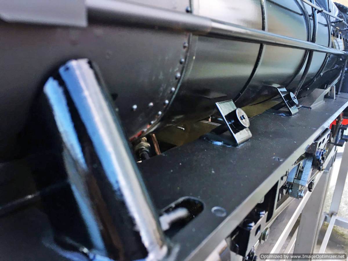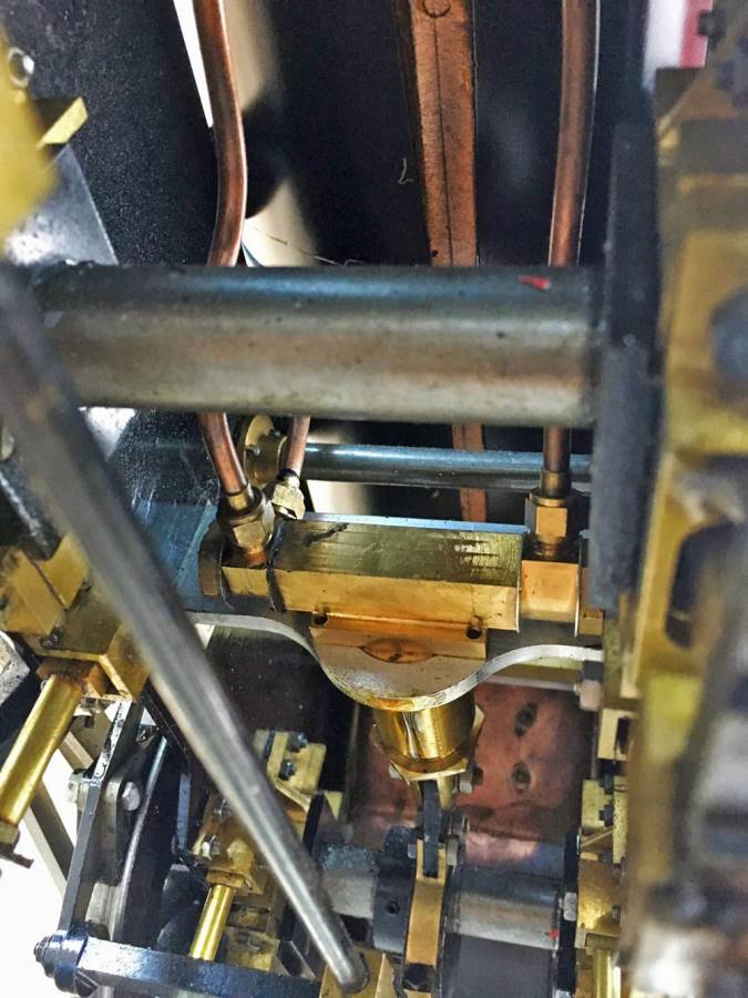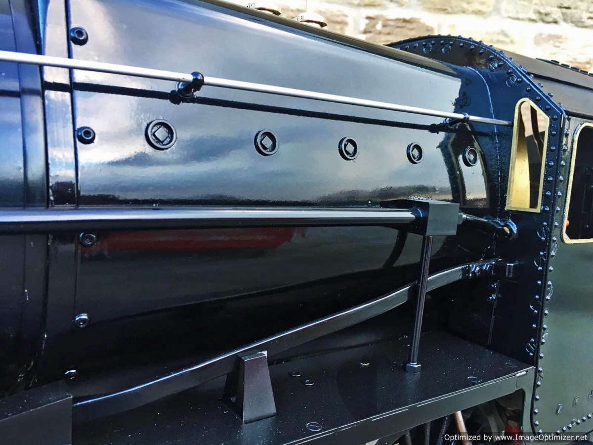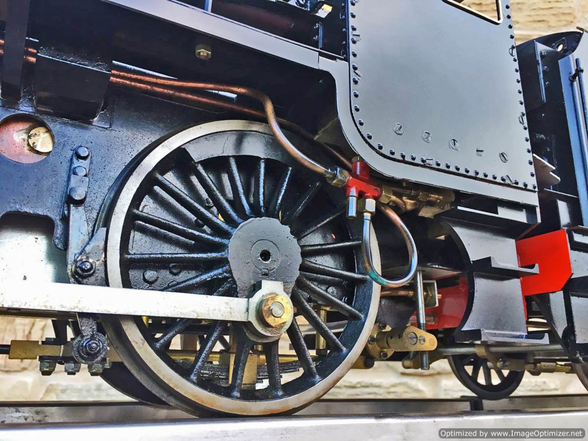 This one has been assembled from a Modelworks kit,... carefully and competently, and indeed the loco runs nicely on air. The paint finish is pretty good, and mechanically there are a few little signs that some if not all of the model engineering work necessary to make a Modelworks kit built locomotive work well has already been done on this one.