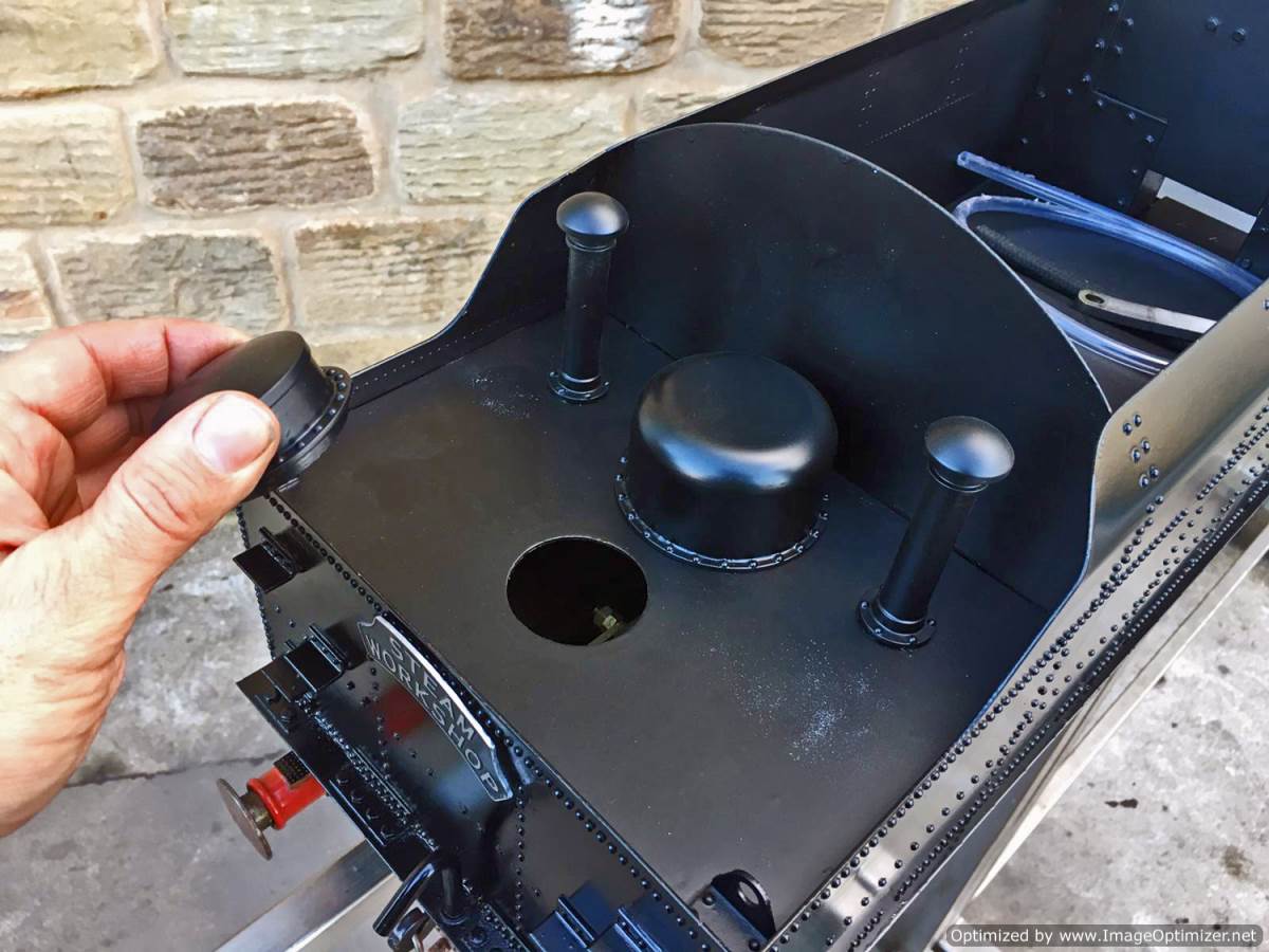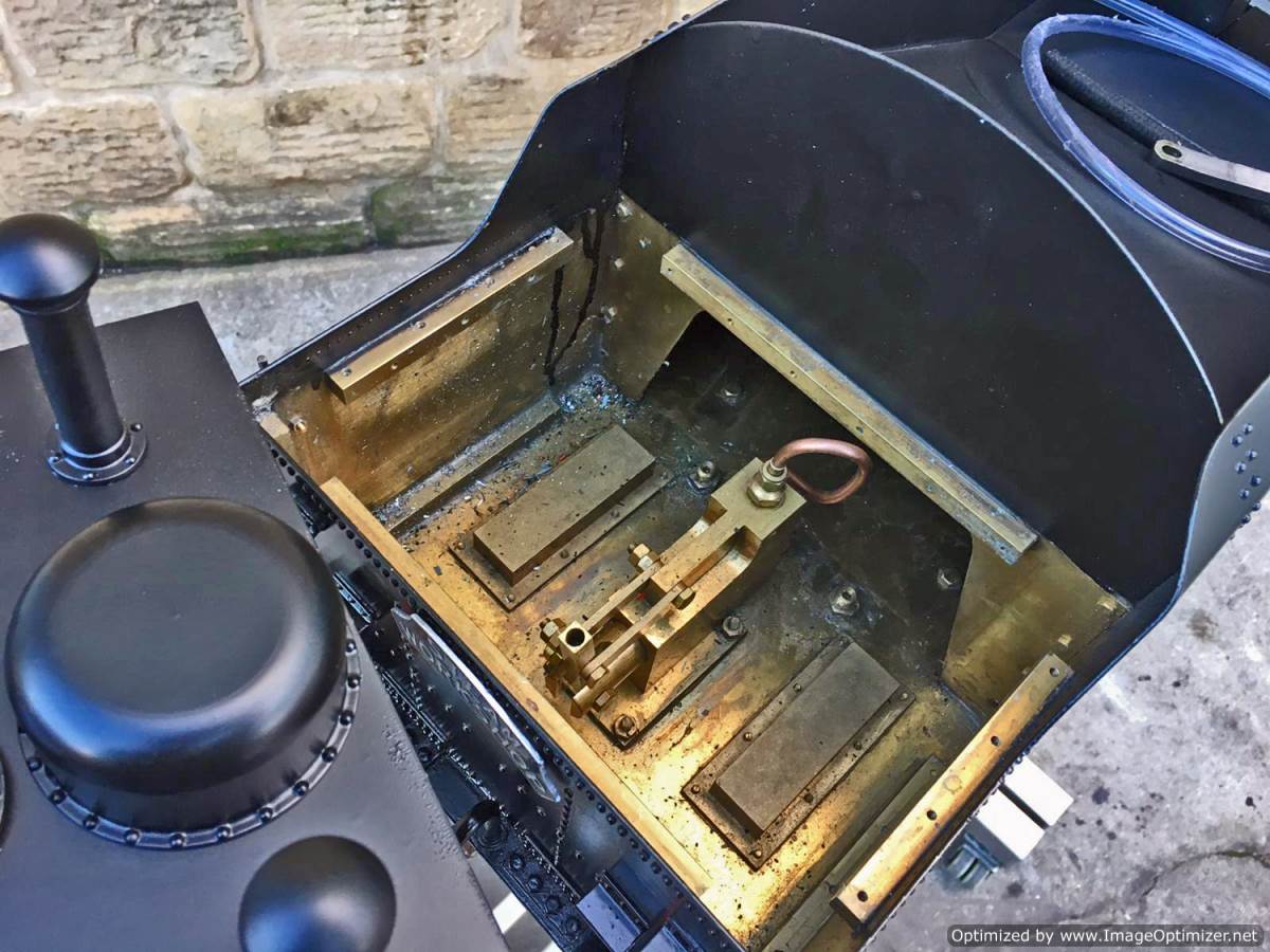 The boiler is a brand new, professionally made silver soldered copper one. There is a hand pump in the tender for water, as well as an injector fitted, and an axle pump between the frames with footplate mounted bypass valve. Lubrication is mechanical and on the running board. We are sorely tempted to fully commission this our ourselves and have a play before we sell it on, in which case it would be worth a decent chunk more, but as we are really busy in the works at the moment with other projects we thought we'd give you the chance to get this one as she stands a little cheaper. You may get lucky here and find out that she just works straight out of the box, (certainly someone with model engineering know how has been involved in the build), but there may also be a few of the usual Modelworks 'snagging' issues to sort out before you're happily flying around your chosen track. Do you feel lucky,.......? 🙂