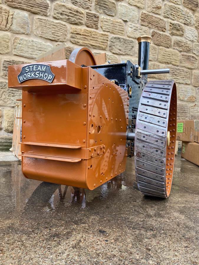 Here we have a complete kit for a 4" Ruston Proctor traction engine.  The kit was originally supplied by Winson and then Modelworks, and as you can see she's well on the way, and we are reliably informed by the previous owner that she has already undergone several modifications to improve the basic kit and make things work well.  Stripped for painting, which as you can see is well under way, although the wheels and bunker are just assembled for the purposes of the photographs so that you don't have to imagine too hard to know what she will look like.