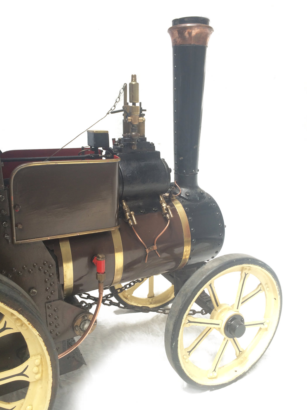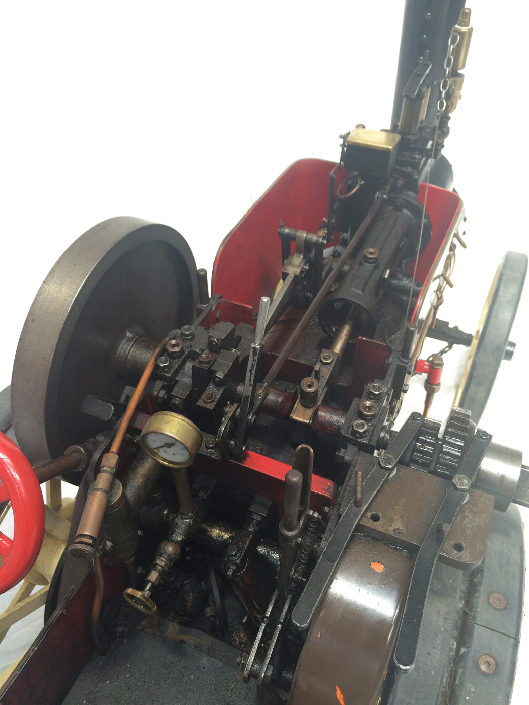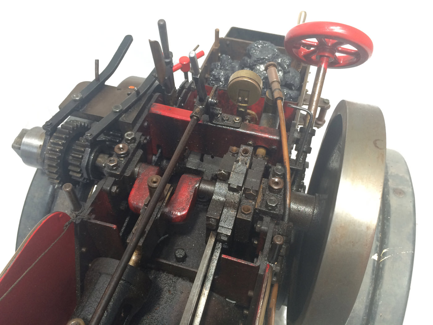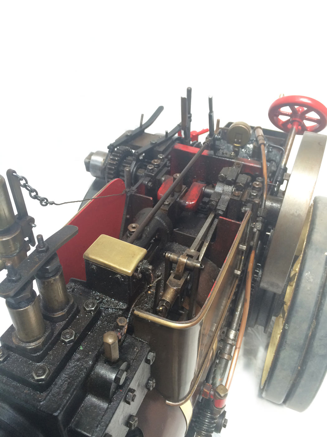 This one is in all round good mechanical condition. It's been a used engine, and as such isn't in what you might call 'exhibition' condition (!), but that said, it's certainly tidy enough and detailed enough to look the part. The boiler is steel, and it can come with a normal 2 year Northern fed hydraulic and a full annual steam cert ready to play. There is the usual crank shaft water pump with footplate mounted bypass pump and an injector. Lubrication is the normal mechanical job on the top.