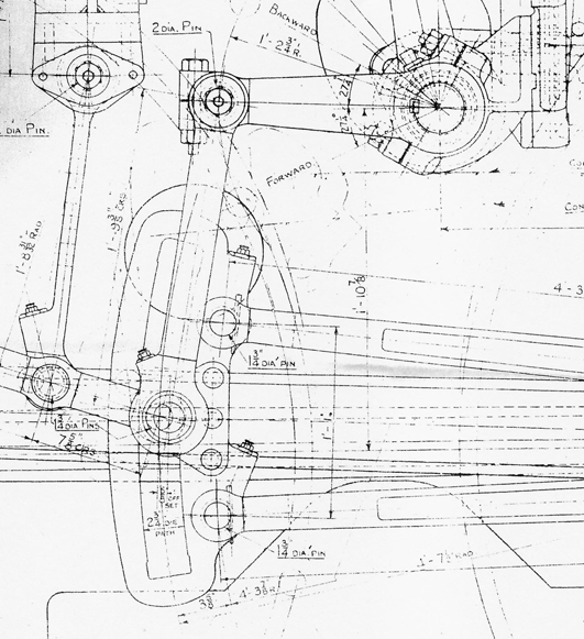 These figures are well within those of the official table and could even be improved to take account of the piston rod in the rear cylinder half. They prove out the efficacy of providing the correct suspension offset in combination with the more symmetrical lifting link excursions. The reduced reverser angle supplies full gear without yielding to large swings.