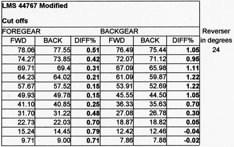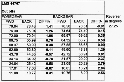 he cut off table follows the results expected from the graph and the release figures are also good, though the release at 25% cut off does not better Willie Pearce’s (GWR) 65% penchant of the early 1930s. By 1947 we could have expected this to be much nearer 70%. The preadmission is a worry as this does not feature in the official table in order to draw one’s attention to the large amount, except perhaps through the expansion columns. It is certainly enough to cause problems in a model. By comparison, the Walschaerts’ gear of the regular Class 5s produced considerably less preadmission at 25% cut off, where the release approached some 69%. With regard to performance this may well be splitting hairs, and we are more concerned here with the excellent potential of Stephenson’s gear and the minutiae of the design that can achieve the optimum results.