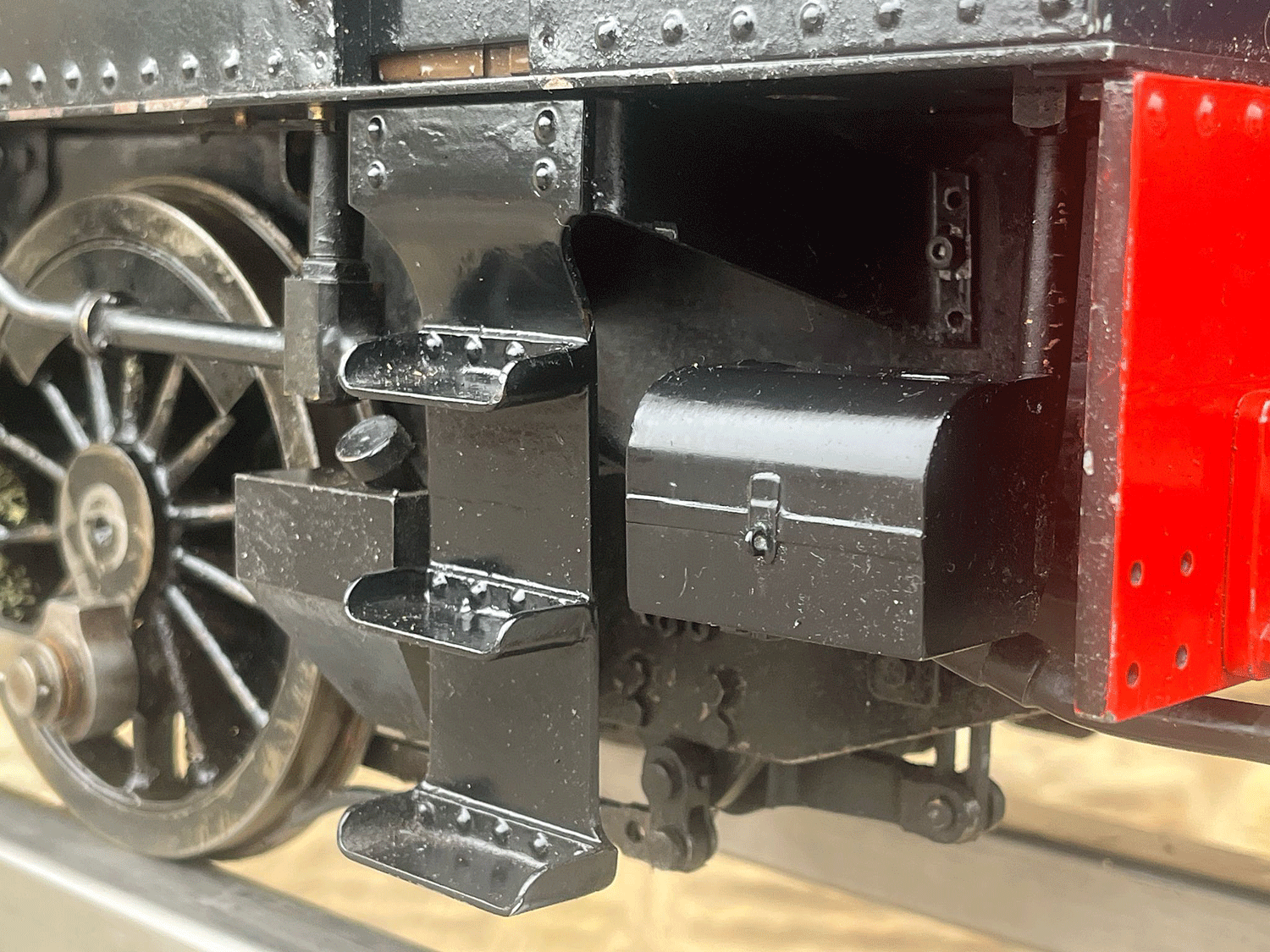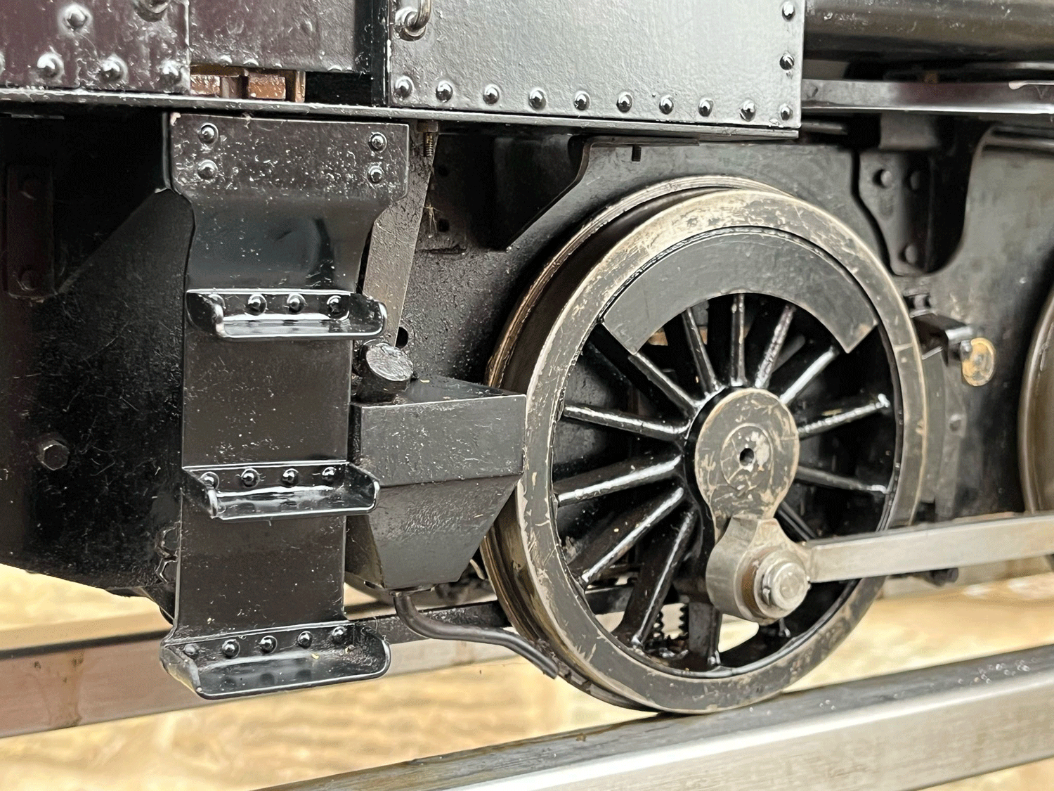 Lubrication is mechanical, and there is an injector fitted for water, as well as an axle pump with footplate mounted bypass. There's an auxiliary water tank hidden in the bunker, and even a steam brake. A nice, solid loco that is sorted and ready to play.