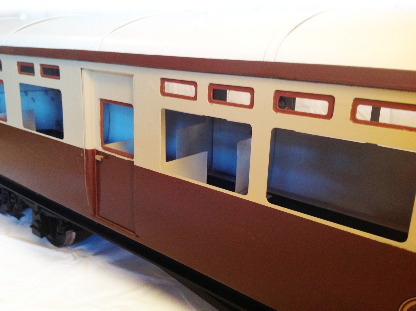 It's essentially complete, and has had a few little detail bits added, a start being also made on cab controls. It's been finished as a single ended autocoach, one end having been paneled off. The pics will show you the rest!