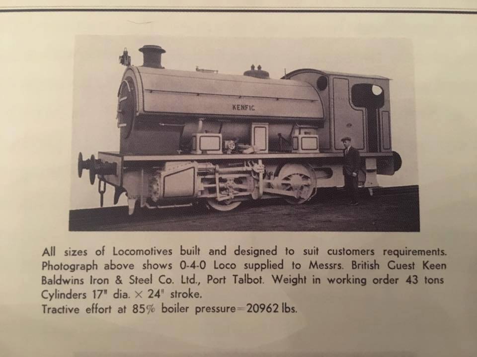 The full size prototype was a massively chunky and powerful 0-4-0 saddle tank, with outside Walschearts valve gear, huge cylinders and slide valves. The first one built was named 'Kenfig', the rest of the class being named after the first. Most were in fact built to the same general design, but with inside Stevenson's valve gear as was more common for industrial tank engines.