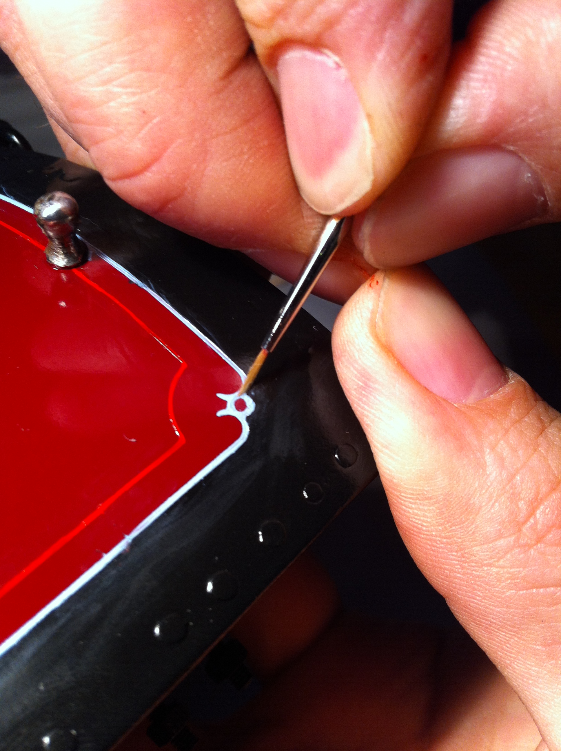 Having said that, we were keen to push on with the locomotives restoration, and as we were ready to paint and line the components, we took our inspiration from ornate and unusual the Barclay & Co makers plate. We thought it gave a sufficiently 'Victorian' look and was fiddly enough to make it interesting!