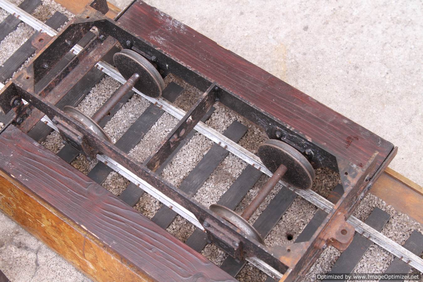 Here we have a slightly shabby but non the less serviceable 5" gauge Ride on Railways driving truck. This is the in-braked version, and although cosmetically a little tired, it is still perfectly free rolling and serviceable. A tickle with a wire brush and a spot of paint and it'll be as good as new.