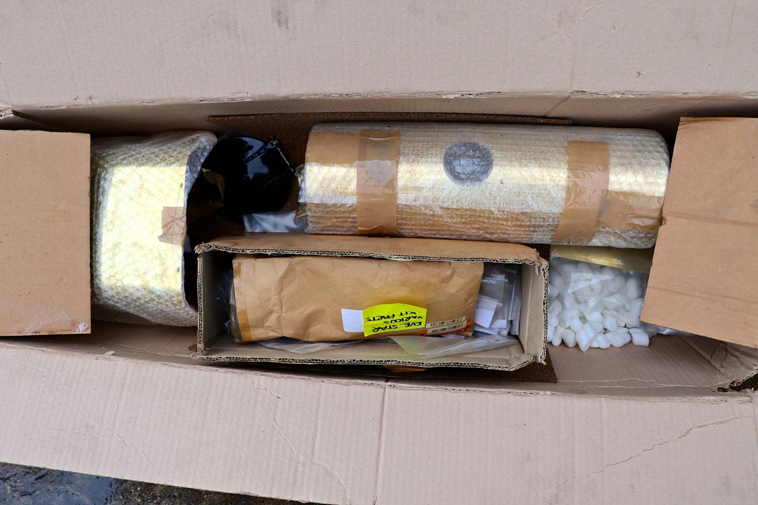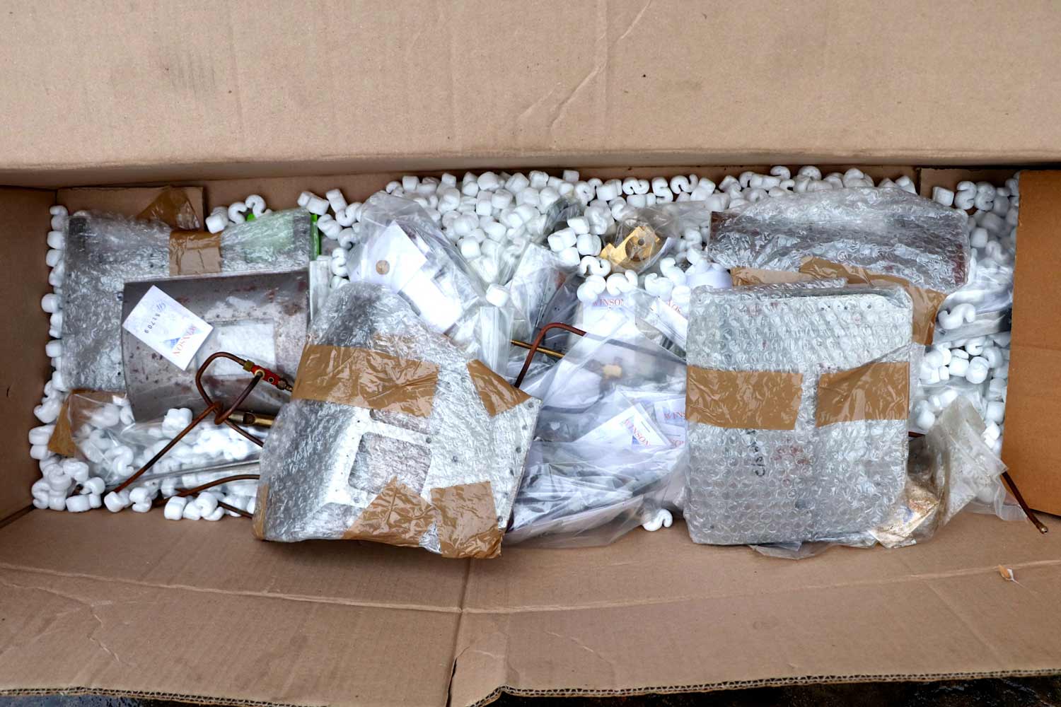 The bulk of the model has been assembled, and some time ago by the looks of things. Although doused in WD40 to protect the surfaces they show a very light amount of surface rust. It is superficial and will rub off with a decent bit of wire wool. The remaining couple of boxes appear to contain pretty much everything that's missing from the assembly. Whilst we can’t really spend the time checking that every last component is there, the previous owner has kindly done so, and missing at the moment is simply a few basic gaskets and bits and bobs that you would almost certainly be wishing to replace with more substantial items anyway. Certainly the vast majority and all the significant components are all present and correct!