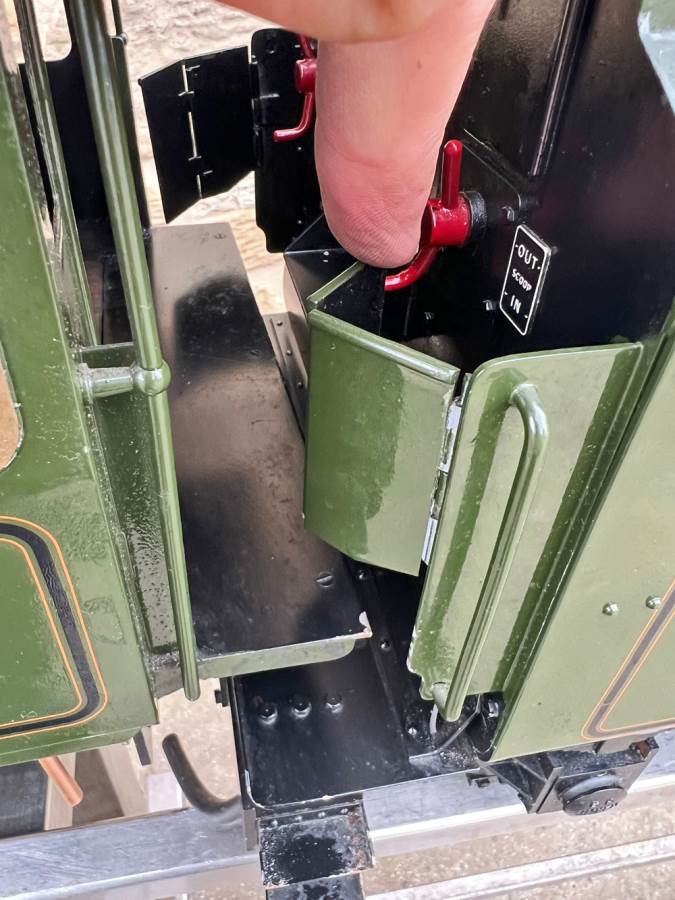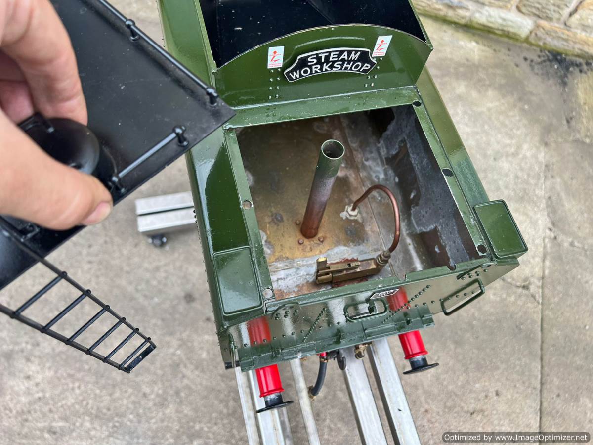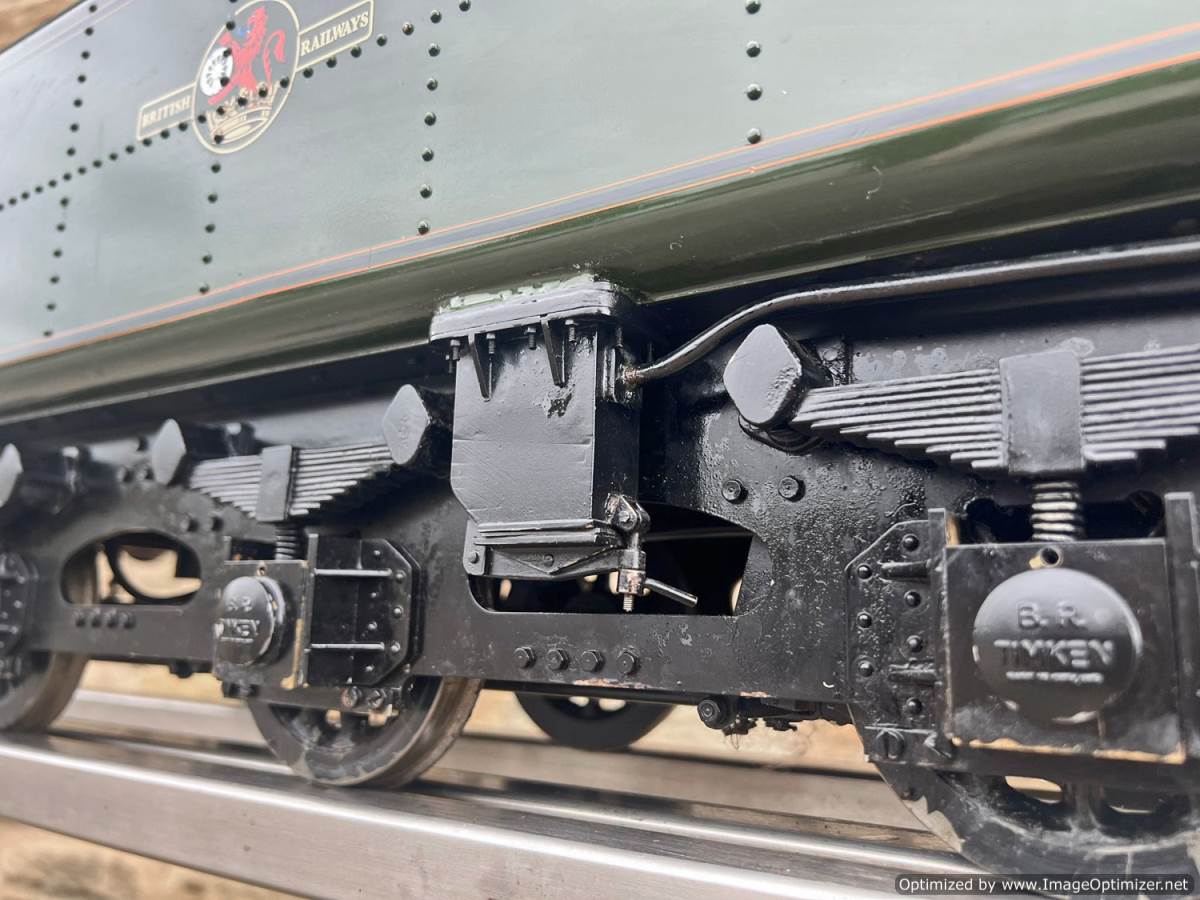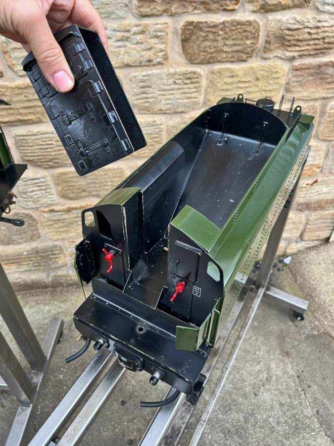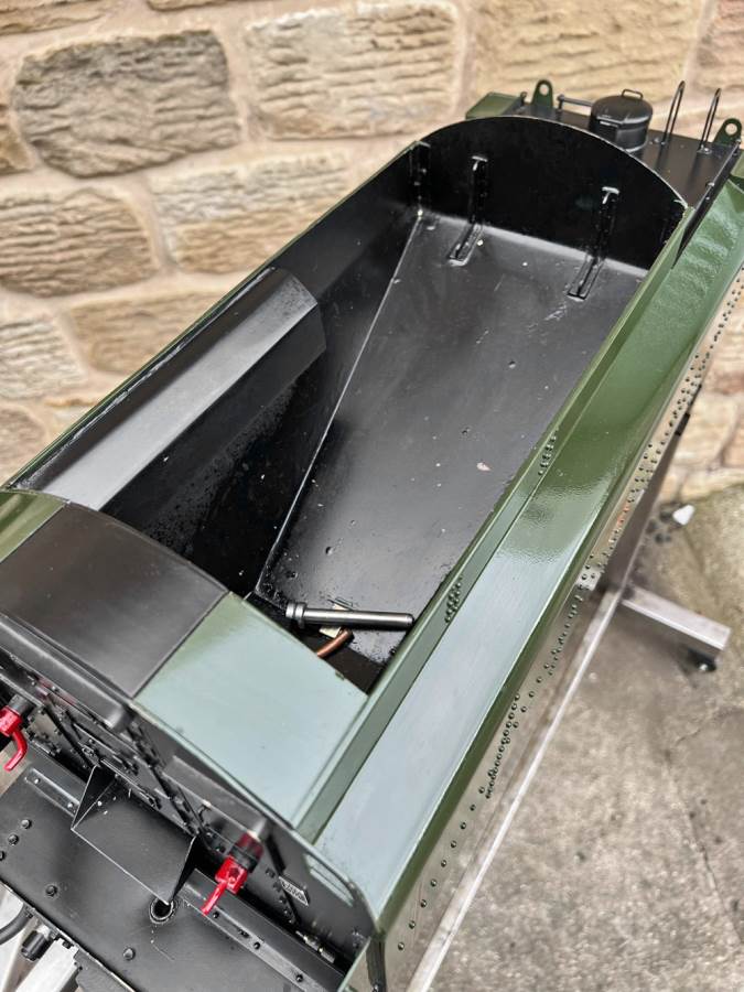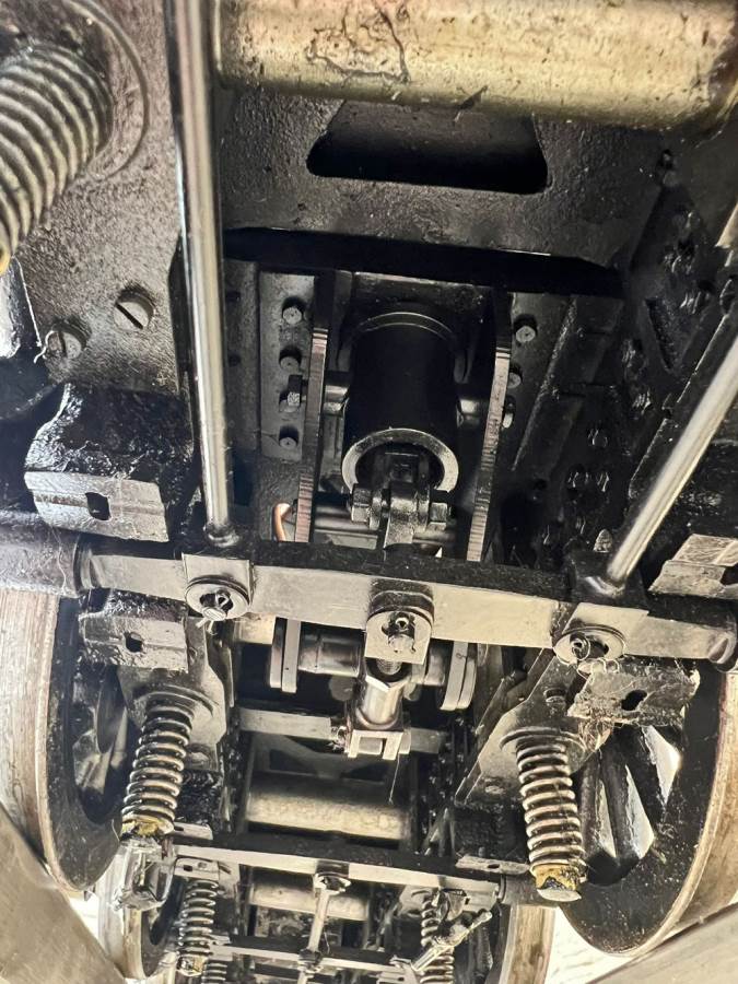 Fitted with an injector, an axle pump and of course a hand pump in the tender. Lubrication is mechanical and nicely don on the running boards in the appropriate prototypical location. Judging by the soot on the front tube plate where the copper is still visible, the loco has only been steamed once or twice, probably just for basic commissioning purposes.